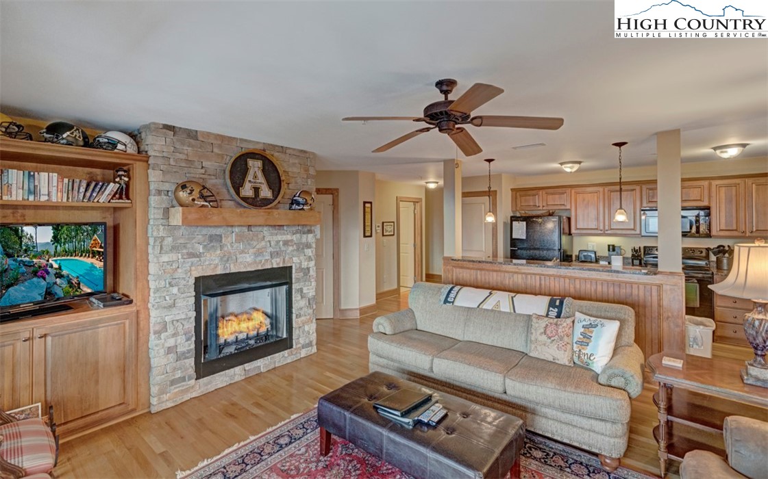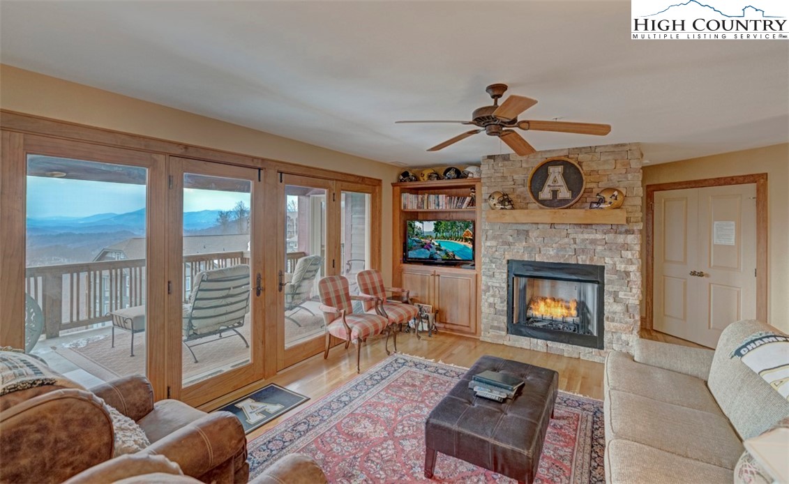 Charming 3BR|3BA Grand Oaks at Echota on the Ridge with long-range layered mountain views. All on one level, this lower-level condo is accessible via stairs or elevator and is being offered fully furnished. Finishes include oak hardwood floors throughout, including all bedrooms, along with a stacked stone gas fireplace with adjacent built-in cabinetry and stained trim to enhance the mountain feel. The open kitchen has wormy chestnut cabinetry, granite countertops and plenty of storage. The living and dining area is inviting with a wall of windows to bring the outside in. Step out onto the spacious covered deck to take in the mountain views from every angle. The tastefully furnished primary suite also has deck access and an en suite primary bath with ceramic tile flooring, double vanity with wormy chestnut cabinetry along with an oversize soaking tub and full tile shower. The guest bedrooms are well-appointed and each have their own bathroom, making it great for family and friends. This condo is ready for anyone looking to enjoy easy, mountain living! Located in the sought-after gated community of Echota, owners enjoy an incredible maintenance-free lifestyle with unparalleled amenities. The community features two clubhouses, 2 outdoor pools, 1 indoor pool, 3 fitness facilities, a 25-acre riverpark, stocked fishing ponds, plus the exciting new owners-only Summit at Echota amenity center with its spectacular outdoor pool, deck, fitness facility, and skybridge.