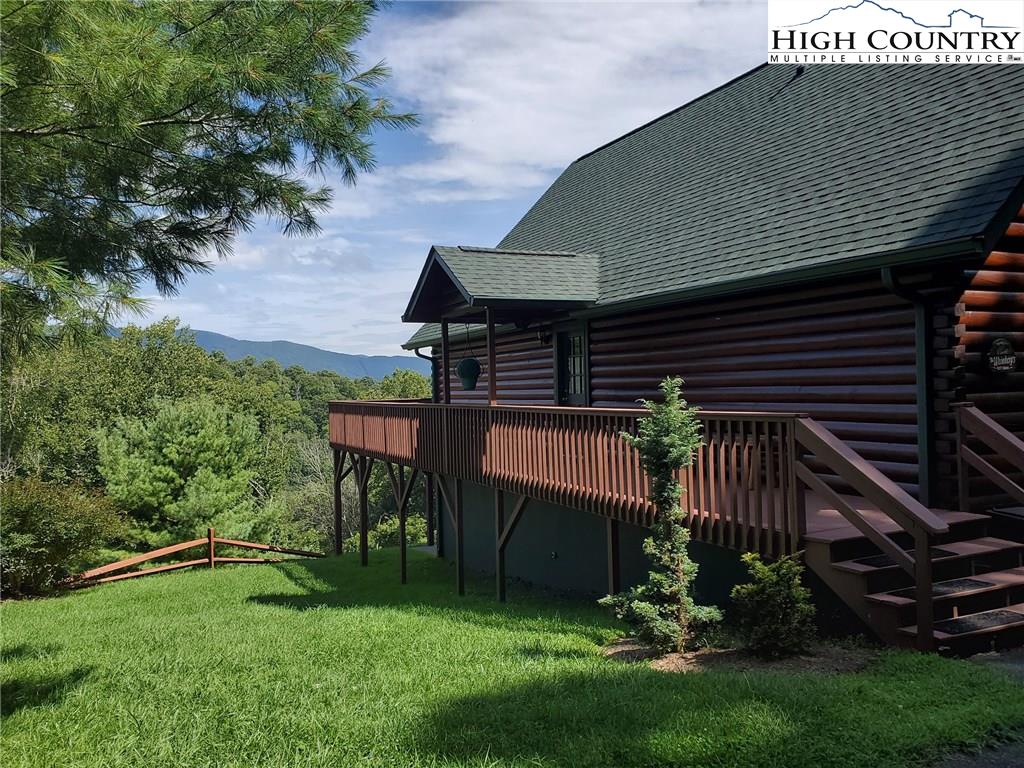 INCREDIBLE view of Rich Mountain from the like new log cabin. NEW interior paint and exterior stain in 2020. Purified drinking water(under kitchen sink) and new doors downstairs in 2019. NEW roof in 2018. New well pump in 2016. All new appliances in 2015. New shed and back stairs in 2014. New heat pump with dehumidifier and new high impact UV windows and new doors upstairs in 2013. WELL MAINTAINED. There is a tool shed under the deck. This log cabin is nestled in the Summit at Lost Ridge on 1.06 acres. Outdoor fire pit. Open kitchen, dining and great room on main floor with stacked stone fireplace. Sun blocking shades on windows. Upstairs loft used for living area as well and has a full bath. Grounds are manicured and gently sloping which is a rare find with such a view. About 20 minutes from downtown Boone yet secluded in a community with 18 other homes. Owners can enjoy hiking and a pond in common areas.