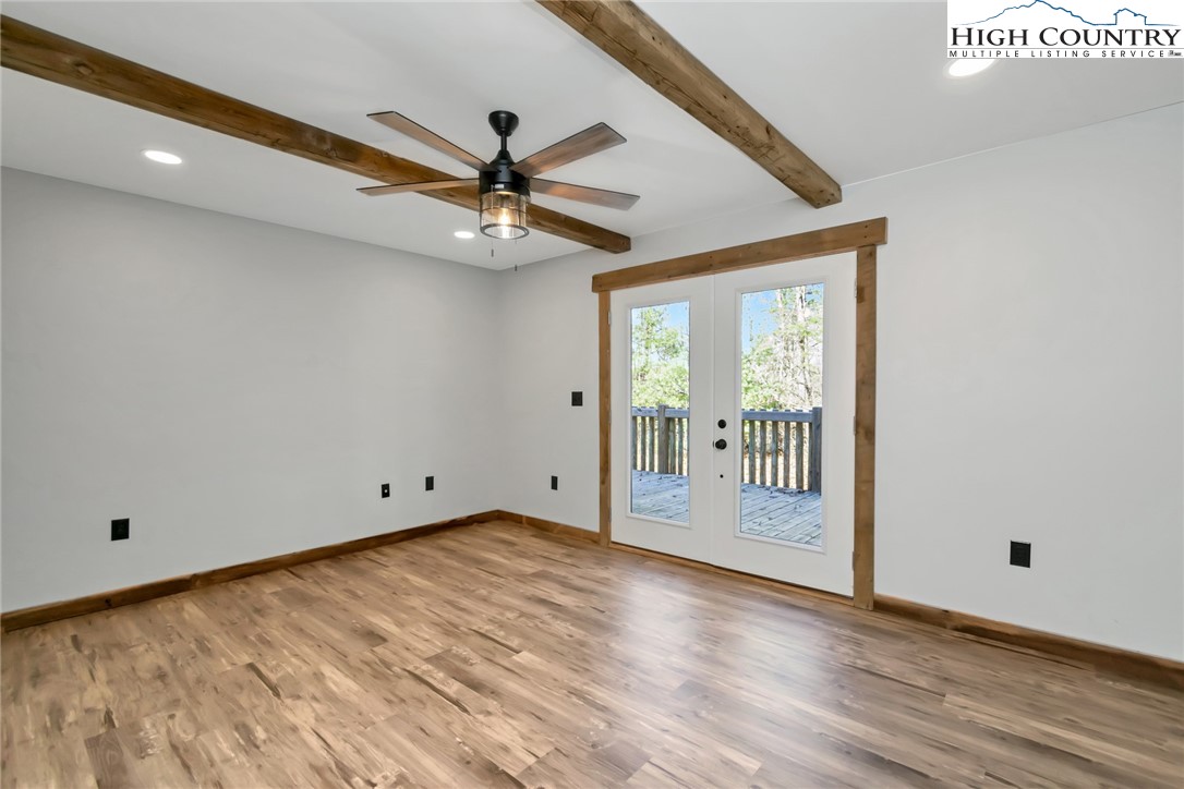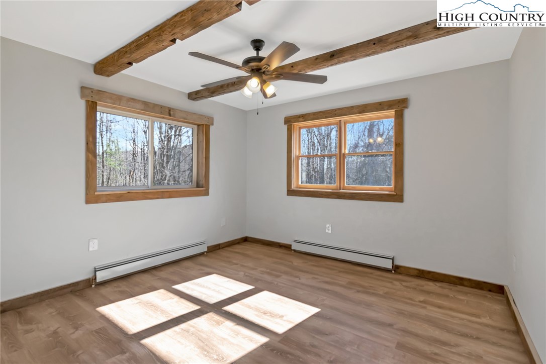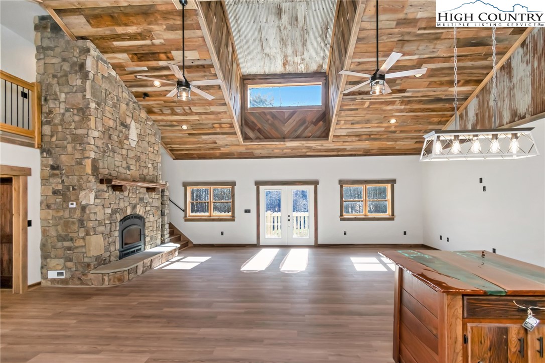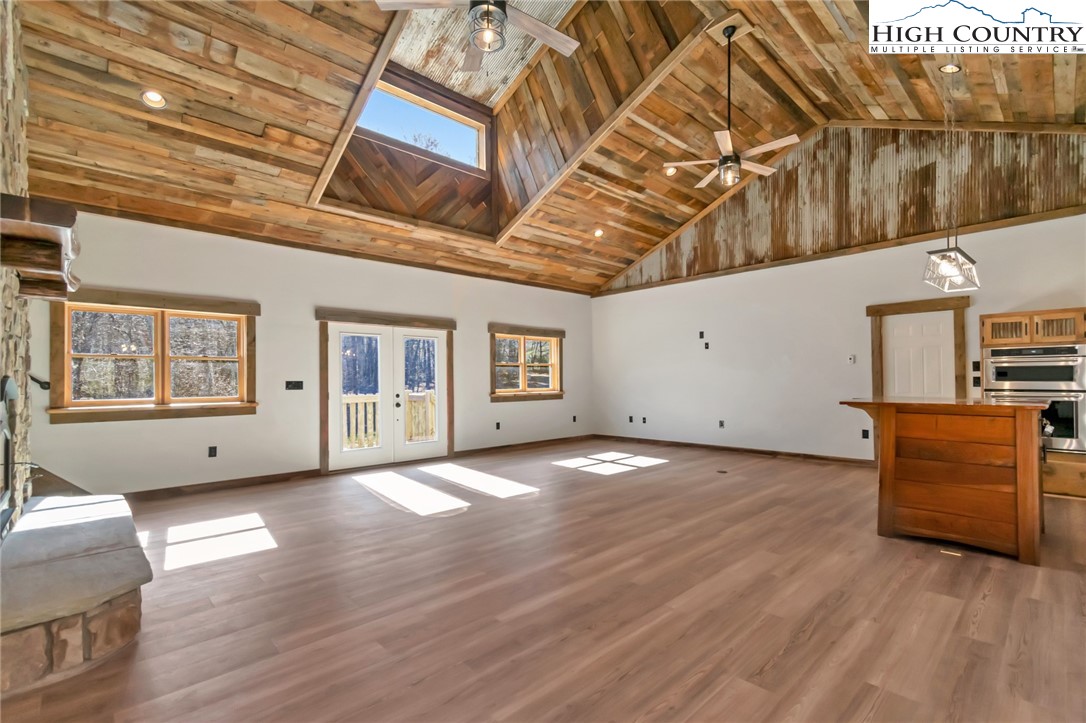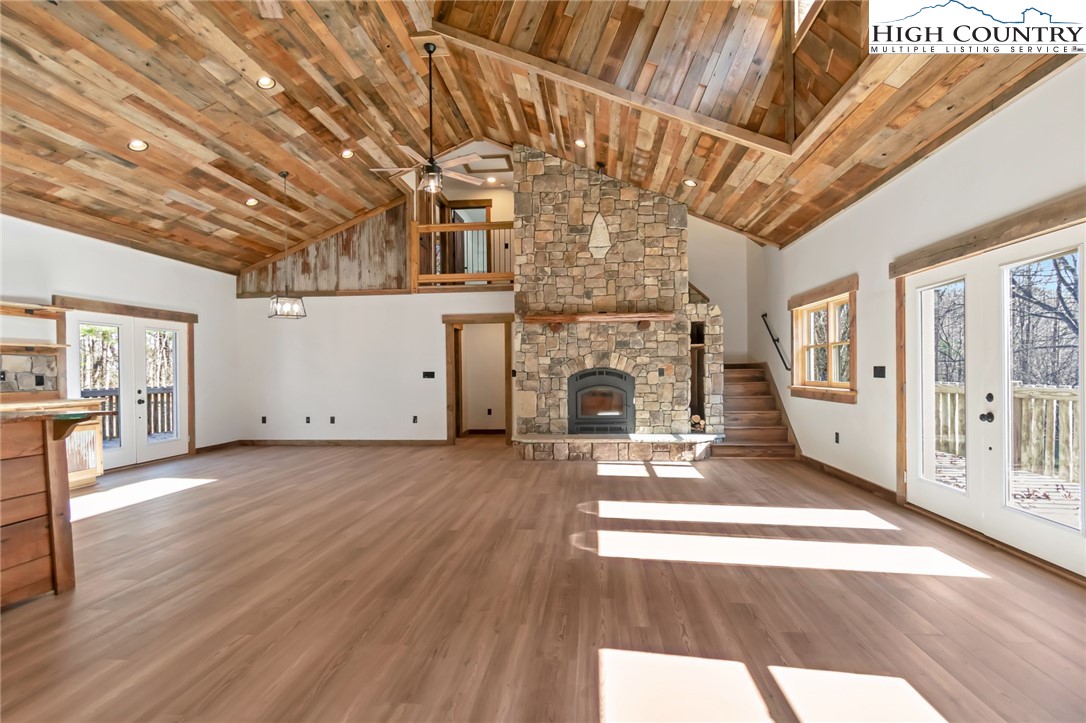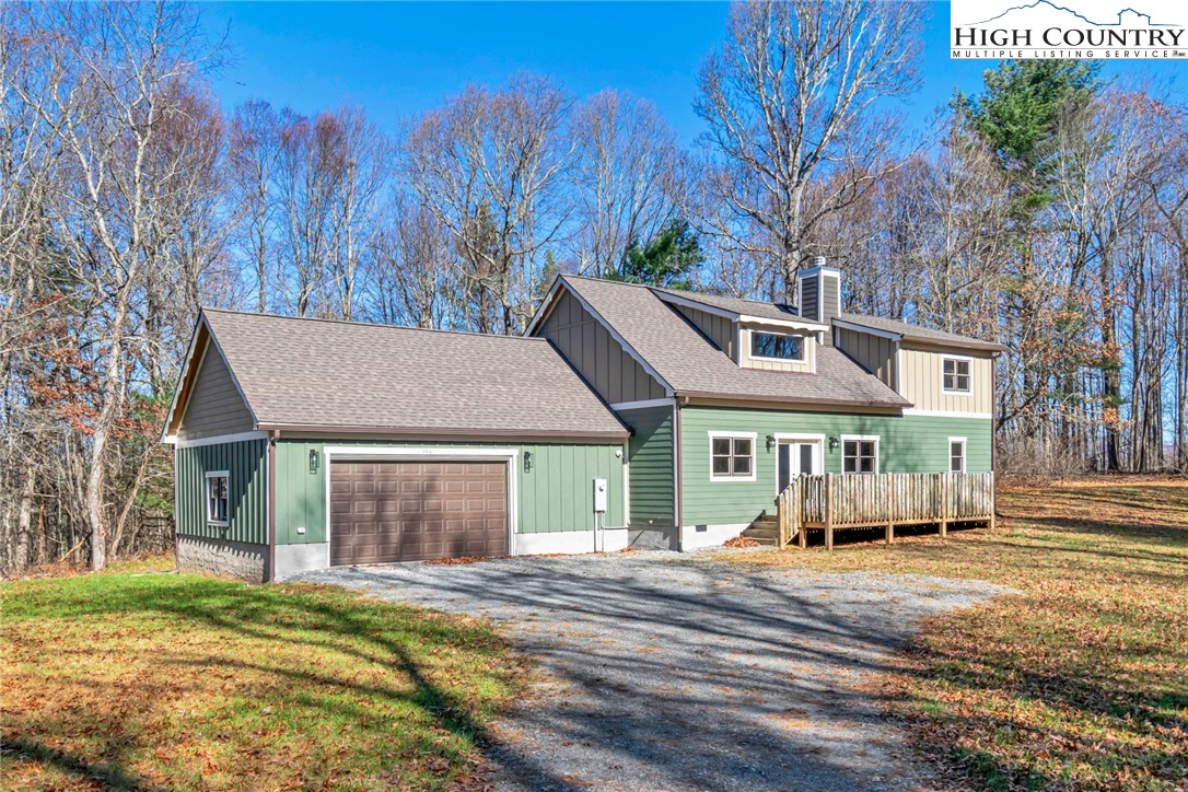 Custom Mountain Home near Blue Ridge Parkway. Come experience mountain living in this custom designed and quality constructed home. Located in Ashe County, NC, one of the High Country’s most desirable areas. Enjoy hiking, biking, floating the New River, or cruising the Blue Ridge Parkway, all while being just minutes from the charm of West Jefferson. Designed for nearly all main level living, this home boasts an open floor plan perfect for entertaining. Step inside to soaring ceilings with reclaimed wood and metal accents, anchored by a stunning floor-to-ceiling stone fireplace. The spacious kitchen, complete with ample workspace and a farmhouse sink, is a dream for any home chef. The main level primary suite features a custom reclaimed wood accent wall, oversized bathroom with dual vanities, walk-in closet, and a massive tile shower. Upstairs you will find two additional bedrooms and second bathroom with a tub. Storage is abundant with a two-car garage, perfect for parking, shelving, or a workshop. Above the garage could be used for storage or converted into a bonus room with exterior entry. As you enter the home from the garage, you will find the mud room with space for a “drop zone” and a large washer and dryer. There’s also a large area ideal for a pantry or additional storage. Around the outside of the home, you will find a FLAT yard with unlimited possibilities. Plant gardens, build a shed, or create your dream outdoor living space. If you’re seeking an energy efficient home in the mountains, it’s hard to beat this one. Radiant floor heating provides a consistent and comfortable living space. The exterior walls are 8” thick with blown insulation which provides additional energy efficiency. Great location for a weekend getaway! Travel time from Winston-Salem is 1 hour, 30 minutes. Arrive from Charlotte in just under 2 hours and from Raleigh in just under 3 hours. Check out the virtual tour, request a full property features list, and schedule your private tour today!