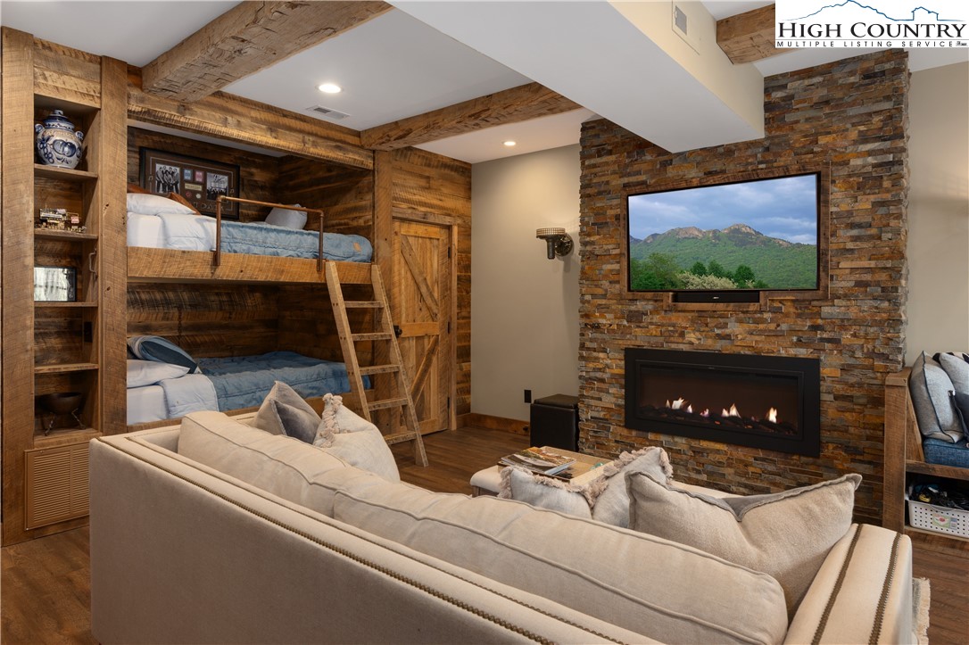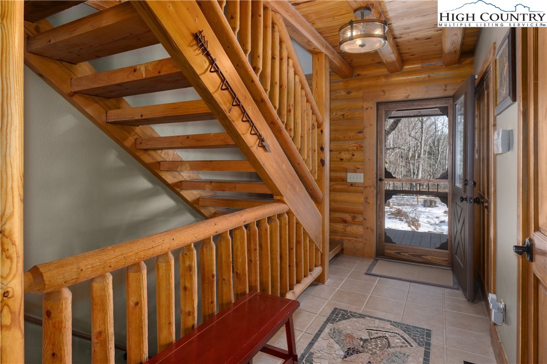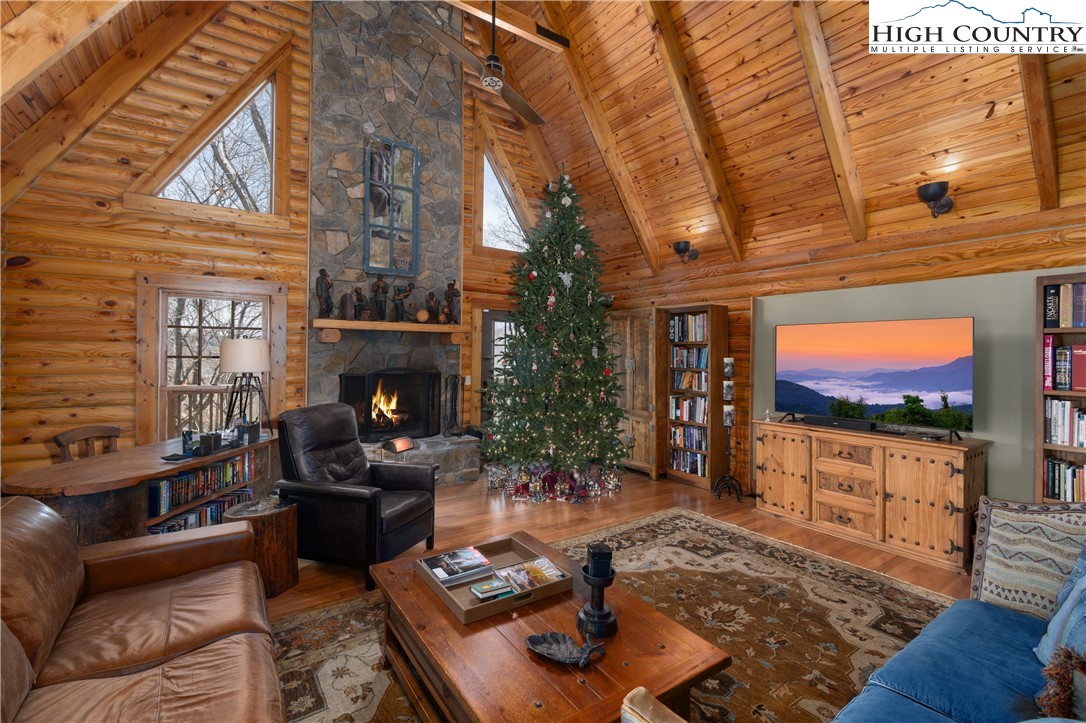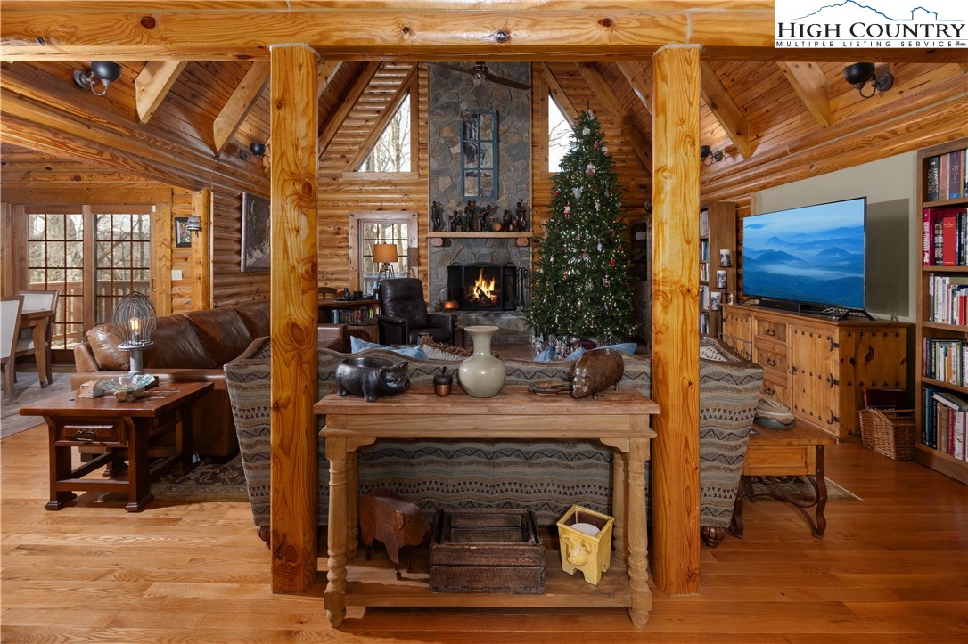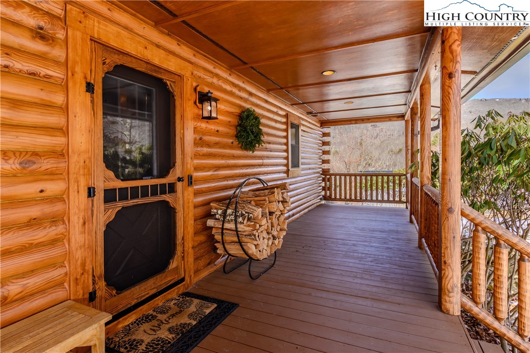 Located just minutes from Downtown Banner Elk, this exceptional custom log home offers a rare combination of privacy, panoramic views, and in town convenience. This is a Southland Log Home, which is known for high quality craftsmanship, precision milled large logs, and long term structural integrity. This home blends classic mountain character with modern comfort. The property sits on a 1.56 acre lot on Klonteska Dr. with direct access to Main Street in Banner Elk, right near the stoplight and within close proximity to local restaurants, shops, Lees-McRae College, and everything this vibrant mountain town has to offer. The welcoming entrance leads into an open floor plan with vaulted ceilings that immediately draws you toward the impressive stone fireplace. A seamless blend of log and drywall construction creates a home that feels rustic yet refined, warm yet spacious. Beautiful large logs and thoughtful finishes throughout highlight the home’s timeless mountain elegance. The main level features newly installed white oak flooring, a fully remodeled kitchen with granite countertops, high end appliances, ambient cabinet lighting, and a convenient main level laundry area. The primary suite is also located on the main level and includes a large closet and stunning bath with dual vanities, heated tile floor and a custom shower. Two additional oversized bedrooms and a full bath are located on the second level, while the newly remodeled lower level offers a built-in bunk room and dedicated office space, ideal for guests or remote work. and another beautiful full bath with radiant heated floors. Additional features include an oversized two car garage, city water and sewer, a panel in place for a generator hookup, and a buried 500 gallon propane tank that services the propane fireplace and a propane fueled HVAC system with integrated humidifier and dehumidifier. Recent updates include a new roof in 2023 and a new furnace in 2024. Perched above Banner Elk, the home boasts expansive long range views in nearly every direction, including Sugar Mountain, Beech Mountain, Roan Mountain, Grandfather Mountain, and surrounding valleys and ridge lines. This is an incredible opportunity to own a true mountain cabin within town limits. Ideal as a primary residence, vacation home, or rental investment, this property delivers the feeling of a private mountain retreat with all the convenience of in town living. Homes like this rarely come available and this one will not last long.
