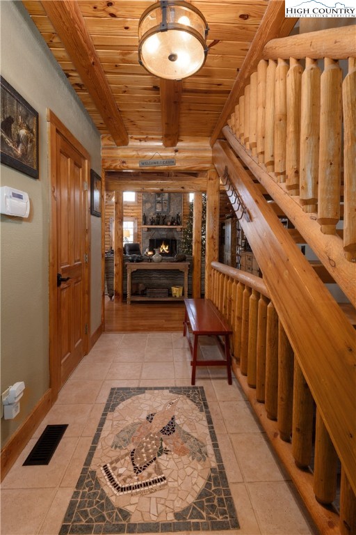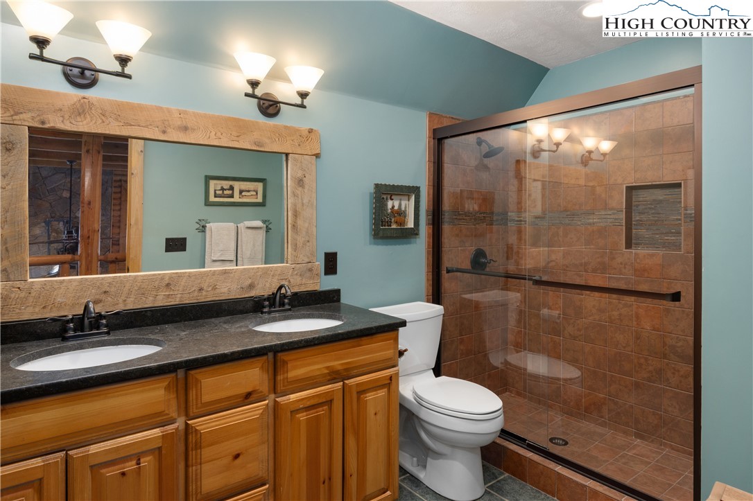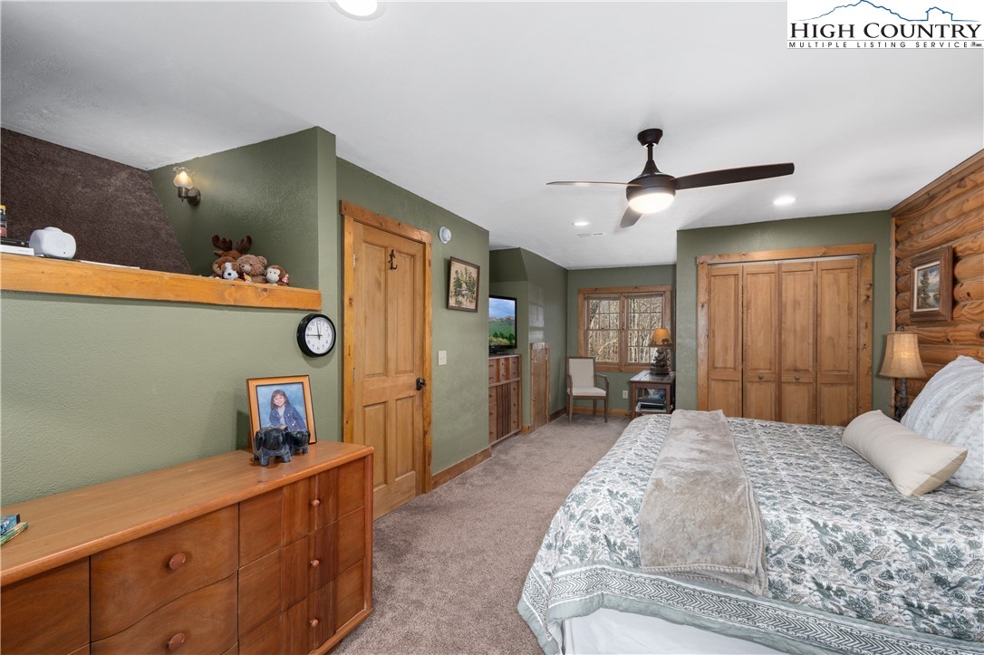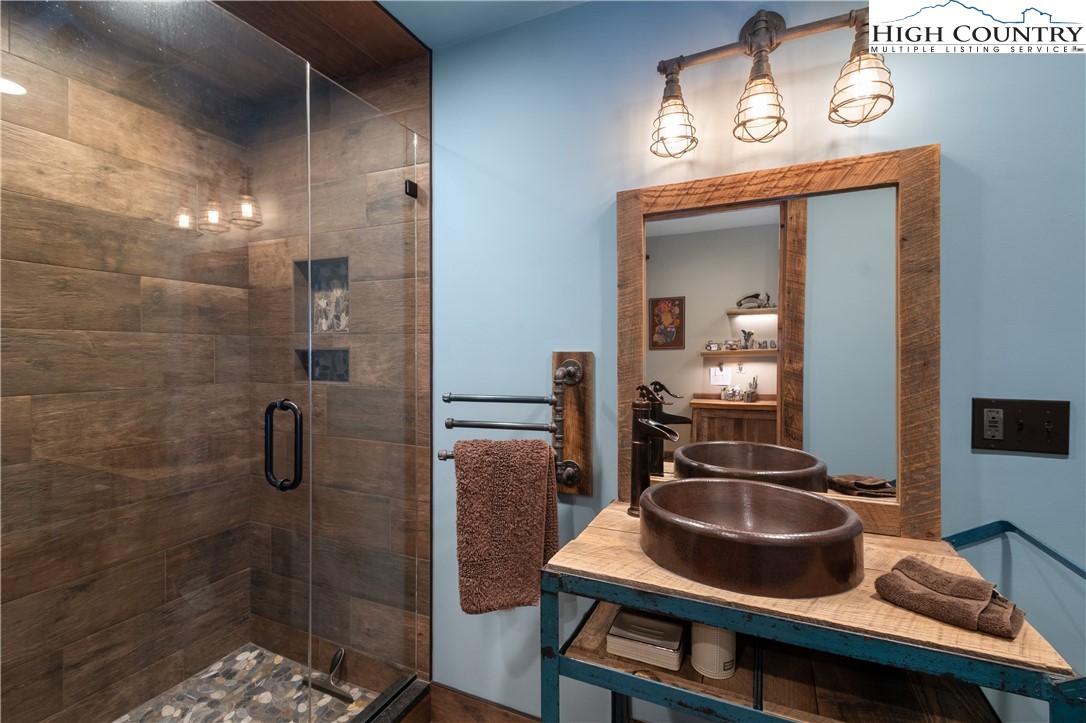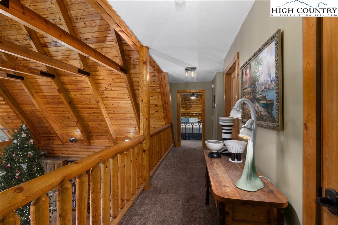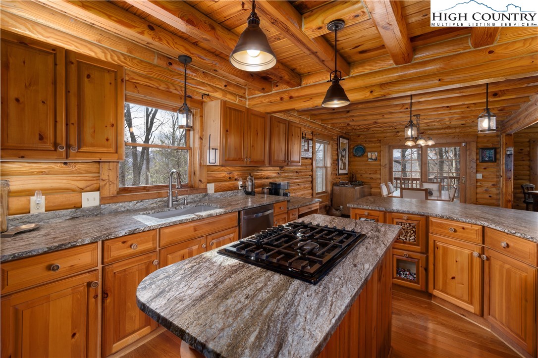 Located just minutes from Downtown Banner Elk, this exceptional custom log home offers a rare combination of privacy, panoramic views, and in town convenience. This is a Southland Log Home, which is known for high quality craftsmanship, precision milled large logs, and long term structural integrity. This home blends classic mountain character with modern comfort. The property sits on a 1.56 acre lot on Klonteska Dr. with direct access to Main Street in Banner Elk, right near the stoplight and within close proximity to local restaurants, shops, Lees-McRae College, and everything this vibrant mountain town has to offer. The welcoming entrance leads into an open floor plan with vaulted ceilings that immediately draws you toward the impressive stone fireplace. A seamless blend of log and drywall construction creates a home that feels rustic yet refined, warm yet spacious. Beautiful large logs and thoughtful finishes throughout highlight the home’s timeless mountain elegance. The main level features newly installed white oak flooring, a fully remodeled kitchen with granite countertops, high end appliances, ambient cabinet lighting, and a convenient main level laundry area. The primary suite is also located on the main level and includes a large closet and stunning bath with dual vanities, heated tile floor and a custom shower. Two additional oversized bedrooms and a full bath are located on the second level, while the newly remodeled lower level offers a built-in bunk room and dedicated office space, ideal for guests or remote work. and another beautiful full bath with radiant heated floors. Additional features include an oversized two car garage, city water and sewer, a panel in place for a generator hookup, and a buried 500 gallon propane tank that services the propane fireplace and a propane fueled HVAC system with integrated humidifier and dehumidifier. Recent updates include a new roof in 2023 and a new furnace in 2024. Perched above Banner Elk, the home boasts expansive long range views in nearly every direction, including Sugar Mountain, Beech Mountain, Roan Mountain, Grandfather Mountain, and surrounding valleys and ridge lines. This is an incredible opportunity to own a true mountain cabin within town limits. Ideal as a primary residence, vacation home, or rental investment, this property delivers the feeling of a private mountain retreat with all the convenience of in town living. Homes like this rarely come available and this one will not last long.