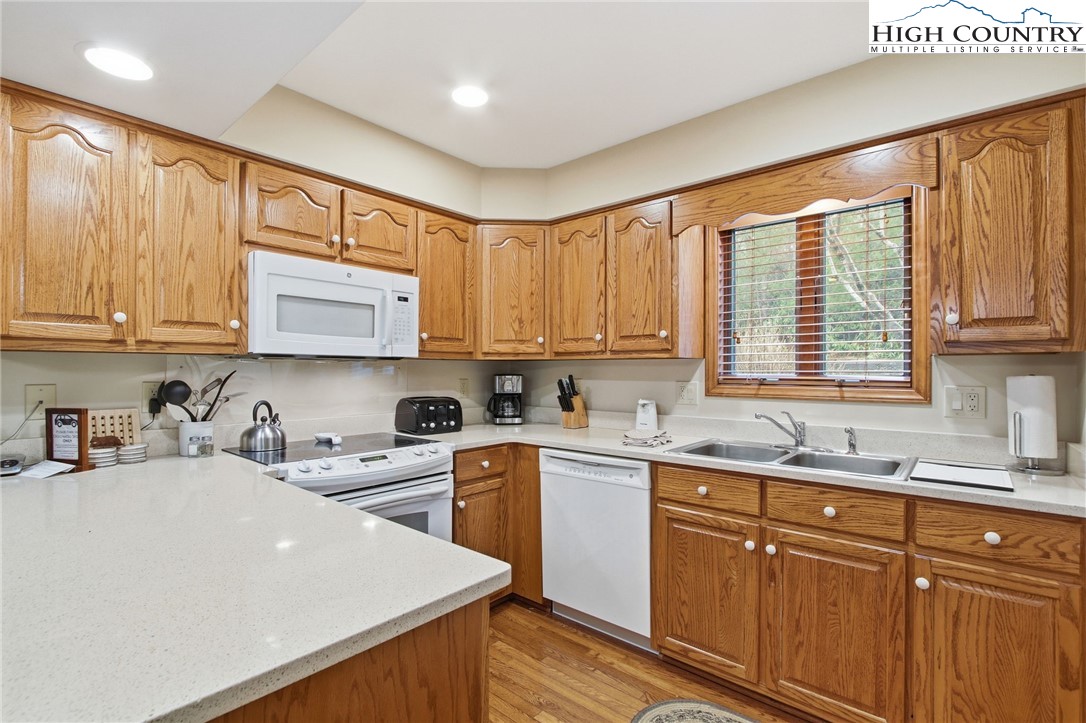 Adirondacks 2 is located at the top of Waterside Drive and is a short distance from the walking trails in Moses Cone National Park. Upon entering the property, you will notice the spacious open concept living area of the living/dining/kitchen area accented by the natural stone FP. A covered porch is accessible from the living room area, and an alcove just off the living area invites you to curl up in a chair with a good book or use it as office space. This is a good flex space in the unit. The kitchen gives any cook plenty of space for preparing gourmet meals. A grill and picnic table are just off the end of the building. A guest bedroom is located on the main level with a tiled hall bath close by, and a laundry closet is located in the hall as well. The large master bedroom has a walk-in closet and an ensuite tiled bath. A club membership is available in this family-friendly resort that will open doors to even more amenities such as fishing, an indoor pool, tennis, and pickleball. Walk to Main Street for shopping and a great selection of restaurants. Long and short-term rentals are permitted, and it is also an owner-pet-friendly resort. This unit is being sold furnished as shown. HVAC replaced in 2024