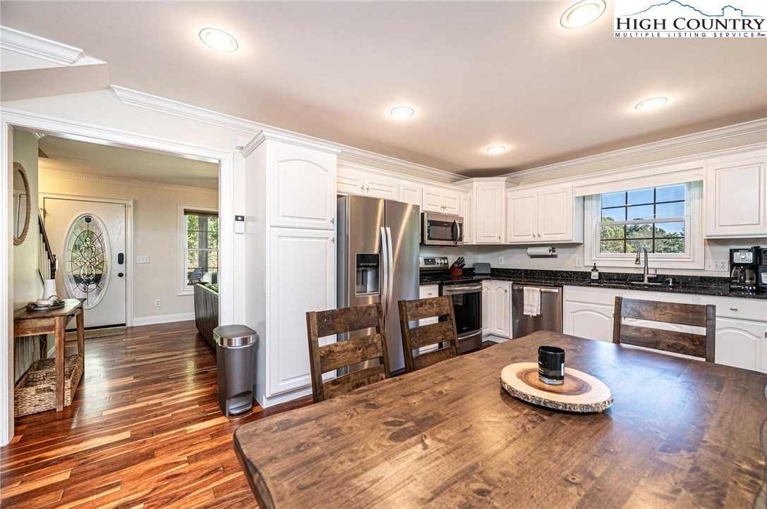 Beautiful 3BR/2.5BA home ideally located near Appalachian State University and downtown Boone. Enjoy a flat, fenced-in yard surrounded by trees and a newly expanded deck for entertaining or relaxing outdoors. Hardwood floors throughout home, kitchen granite countertops, stainless steel appliances. Primary suite conveniently located on the main level along with laundry. Upstairs offers two large bedrooms with vaulted ceilings each with attic storage space. New A/C unit. Great blend of privacy and convenience near campus, shopping, and dining. Showings available to start 10/23/25