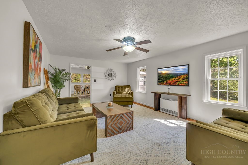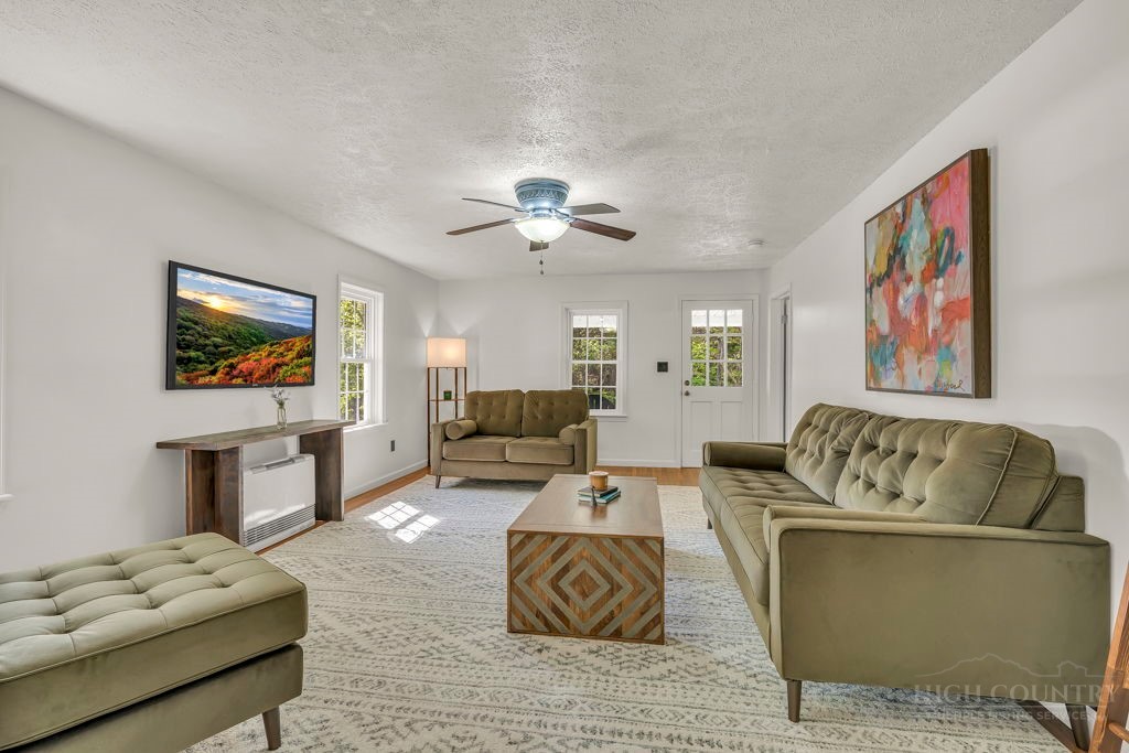 Charming western Watauga County farmhouse nestled on 1.3 sun drenched acres, where life feels refreshingly simple.The front porch is perfect for enjoying your morning coffee while waking up to the peaceful sounds of the creek, while the generous lot offers wonderful potential for gardening and outdoor living. Inside, natural light fills the spacious living room and kitchen, creating an open and welcoming atmosphere. Two bedrooms, a bonus room, and two full baths provide comfortable space for everyone, and the updated main bathroom is a true highlight, featuring stunning tile work and a gorgeous walk in shower. Whether you're a first time buyer or seeking a solid investment property, this is an affordable opportunity in a setting that is hard to beat. Note: 362 square feet of space is not reflected in the listed square footage due to a ceiling height restriction.