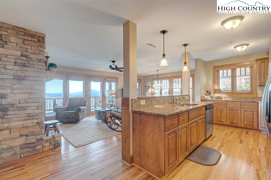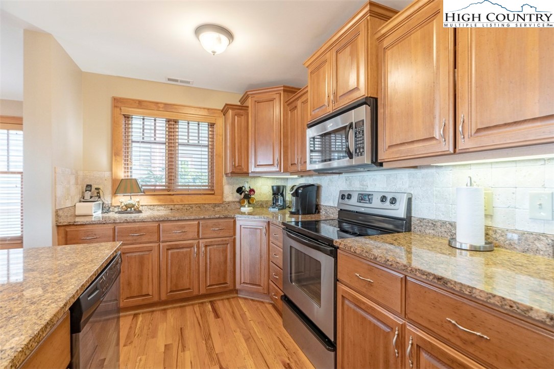 Panoramic long-range layered views from this 3BR|3BA Grand Oaks condo at Echota on the Ridge. Offered fully furnished, this lower level condo is accessible by stairs or elevator and has been lovingly cared for by the original owners since it was built. Luxury finishes include oak hardwood floors throughout, stained trim, stacked stone gas fireplace with hearth and an adjacent built-in entertainment center. The kitchen features wormy chestnut cabinetry, granite countertops, tile backsplash and stainless steel appliances. The open concept living and dining areas are perfect for entertaining, while large windows bring the outside in. Take in the exquisite mountain views from the covered deck with seating area and swing. The views continue into the primary suite with an abundance of natural light and adjoining primary bath with double vanity, spacious closet, ceramic tile flooring, tile shower and soaking tub. The generous guest bedrooms each have their own bathroom, making it ideal for family and friends. Located in the sought-after gated community of Echota, owners enjoy an incredible maintenance-free lifestyle with unparalleled amenities. The community features two clubhouses, 2 outdoor pools, 1 indoor pool, 3 fitness facilities, a 25-acre riverpark, stocked fishing ponds, plus the exciting new owners-only Summit at Echota amenity center with its spectacular outdoor pool, deck, fitness facility, and skybridge.
