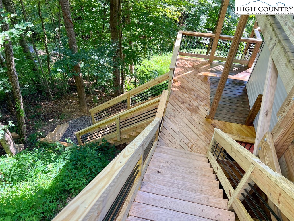 Evenlight is an exquisite new construction (2021) property, aesthetically pleasing to the senses with 14 ft floor to ceiling fireplace/ living room area, copious amounts of glass and open floor plan concept. Situated on the south facing slope of a mountain range overlooking Boone valley, Evenlight offers easy access and long range views capturing evening sunsets while being within a 5 minute drive to Watauga Medical Center and Samaritans Purse. With the main level at 815 sq. ft. the home is highly efficient to cool and heat and easy to clean and maintain. The nature of the design makes the home feel much larger. The downstairs, recently completed in 2025 offers a kitchen with quartz countertops and custom tile backsplash. The bathroom has custom tile, tub/shower tile surround, vanity and a powder table. The living area and bedroom area merge together to create a gameroom/activity space to be utilized as you see fit and the space has been intentionally designed to install a custom 4 fold partition wall to separate living and bedroom area, making this the ultimate flex space. The signature feature to the downstairs is the 8’7” coffered ceiling that crowns the space. Evenlight has private upper and lower decks with exterior stairs to access the lower deck. The lower deck has been wired for a hot tub (additional framing to support the weight can be easily added.) Additionally the half acre lot has a road in place with ROW that provides access to the back area of the lot. Evenlight has operated as a vacation rental since June 2021, accumulating a 4.98 rating and cash flowing (net) $3,024/month in that time. With the completion of the downstairs allowing the marketing of the property to go from a 2/1 to a 3/2 and the ability to add a hot tub to the offering, it is reasonable to project that this cash flow can go higher. Zoned HVAC, City Water, Automated exterior lights/security cameras/keyless entry. Sold Furnished to include fully stocked main level kitchen and linens to convey with purchase. (Approximate $15,000 value) Link to AirBnB Posting https://www.airbnb.com/rooms/49839333?check_in=2025-09-03&check_out=2025-09-05&guests=1&adults=1&s=67&unique_share_id=1daf42cd-53c1-4ca5-8426-53c0e1b1d480 Broker interest.