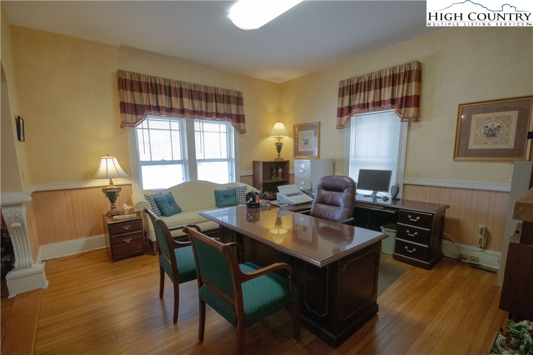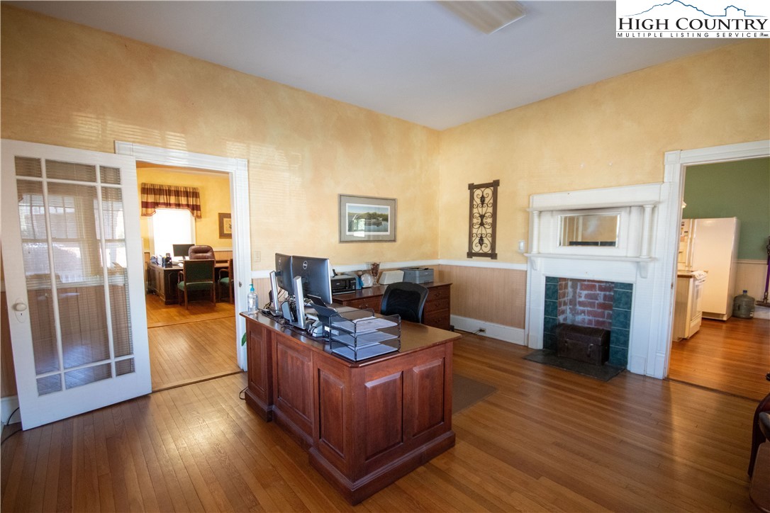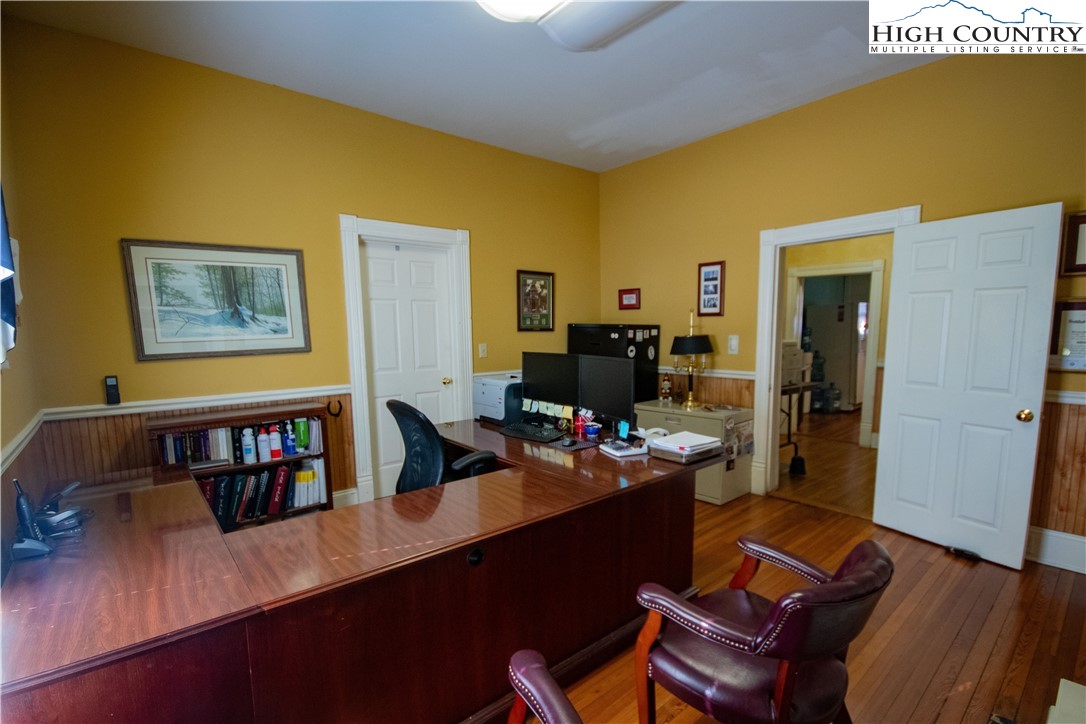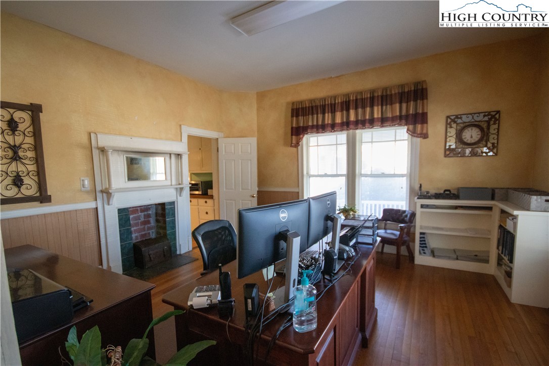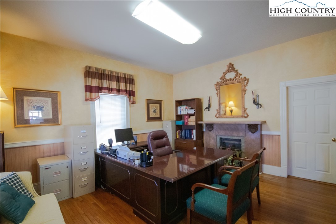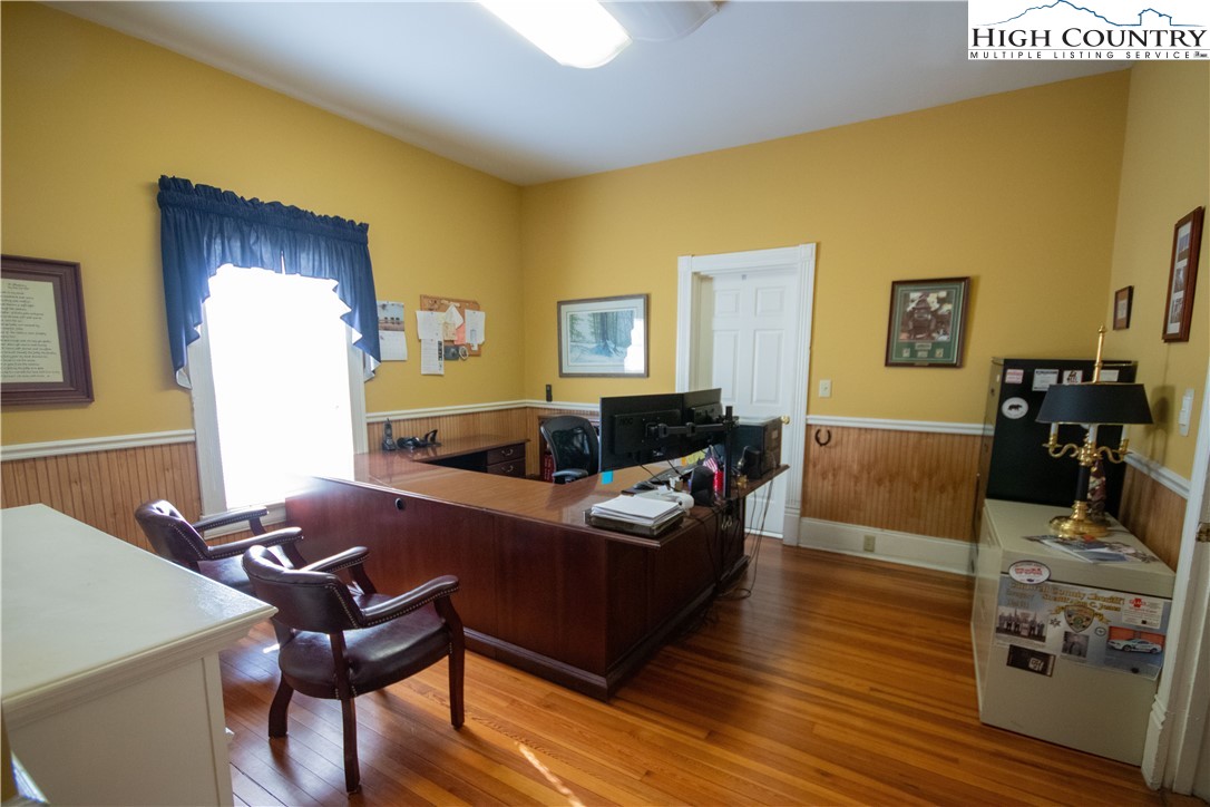 EXTRAORDINARY VALUE AT NEW PRICE! - This beautifully maintained office building is Zoned O-I and includes six large offices, all with gorgeous hardwood flooring! Main level includes three offices - one of which contains a natural gas fireplace, a full kitchen with refrigerator, dishwasher, drop-in range and lots of cabinet space & storage, a half bath w/hidden room that includes laundry, natural gas water heater and add'l storage space. At the back of the main level, is a heated storage room that has three access points - two within the office and one using the steps from the back parking lot. Upstairs are three additional offices with multiple bookcases as well as a full bath with shower, vintage vanity sink and more storage. In addition to street parking along the front of the building, a shared drive takes you to a back parking area with two add'l entrances into the building. The unheated basement is accessible from inside and there is also a 374 SF outbuilding on the property w/electricity for additional storage/use.