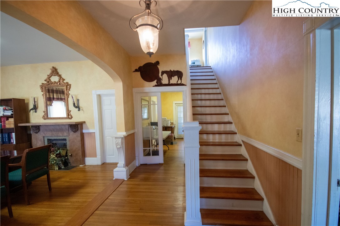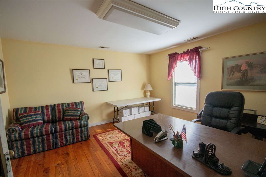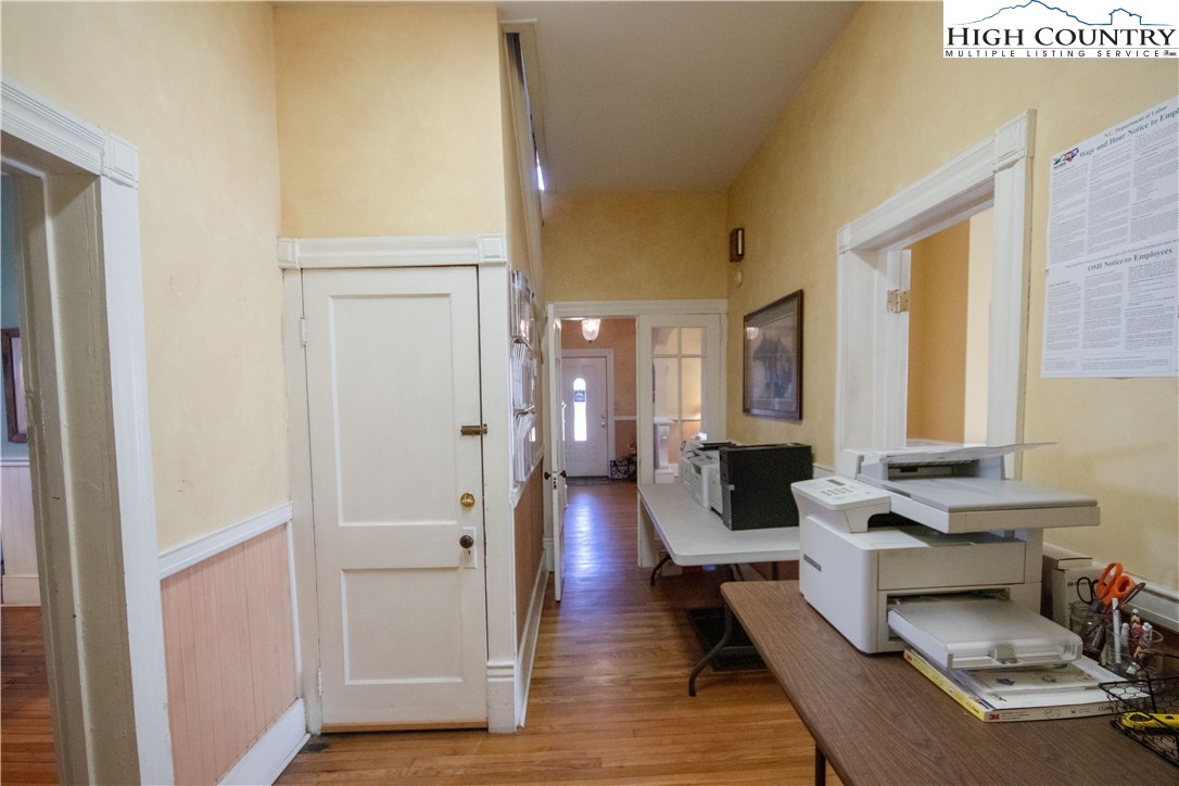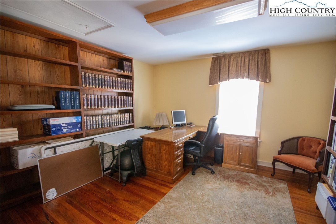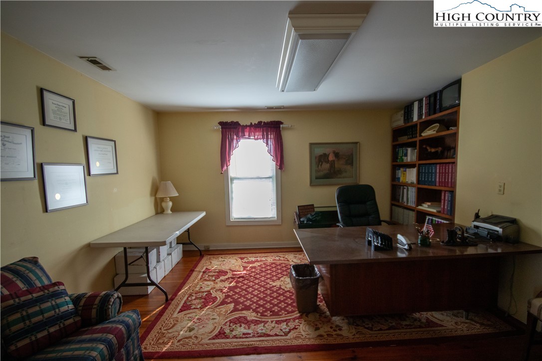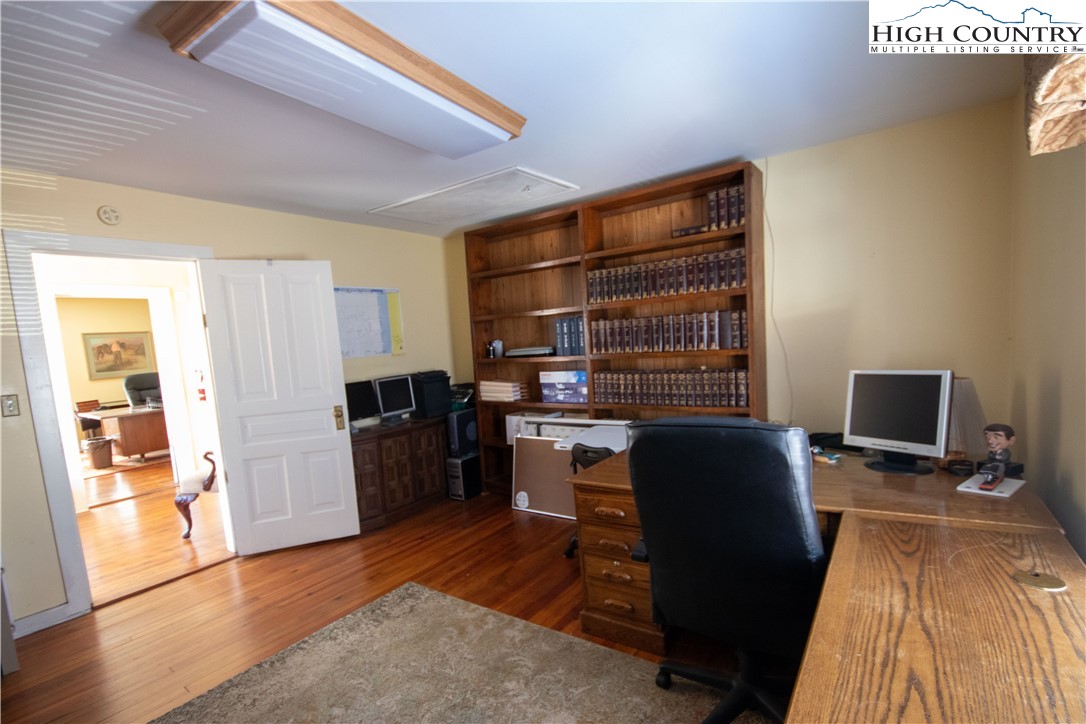 EXTRAORDINARY VALUE AT NEW PRICE! - This beautifully maintained office building is Zoned O-I and includes six large offices, all with gorgeous hardwood flooring! Main level includes three offices - one of which contains a natural gas fireplace, a full kitchen with refrigerator, dishwasher, drop-in range and lots of cabinet space & storage, a half bath w/hidden room that includes laundry, natural gas water heater and add'l storage space. At the back of the main level, is a heated storage room that has three access points - two within the office and one using the steps from the back parking lot. Upstairs are three additional offices with multiple bookcases as well as a full bath with shower, vintage vanity sink and more storage. In addition to street parking along the front of the building, a shared drive takes you to a back parking area with two add'l entrances into the building. The unheated basement is accessible from inside and there is also a 374 SF outbuilding on the property w/electricity for additional storage/use.