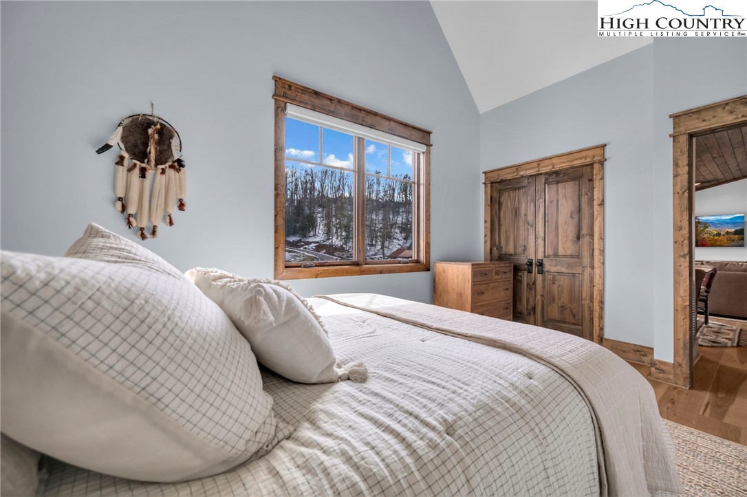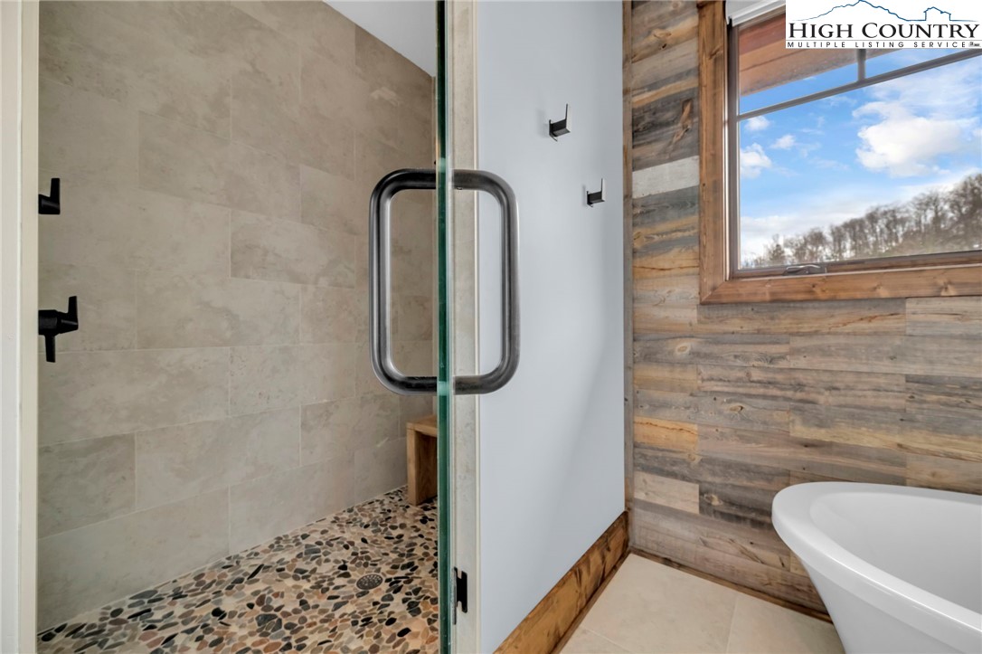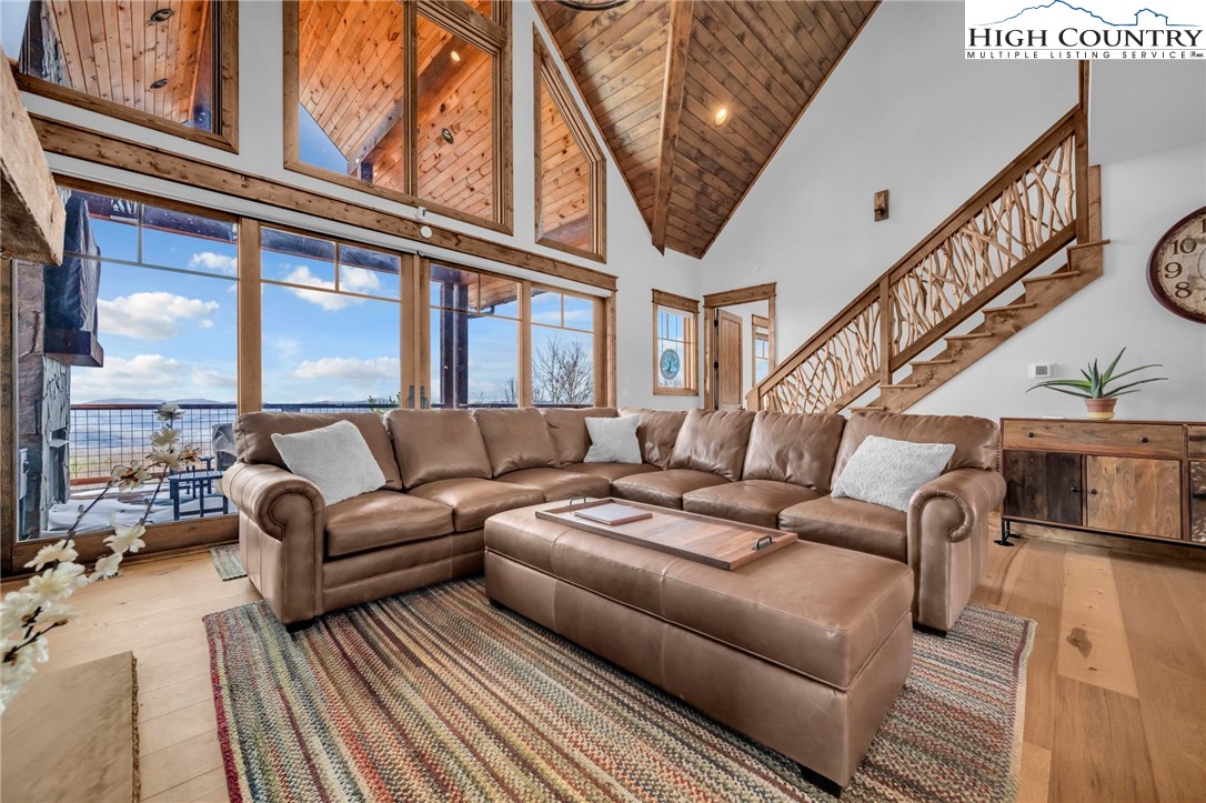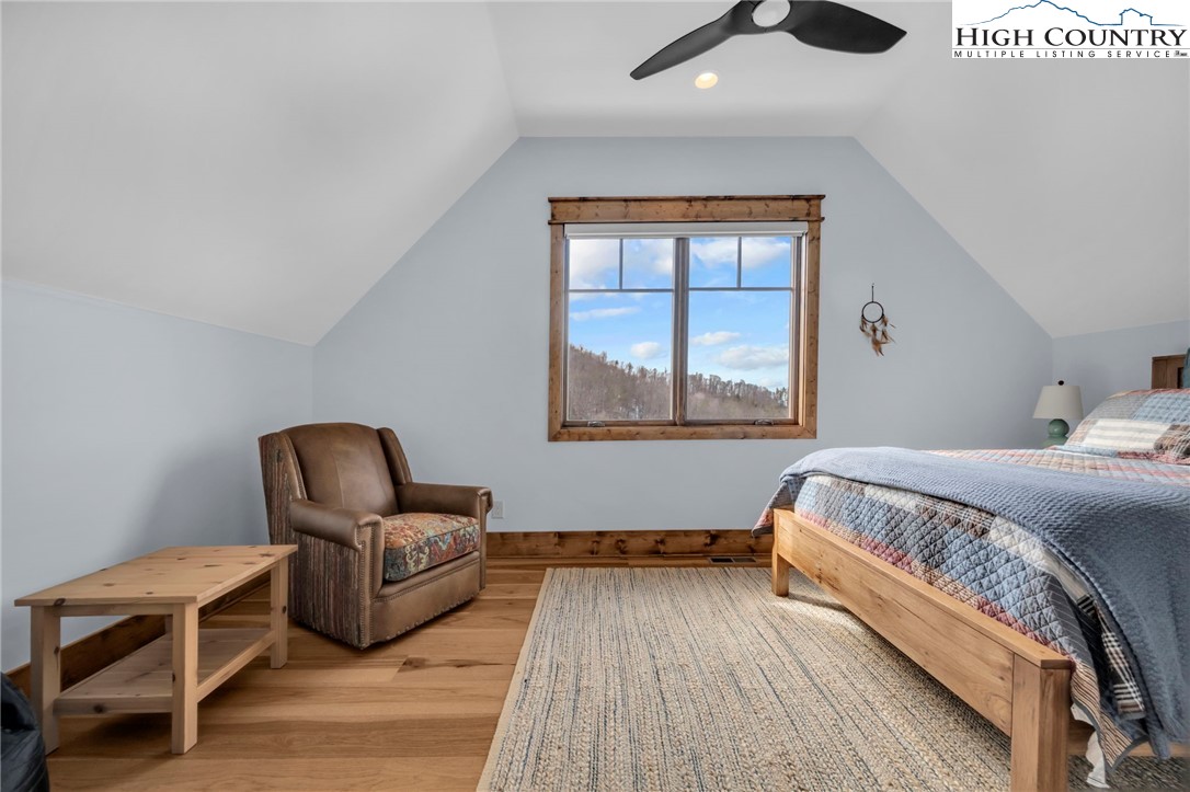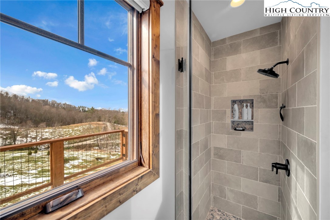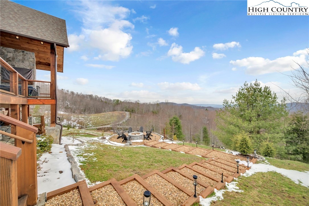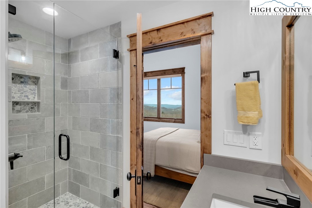 Nestled at the end of a quiet cul-de-sac in The Lodges at Eagles Nest, this beautifully crafted 4-bedroom, 4-bath mountain retreat offers privacy, long-range views, and exceptional quality on nearly 3 acres. Designed for both comfort and entertaining, the home features vaulted ceilings, wide plank hickory flooring, and a dramatic stone fireplace extending to the ceiling in the great room, creating a warm and inviting mountain atmosphere. The spacious kitchen is appointed with quartz countertops, upgraded appliances, farm sink, beverage bar with refrigerator and ice maker, and designer backsplash, making it perfectly tailored for hosting gatherings. A convenient mudroom entrance between the home and detached garage adds functionality for mountain living. Step outside to experience the true highlight of the property—expansive covered decks with a stone gas log fireplace overlooking sweeping long-range mountain views. Just below, a beautifully constructed stone fire pit patio creates the perfect setting for evening conversations under the stars. The detached garage is fully insulated and climate controlled with its own mini-split heating and cooling system, ain industrial sink with hot and cold water, and separate electric service, offering exceptional flexibility for storage, workshop space, or future conversion to additional living space. The home also features a 40kW liquid cooled whole-house Generac generator, radon mitigation system, upgraded insulation, and extensive structural enhancements for durability and efficiency. Additional highlights include level entry access, upgraded lighting, structured wiring, remote controlled retractable roller shades, and premium finishes throughout. Located within the highly sought-after Lodges at Eagles Nest community, residents enjoy access to world-class amenities including hiking and ATV trails, winery, fitness center, sports courts, and outdoor recreation areas. A rare opportunity to own a serene, luxury mountain retreat with incredible views and exceptional upgrades in one of Banner Elk’s premier communities.