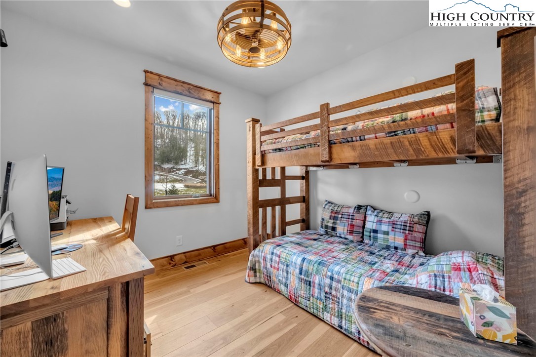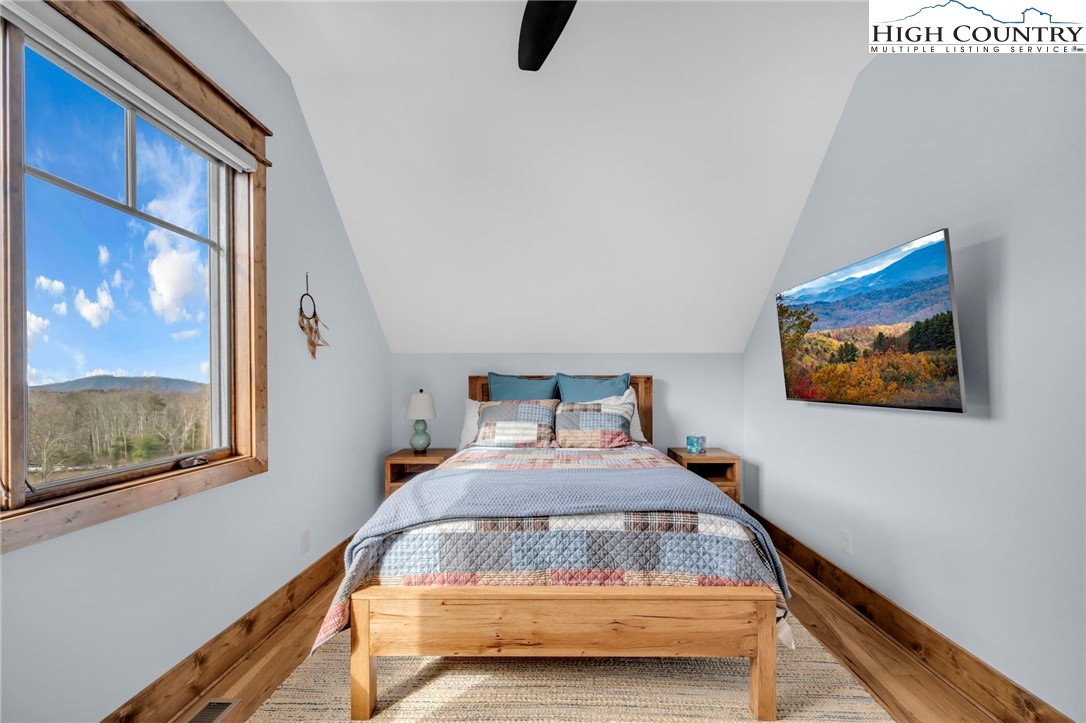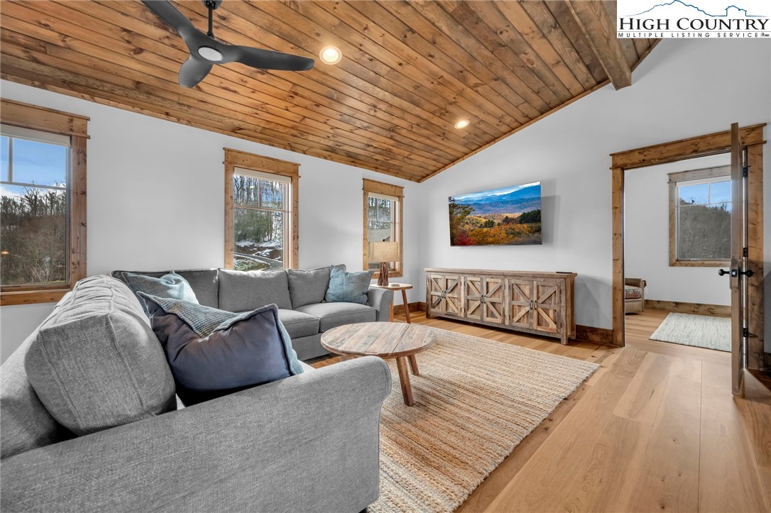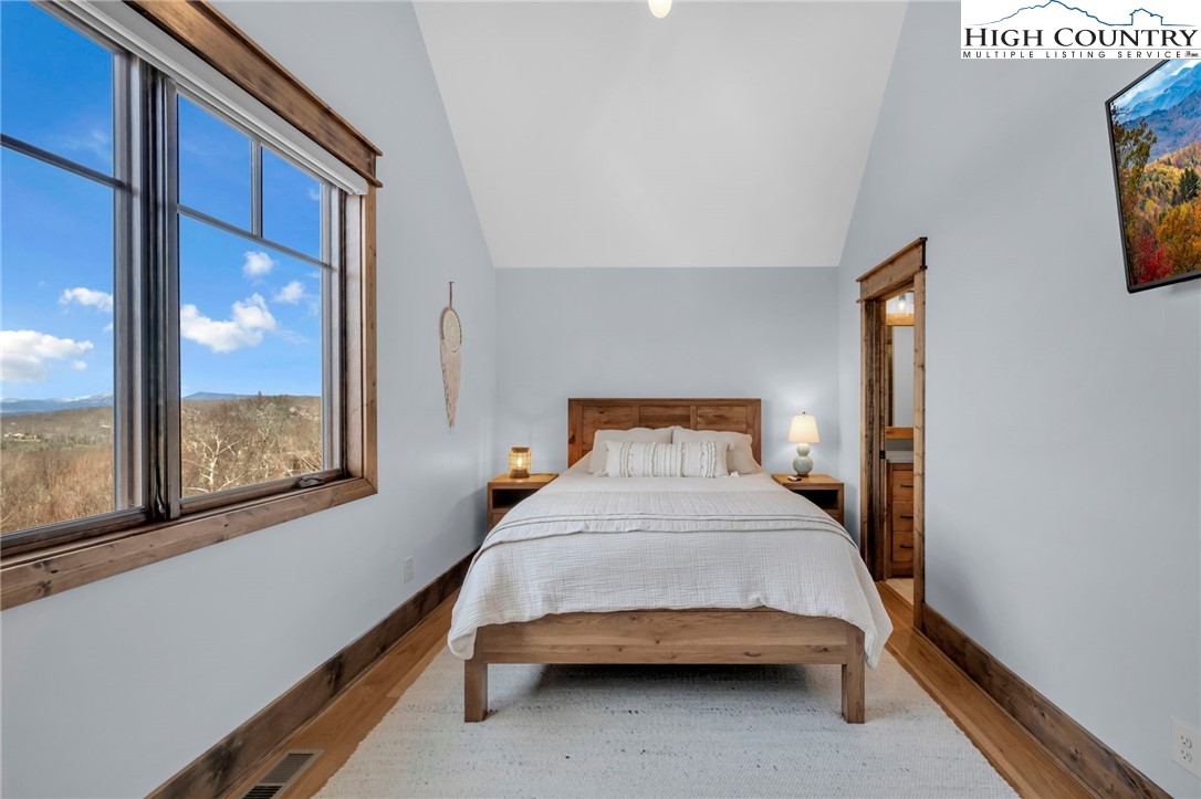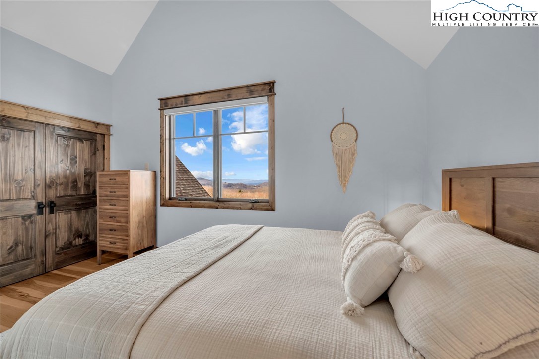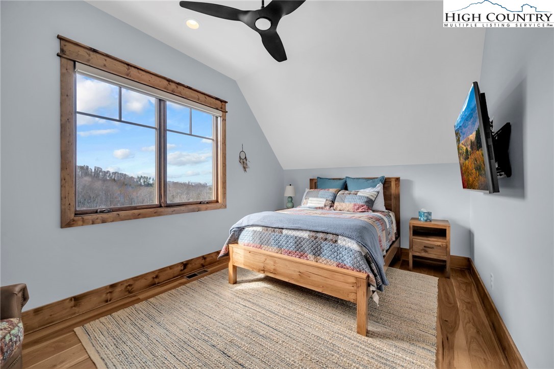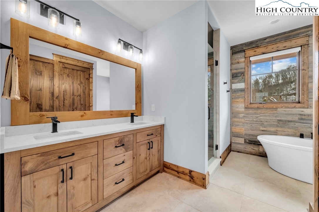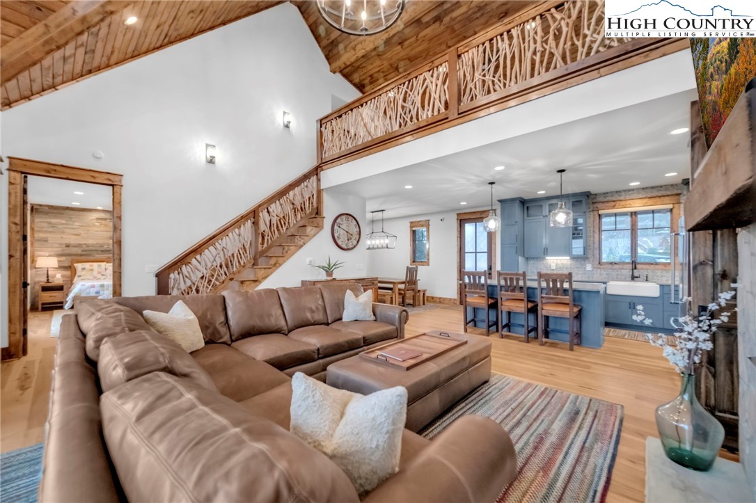 Nestled at the end of a quiet cul-de-sac in The Lodges at Eagles Nest, this beautifully crafted 4-bedroom, 4-bath mountain retreat offers privacy, long-range views, and exceptional quality on nearly 3 acres. Designed for both comfort and entertaining, the home features vaulted ceilings, wide plank hickory flooring, and a dramatic stone fireplace extending to the ceiling in the great room, creating a warm and inviting mountain atmosphere. The spacious kitchen is appointed with quartz countertops, upgraded appliances, farm sink, beverage bar with refrigerator and ice maker, and designer backsplash, making it perfectly tailored for hosting gatherings. A convenient mudroom entrance between the home and detached garage adds functionality for mountain living. Step outside to experience the true highlight of the property—expansive covered decks with a stone gas log fireplace overlooking sweeping long-range mountain views. Just below, a beautifully constructed stone fire pit patio creates the perfect setting for evening conversations under the stars. The detached garage is fully insulated and climate controlled with its own mini-split heating and cooling system, ain industrial sink with hot and cold water, and separate electric service, offering exceptional flexibility for storage, workshop space, or future conversion to additional living space. The home also features a 40kW liquid cooled whole-house Generac generator, radon mitigation system, upgraded insulation, and extensive structural enhancements for durability and efficiency. Additional highlights include level entry access, upgraded lighting, structured wiring, remote controlled retractable roller shades, and premium finishes throughout. Located within the highly sought-after Lodges at Eagles Nest community, residents enjoy access to world-class amenities including hiking and ATV trails, winery, fitness center, sports courts, and outdoor recreation areas. A rare opportunity to own a serene, luxury mountain retreat with incredible views and exceptional upgrades in one of Banner Elk’s premier communities.