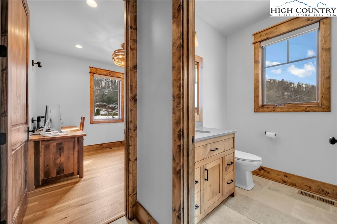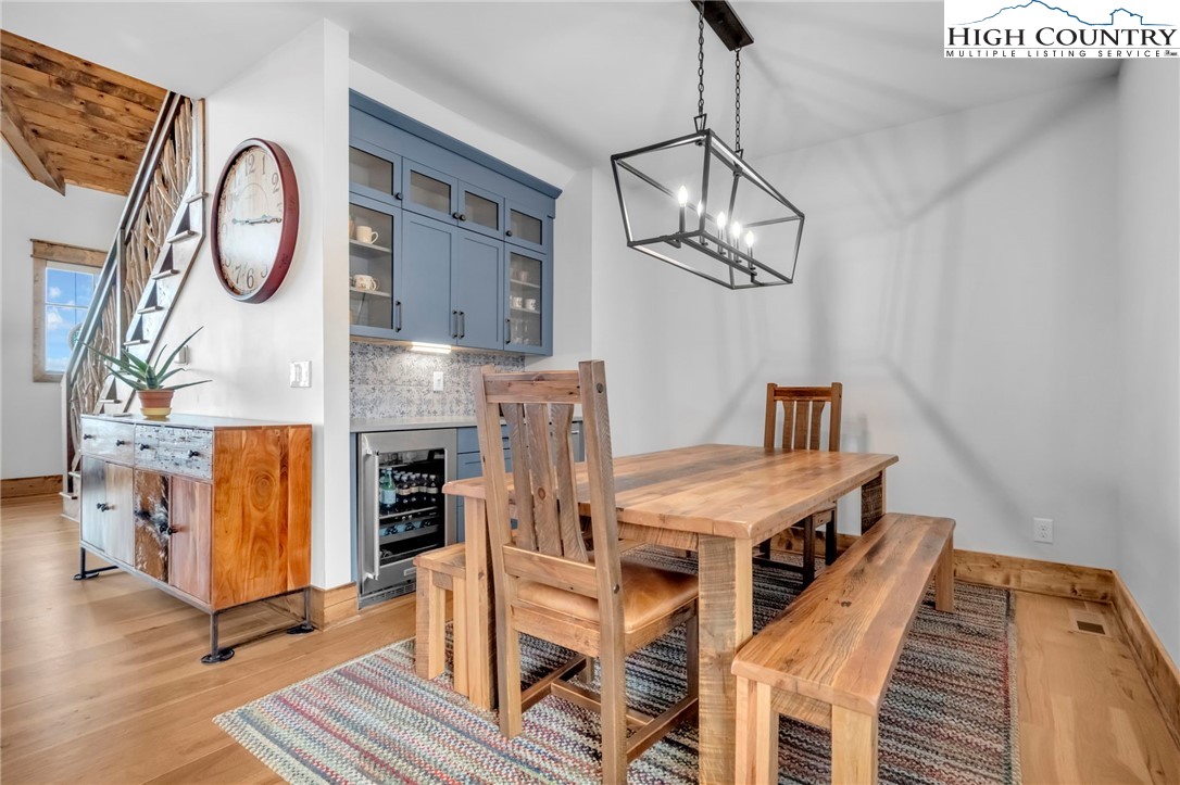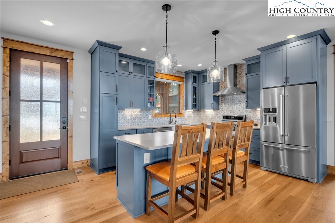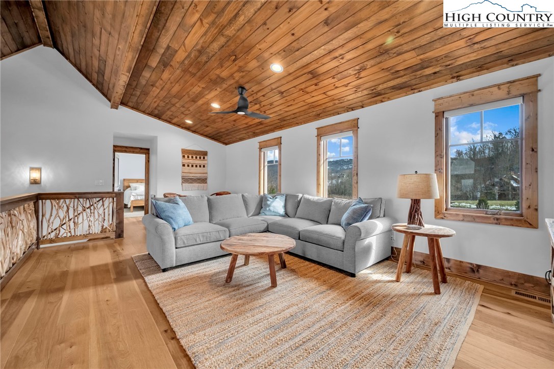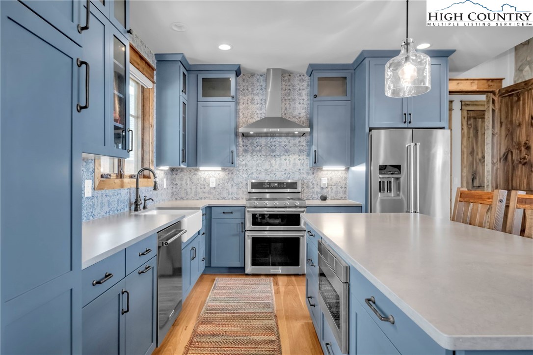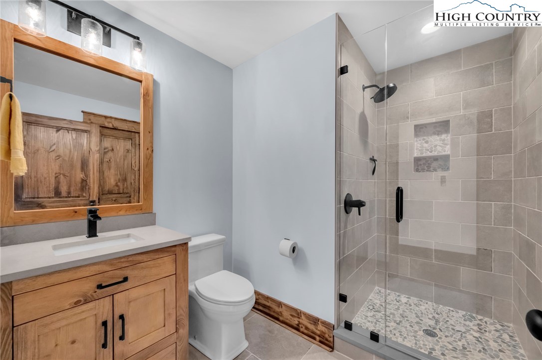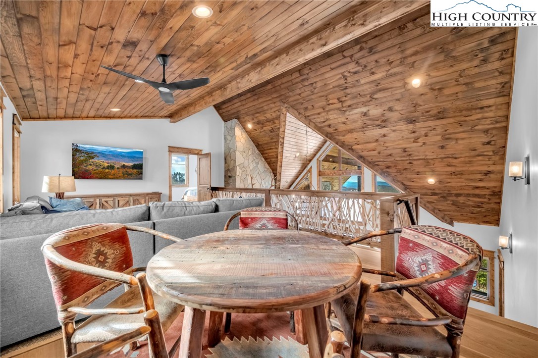 Nestled at the end of a quiet cul-de-sac in The Lodges at Eagles Nest, this beautifully crafted 4-bedroom, 4-bath mountain retreat offers privacy, long-range views, and exceptional quality on nearly 3 acres. Designed for both comfort and entertaining, the home features vaulted ceilings, wide plank hickory flooring, and a dramatic stone fireplace extending to the ceiling in the great room, creating a warm and inviting mountain atmosphere. The spacious kitchen is appointed with quartz countertops, upgraded appliances, farm sink, beverage bar with refrigerator and ice maker, and designer backsplash, making it perfectly tailored for hosting gatherings. A convenient mudroom entrance between the home and detached garage adds functionality for mountain living. Step outside to experience the true highlight of the property—expansive covered decks with a stone gas log fireplace overlooking sweeping long-range mountain views. Just below, a beautifully constructed stone fire pit patio creates the perfect setting for evening conversations under the stars. The detached garage is fully insulated and climate controlled with its own mini-split heating and cooling system, ain industrial sink with hot and cold water, and separate electric service, offering exceptional flexibility for storage, workshop space, or future conversion to additional living space. The home also features a 40kW liquid cooled whole-house Generac generator, radon mitigation system, upgraded insulation, and extensive structural enhancements for durability and efficiency. Additional highlights include level entry access, upgraded lighting, structured wiring, remote controlled retractable roller shades, and premium finishes throughout. Located within the highly sought-after Lodges at Eagles Nest community, residents enjoy access to world-class amenities including hiking and ATV trails, winery, fitness center, sports courts, and outdoor recreation areas. A rare opportunity to own a serene, luxury mountain retreat with incredible views and exceptional upgrades in one of Banner Elk’s premier communities.