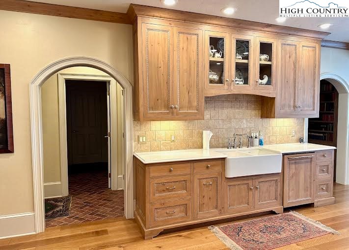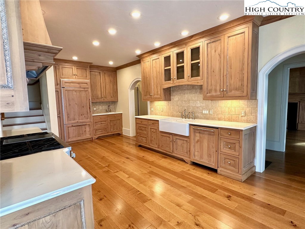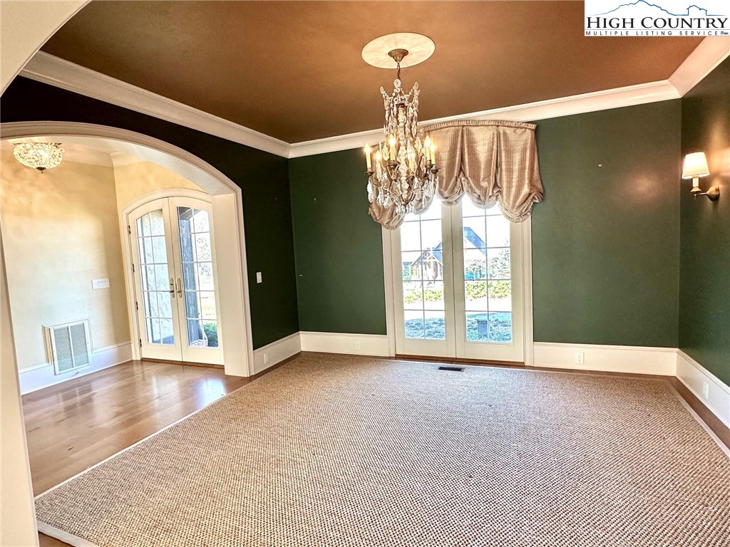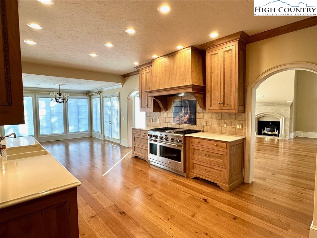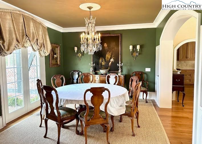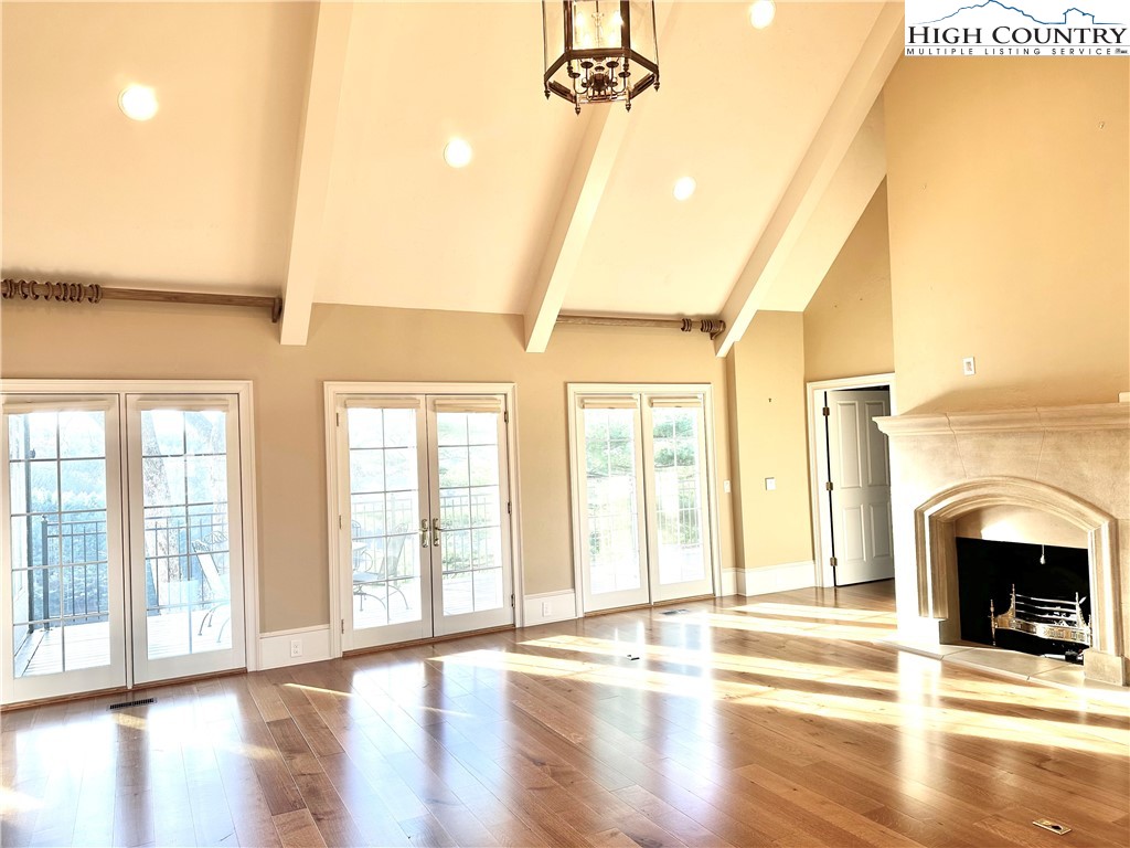 Luxury custom home in Jefferson Landing!! Experience refined mountain living in this high-end, custom- built residence nestled within this exquisite gated golf course community. Designed with timeless details throughout, this home showcases a gorgeous entry into the formal living room with high vaulted ceilings, modern fireplace and exposed beams, elegant arched doorways throughout and lovely 6 white oak flooring that create an open, airy sophistication. The heart of the home features hemlock custom cabinetry in the kitchen paired with quartz countertops, GE Monogram appliances and walk-in laundry/pantry; hemlock paneling and built-in shelves in the library and an inviting family/sunroom blending natural beauty with exceptional quality and functionality. The main level primary suite is a dream with a vaulted ceiling, access to the rear deck and bath with walk-in shower, soaking tub and walk-in closet. The upper floor offers 2 guest suites, each with a full bath and bonus space. The lower level expands the home's versatility with additional guest space, unfinished space with endless possibilities and amazing storage. Every room is thoughtfully designed to capture the spectacular mountain and river views. From its architectural detailing to its warm, natural finishes, this home embodies comfort, and craftsmanship at the highest level—while also offering privacy, beauty, and access to world-class golf and outdoor recreation. Beyond the gate, enjoy activities including kayaking, floating or fishing along the scenic New River, or exploring the beauty of the Blue Ridge Parkway, just a short drive away. When it’s time to unwind, visit the bustling downtown of West Jefferson, filled with unique restaurants, vibrant art galleries, and charming shops. Whether you’re seeking adventure or relaxation, this extraordinary home places you in the center of the High Country lifestyle and will capture your heart!!