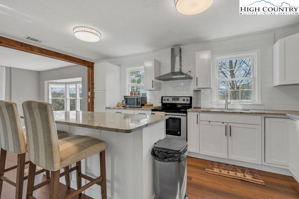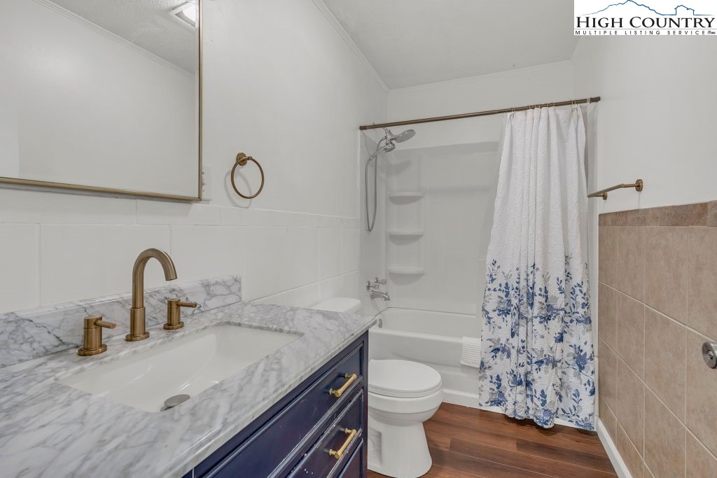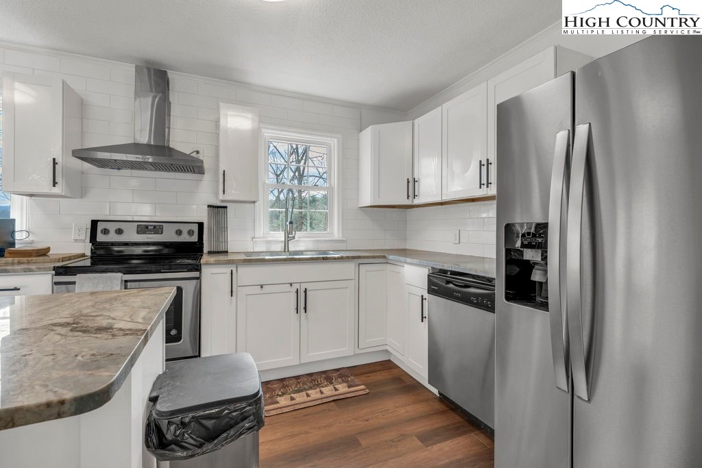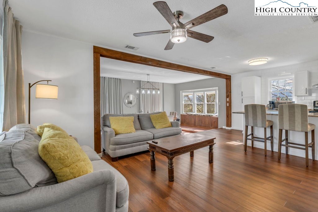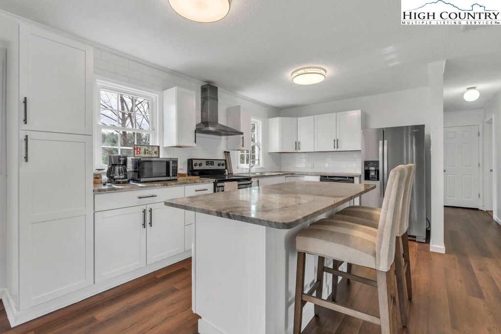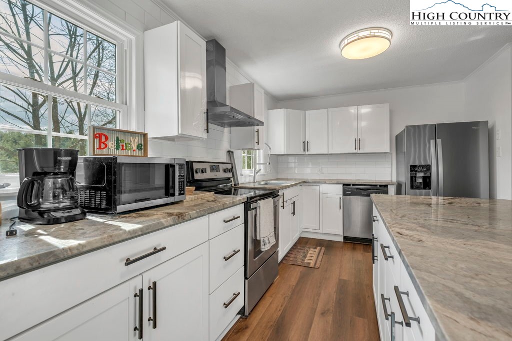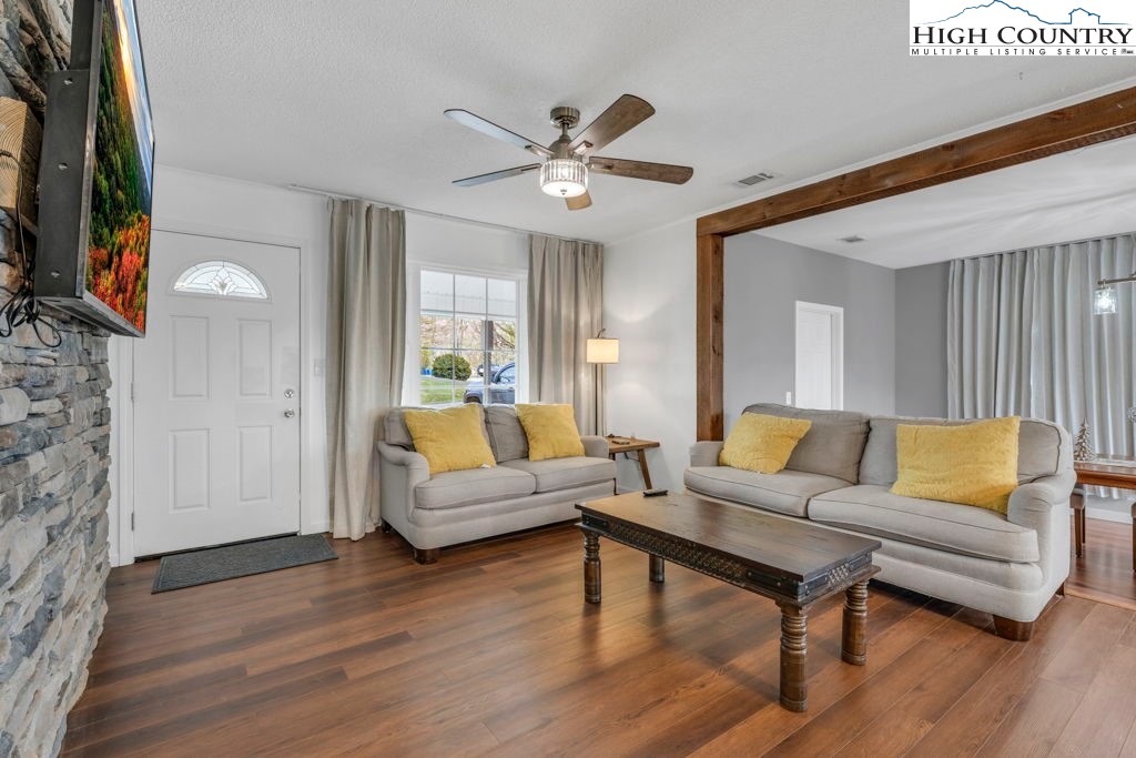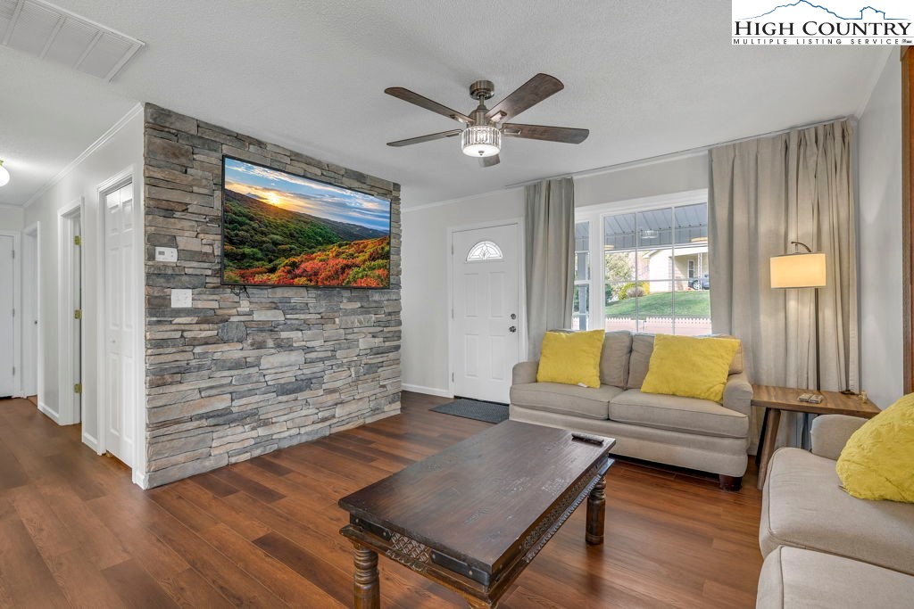Freshly renovated home just outside of the city limits of Mountain City! Step into this beautiful open floorplan with new laminate flooring, paint, fixtures, and eye-catching mountain views! Large pantry off of the dining area compliments the new cabinets with granite tops in the kitchen for ample storage. White tile backsplash makes the granite and the stainless steel appliances pop, with a large island to complete the kitchen of your dreams. Continue down the hall to find a full bath on the left with tub shower and an additional half bath on the right with two spacious carpeted bedrooms on the main floor. Basement area is finished to the same level that you fall in love with on the main, with its own large den, 3rd bedroom and spacious carpeted bonus room that is currently utilized as a bunk room. Off of all of this lower level finished space is another bonus area currently utilized as a game room that could easily be finished and heated or utilized in a multitude of ways as it is! Lower level also has the laundry area and steps out to its own fenced backyard. Larger fenced area encompasses the side and front yard, where you can sit on the covered front porch and watch the kids and pets play. Full camper hookup in the front yard with a storage shed in the back yard. All of this within 5 minutes of the beautiful park, grocery stores, restaurants, and down town and less than 40 minutes to Boone, NC. So much adventure in every direction. Come and see the home of your dreams in the center of it all, schedule your appointment today!