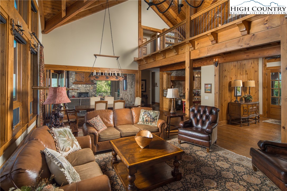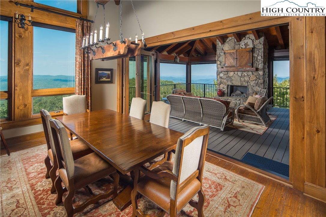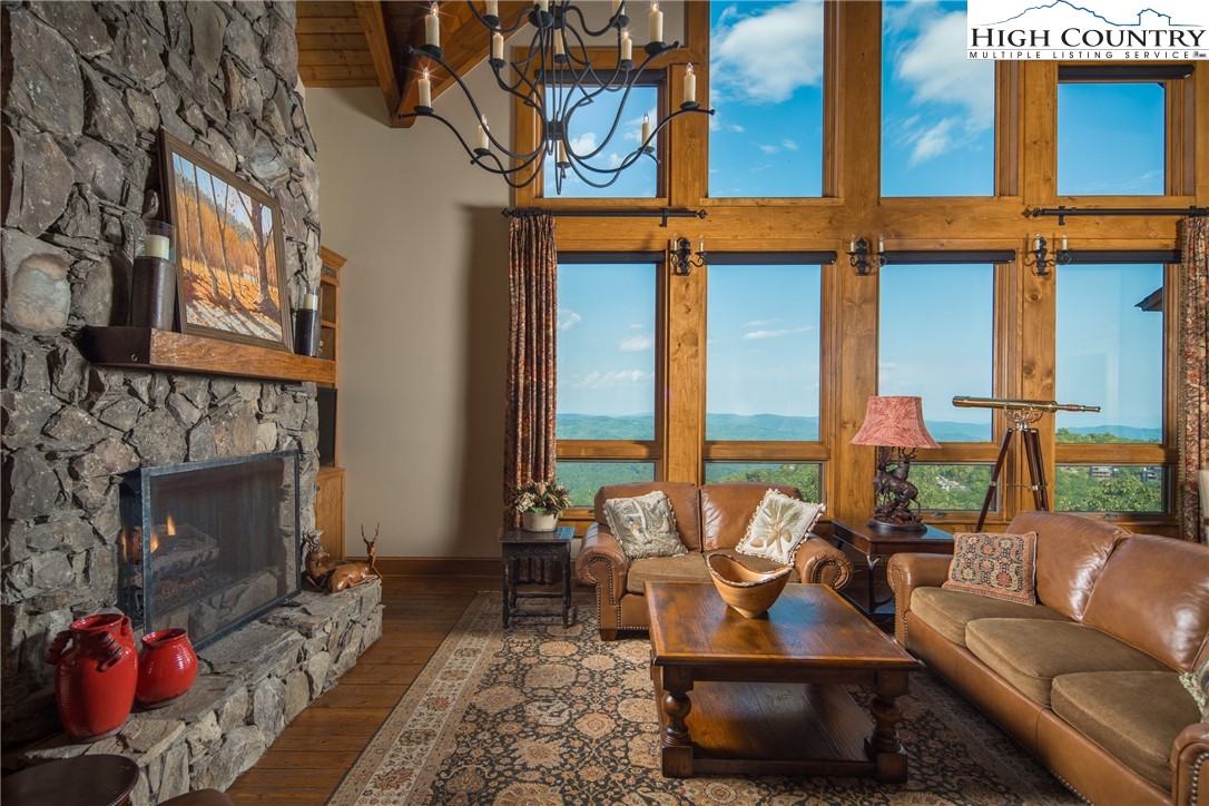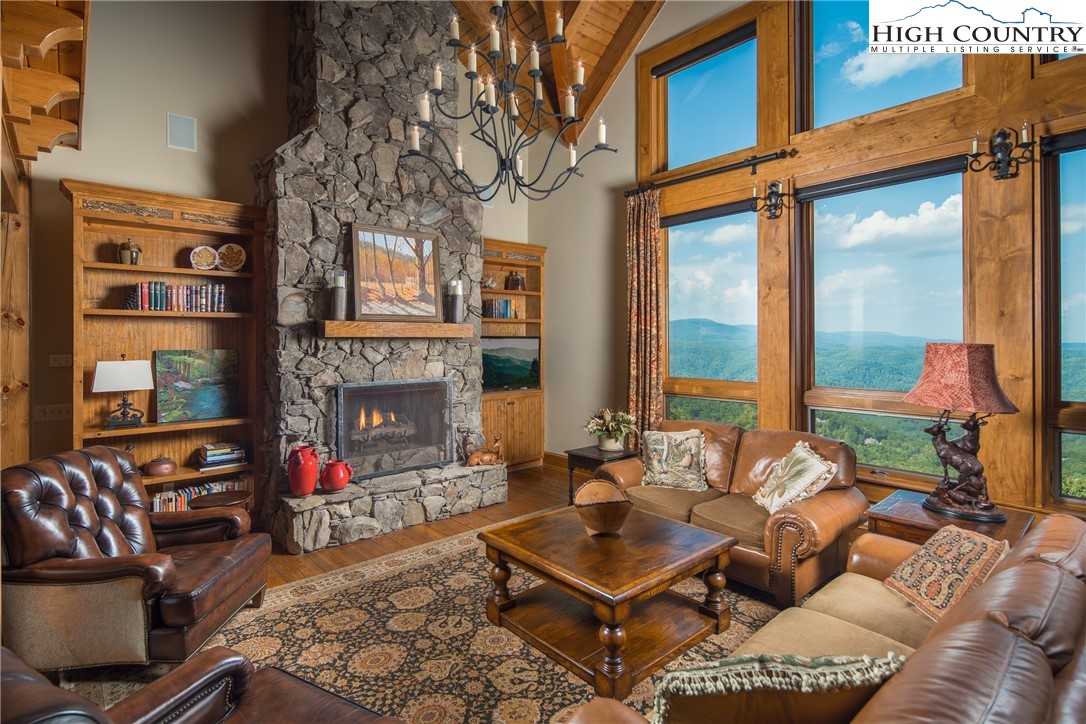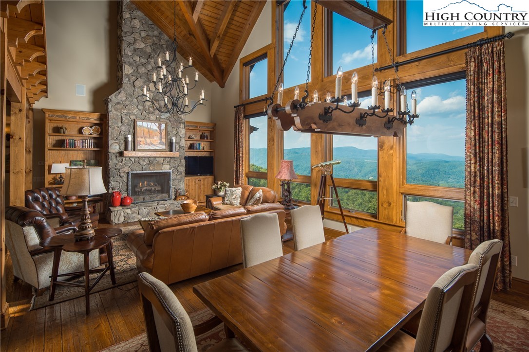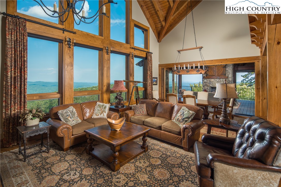 5212 Reynolds Parkway is the pinnacle of luxury mountain living. Perched on the ridgetop, this home invites you to experience an elevated lifestyle at Blue Ridge Mountain Club. Stunning and manicured landscaping greets you while exceptional long-range views serve as the backdrop. When you enter this mountain home, a dramatic two story wall of windows extends the panoramic views so you and your guests can revel in the vistas of the Blue Ridge Mountains from anywhere in this stunning timber frame mountain retreat. Built for entertaining, you'll enjoy a lovely bar, movie space and recreation room on the lower level for billiards or gathering with family and friends. Extend the festivities to your multi level porches, one featuring full wall accordion doors and stone fireplace, and the other a hot tub, all meant to be enjoyed four seasons. With a reading loft and ample space to separate activities, 5212 Reynolds Parkway offers the convenience and comfort to stay as long as you like. 5212 Reynolds Parkway delivers a luxury lifestyle just steps from a world of adventure. Offered furnished, this home is ready for you to come home to Blue Ridge Mountain Club, a premier mountain community, where a life well-lived is yours.