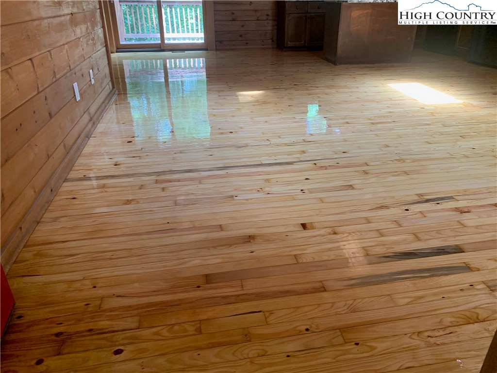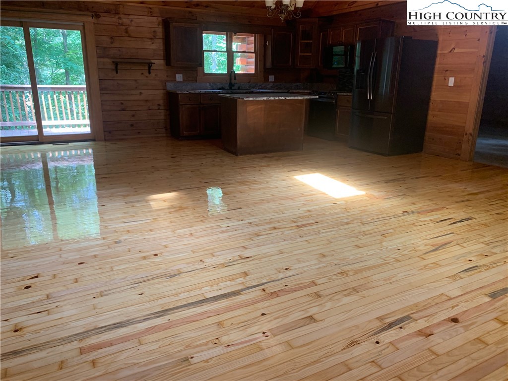 NEWLY REFINISHED PINE FLOORS ON MAIN FLOOR IN GREAT ROOM LIVING AREA. NEW BERBER CARPET IN ALL BEDROOMS. COMPLETELY MOVE IN READY HOME. Absolutely beautiful, solid log home in desirable Todd location convenient to Boone and West Jefferson. Short 5-minute drive to historic Todd for shopping, recreation at parks, and water sports along South Fork New River. Brand new high grade Sikkens exterior stain applied to whole house. Two recently upgraded tile bathrooms on main level. Rustic wood interior, large exterior decks front and rear, and front covered porch. House is clean and move-in ready with extensive upgrades in recent years. Spacious open format great room, dining area and kitchen with professionally refinished pine floors (9/6/25) and high cathedral ceiling feels bright and airy. Kitchen has rich wood cabinets renovated in 2022 and features new refrigerator, stainless steel appliances and functional working island for convenient food prep and casual dining. Other recent improvements include new washer and dryer in 2023, and in 2024 a new well pump and pressure tank installed, plus new water heater and brand new HVAC system. Basement has plumbing stubbed for 3rd bathroom. Long covered front porch plus expansive open deck areas in front and back of house. Walkout basement design allows separate entrance to finished lower part of house with separate propane powered monitor heater, so virtually unlimited options for future use. Circular driveway in front plus parking area by the road can easily accommodate up to six vehicles. Bedrooms and upper stairs feature brand new Berber carpet installed 9/12/25. For convenient location plus serenity in a pleasant wooded mountain setting, this solidly built log home offers a great value in today's market. Don't delay, see today. Short notice is OK for showings because the house is not currently owner occupied. Broker interest. Listing Agent is related to one of the Sellers.