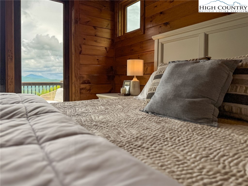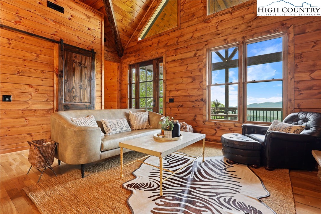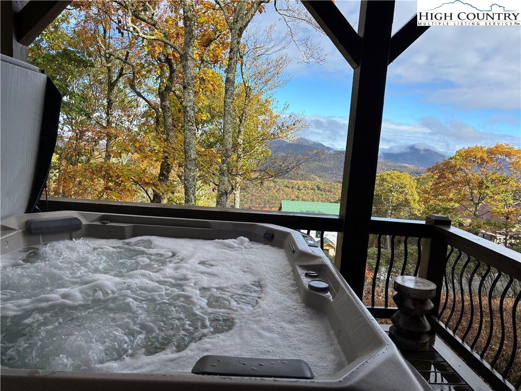 Beautiful, newly built 3 bedroom, 2.5 bath log cabin perched at 4,500 ft in Boone. This stunning home showcases exceptional craftsmanship throughout; vaulted ceilings, a stone fireplace, floor-to-ceiling windows, beautifully finished bathrooms, a chef's kitchen, and gorgeous mountain-inspired decor. Each bedroom features breathtaking layered mountain views, creating a peaceful retreat for every guest. The lower level offers a spacious game room, bar area, and additional living room for entertaining and relaxing. Enjoy a two car garage, fire pit, plenty of parking and an expansive deck space plus a hot tub to take in the mountain scenery year round. Situated in a quiet gated neighborhood. This property allows short term rentals makeing it an excellent passive income opportunity. A true mountain retreat blending comfort and elegance.