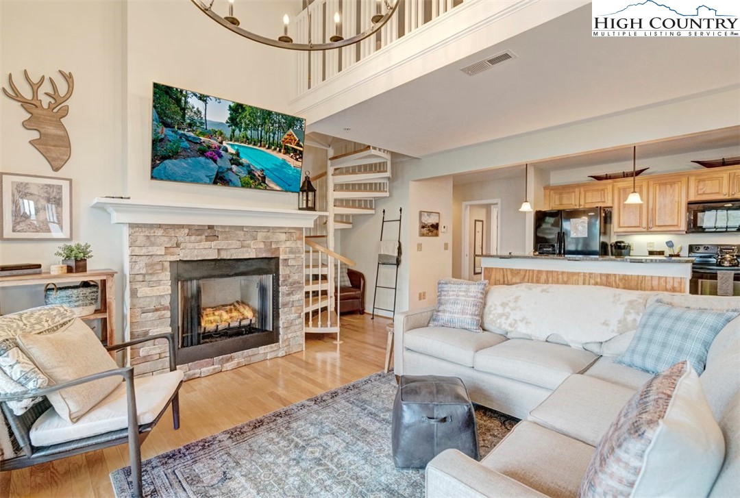 TOP FLOOR 2BR|2BA + Loft in one of only two Wintergreens in original Echota. This updated and well-maintained condo is being offered fully furnished. Interior finishes include hardwood floors throughout the main living areas, stacked stone gas fireplace and expansive vaulted ceilings. The tastefully furnished open living and dining area is surrounded by windows and leads to the spacious covered deck to take in the mountain views. The kitchen features birch cabinetry, granite countertops and a convenient breakfast bar. Vaulted ceilings continue into the classy primary bedroom with a four-poster king bed, ample closet space, access to the deck and an adjoining primary bath with double vanity in the dressing area and separate area with ceramic tile flooring and a tub/shower combo. The light and bright guest bedroom also features a king bed and its own bathroom, with pocket door for additional privacy. Upstairs is a versatile open loft, currently set up with 2 twin beds for an additional sleeping area. The updated décor, furnishings and lighting really enhance the style of this property. Owners have access to the new amenity center at The Summit at Echota which includes a spectacular outdoor pool and deck area, fitness facility and skybridge.