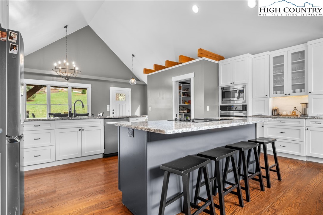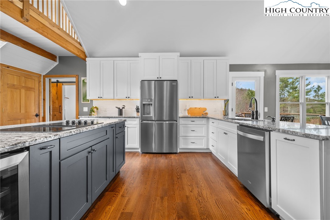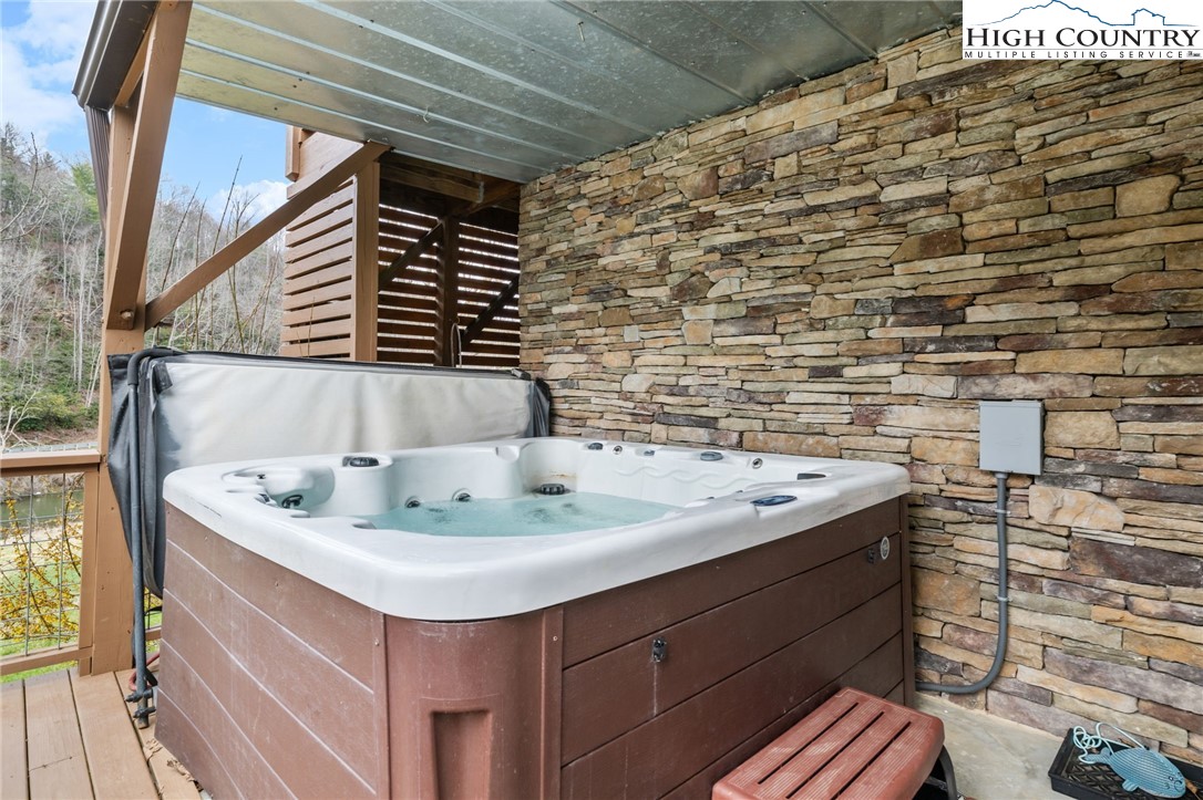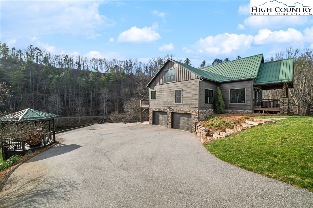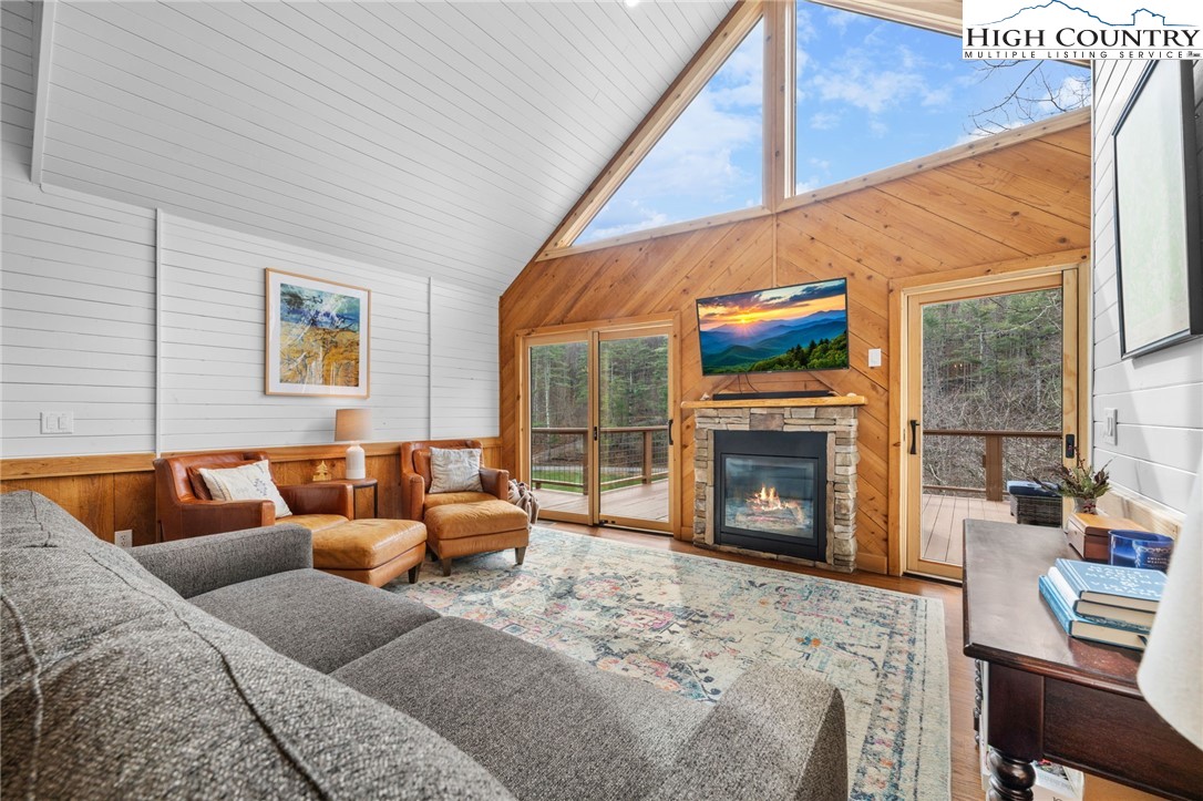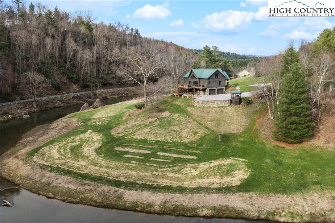 Set along a rare and breathtaking bend of the New River in Todd, this exceptional riverfront estate offers nearly 5 acres of highly usable land with an extraordinary stretch of river frontage—creating a setting that is both expansive and truly one-of-a-kind. With ownership encompassing the riverbend, the property delivers a level of privacy, scale, and natural beauty that is seldom available.Thoughtfully updated to reflect a refined, luxury feel, the home’s interior complements the stunning outdoor surroundings. The main-level primary suite provides ease and comfort, featuring a beautifully renovated bathroom and convenient access to the newly added laundry room. Hardwood floors, soaring cathedral ceilings, and a gas log fireplace anchor the open living space, while the spacious kitchen offers granite countertops, abundant storage, and seamless flow for entertaining.Designed with both relaxation and hosting in mind, the home includes 3 bedrooms plus two additional sleeping areas, including custom built-in bunk beds on the lower level—wonderful for accommodating guests.Outdoor living is exceptional, with expansive deck space, a gazebo, hot tub, and a dedicated fire pit area—all positioned to take full advantage of the serene river setting. The gently usable yard enhances the experience, with the potential to launch a kayak directly from the property, in addition to community river access within the neighborhood.Short-term rentals are permitted, and a rental projection is available, offering flexibility for personal enjoyment or investment opportunity.A rare opportunity to own a signature riverfront property where luxury, land, and lifestyle converge.