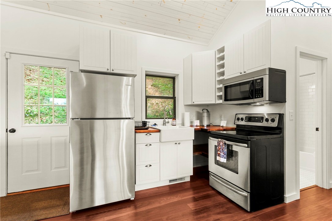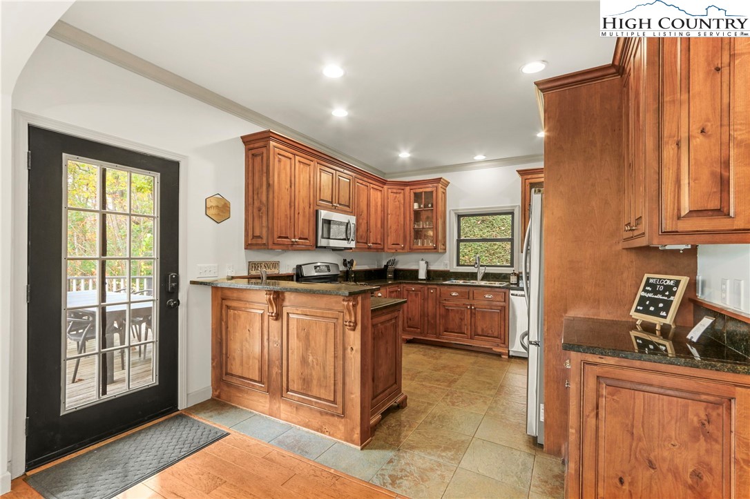 Charming Mountain Retreat with Guest Apartment & Breathtaking Views, nestled at the base of Beech Mountain with a coveted Banner Elk address, this inviting mountain home offers the perfect blend of comfort, modern updates, and rustic charm. Just minutes from both Beech Mountain and Sugar Mountain Ski Resorts, the property is ideal for year-round living, a serene vacation home, or a smart investment opportunity. The spacious main residence features an elegant primary suite conveniently located on the main level, complemented by open-concept living spaces that showcase stunning mountain views. Recent updates include all-new flooring throughout the basement and upper levels (2024), a new HVAC system and furnace (installed in December 2024), a brand-new roof (September 2025), and a new refrigerator (2023), ensuring peace of mind and modern convenience. Step outside onto a generous deck, perfect for dining al fresco or simply soaking in the natural beauty that surrounds you. A standout feature is the detached guest apartment offering an additional 617 square feet of living space—not included in the main home's square footage—ideal for hosting visitors, generating rental income, or creating a private office or studio. With two garages, including an oversized one for extra storage or workshop space, and postcard-worthy views of both Grandfather Mountain and Sugar Mountain, this property is a rare find in one of North Carolina’s most desirable High Country locations. Don’t miss your chance to own this unique, versatile mountain retreat where comfort, convenience, and natural beauty meet. Furnishings negotiable.
