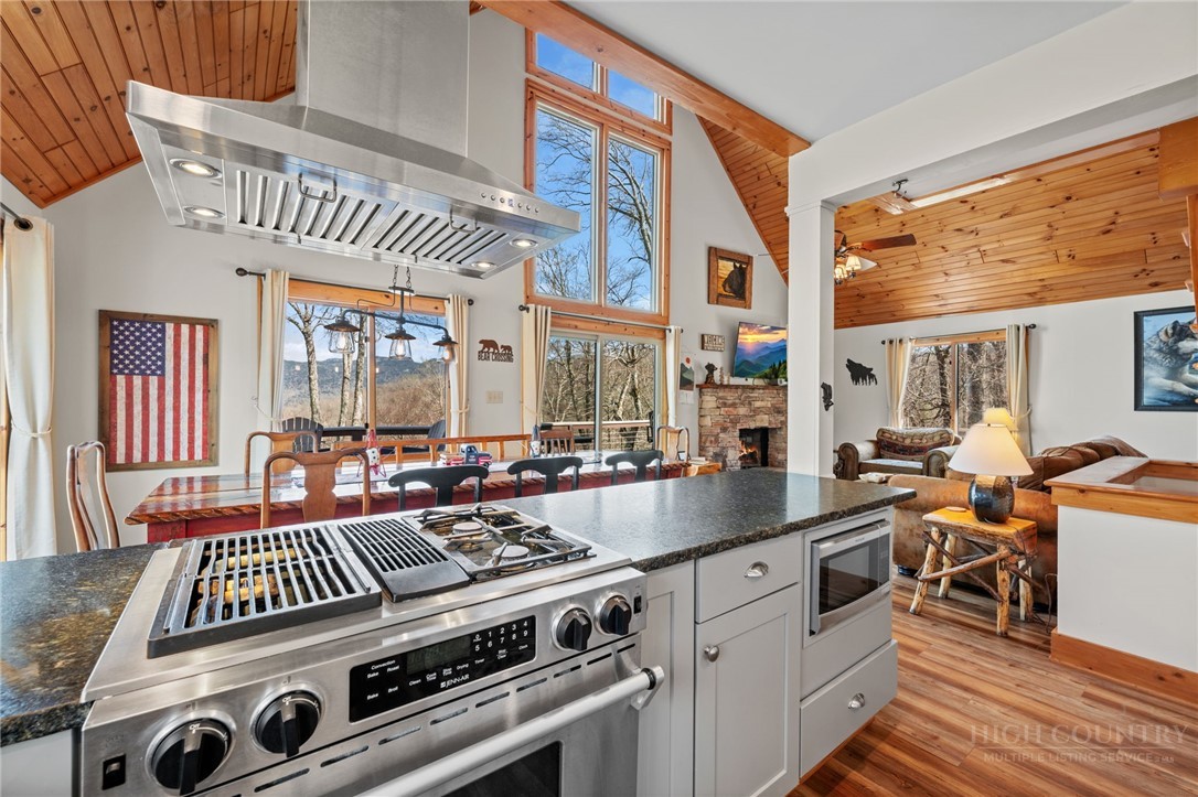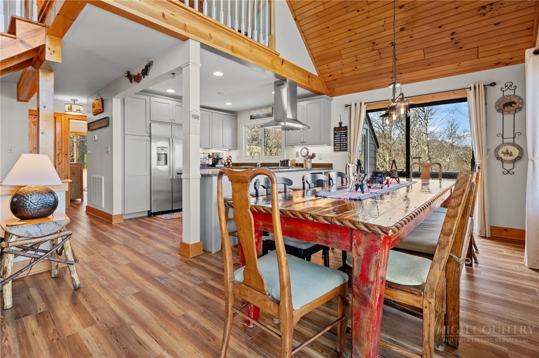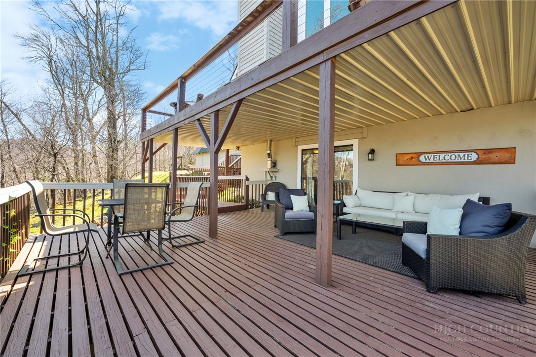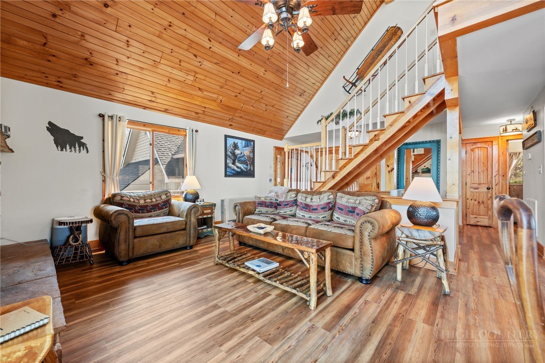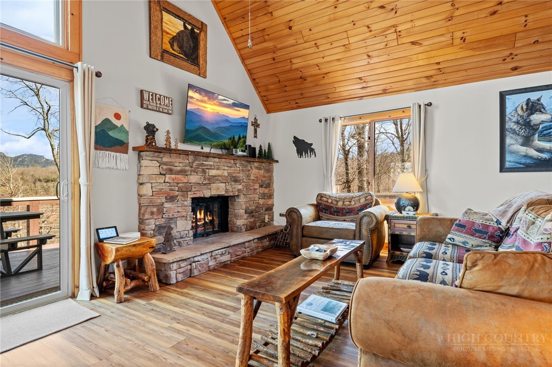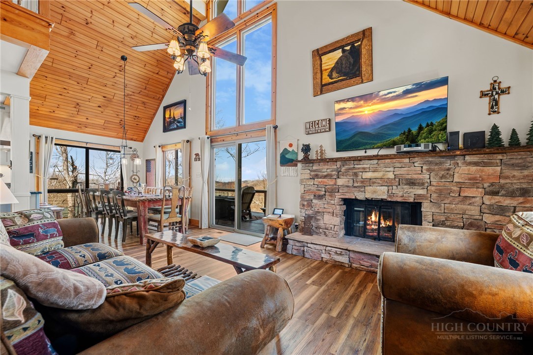 Perched on a prime lot within the prestigious Sugar Mountain community, this four bedroom (plus bonus room), three full bath mountain retreat offers the perfect blend of rustic character and modern luxury. Unrivaled Grandfather Mountain views and effortless resort access add to the appeal of this beautifully appointed mountain home. Step into a light-filled great room featuring vaulted ceilings, stone fireplace, many windows and sliding glass doors that frame the stunning, unobstructed long-range mountain views. The open concept design flows seamlessly into a gourmet kitchen outfitted with granite countertops, premium stainless appliances, a central island and seamless flow into the dining room, ideal for entertaining. On the main level, two additional spacious guest bedrooms provide ample room for family and friends. The upper level is dedicated to a private primary suite oasis with a loft/office space and a spa-like ensuite with heated flooring, a soaking tub, and a custom tile shower. The finished lower level functions as a complete entertaining area featuring a large family room, gaming area, a wood-burning stove, wet bar and a kitchenette. It could serve as a potential in-law suite or separate guest quarters with a bedroom, full bath, bonus room and it's own entrance, private deck and driveway. Outdoor living is redefined by the massive two-tier wrap-around decking, a sauna, and a firepit area with plenty of seating. With a rare detached 2-car garage, two level driveways with ample parking and a location just minutes from skiing, golf, and tennis, this property is a premier choice for a lucrative short-term rental, second home or year round living. The free Sugar Mountain ski bus stops at your driveway—a massive draw for rental guests and owners alike. This property is a proven income generator, with ski season rentals alone historically covering all property expenses. Welcome home to high-altitude serenity and four season adventure right here in Sugar Mountain! Furnishings negotiable.