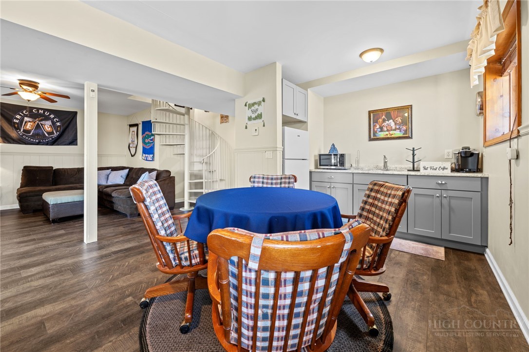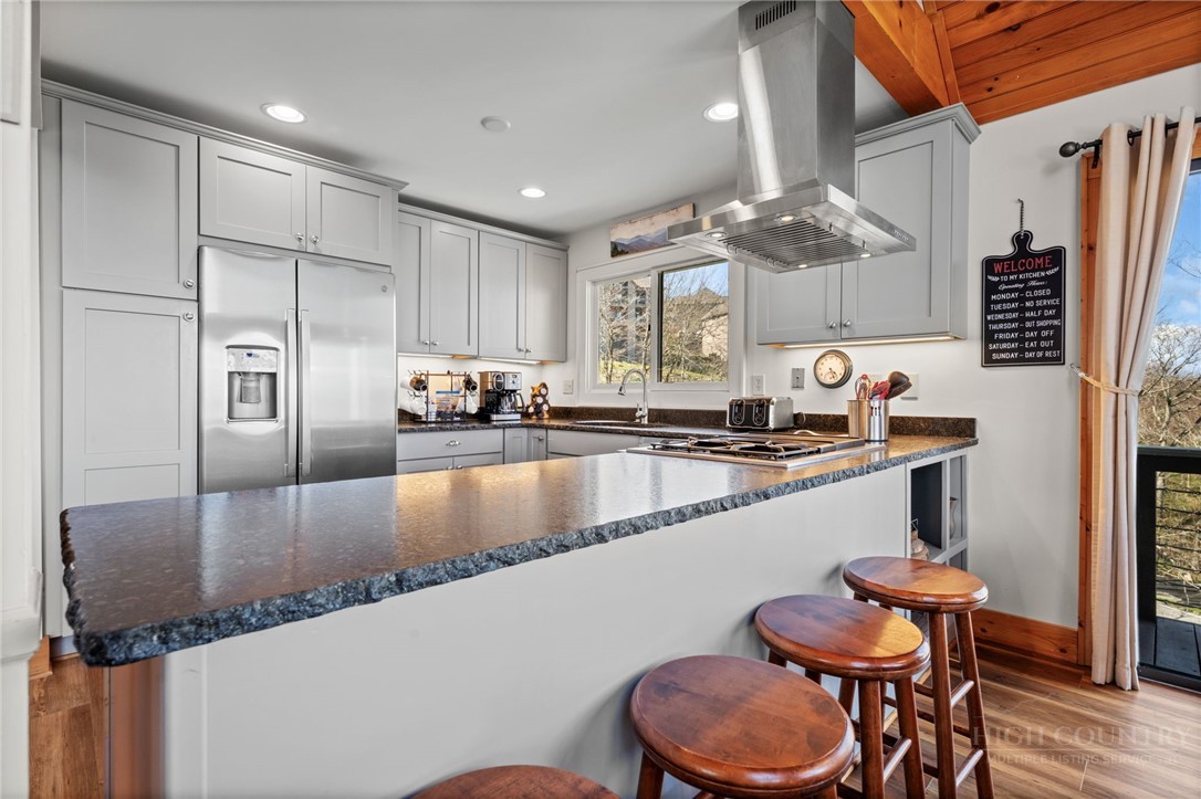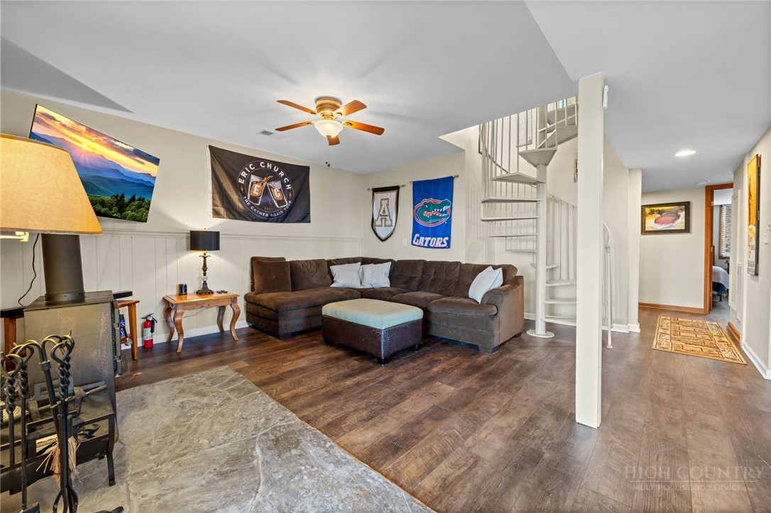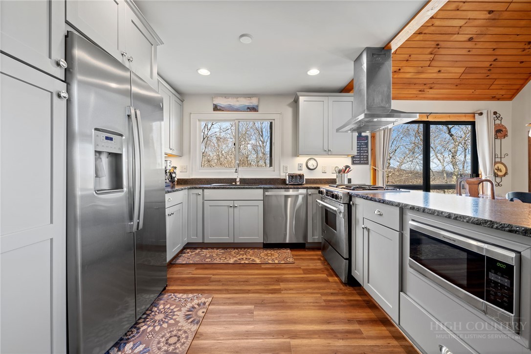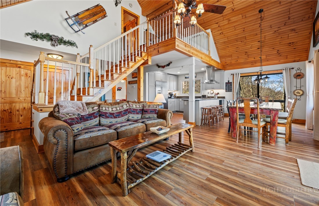 Perched on a prime lot within the prestigious Sugar Mountain community, this four bedroom (plus bonus room), three full bath mountain retreat offers the perfect blend of rustic character and modern luxury. Unrivaled Grandfather Mountain views and effortless resort access add to the appeal of this beautifully appointed mountain home. Step into a light-filled great room featuring vaulted ceilings, stone fireplace, many windows and sliding glass doors that frame the stunning, unobstructed long-range mountain views. The open concept design flows seamlessly into a gourmet kitchen outfitted with granite countertops, premium stainless appliances, a central island and seamless flow into the dining room, ideal for entertaining. On the main level, two additional spacious guest bedrooms provide ample room for family and friends. The upper level is dedicated to a private primary suite oasis with a loft/office space and a spa-like ensuite with heated flooring, a soaking tub, and a custom tile shower. The finished lower level functions as a complete entertaining area featuring a large family room, gaming area, a wood-burning stove, wet bar and a kitchenette. It could serve as a potential in-law suite or separate guest quarters with a bedroom, full bath, bonus room and it's own entrance, private deck and driveway. Outdoor living is redefined by the massive two-tier wrap-around decking, a sauna, and a firepit area with plenty of seating. With a rare detached 2-car garage, two level driveways with ample parking and a location just minutes from skiing, golf, and tennis, this property is a premier choice for a lucrative short-term rental, second home or year round living. The free Sugar Mountain ski bus stops at your driveway—a massive draw for rental guests and owners alike. This property is a proven income generator, with ski season rentals alone historically covering all property expenses. Welcome home to high-altitude serenity and four season adventure right here in Sugar Mountain! Furnishings negotiable.
