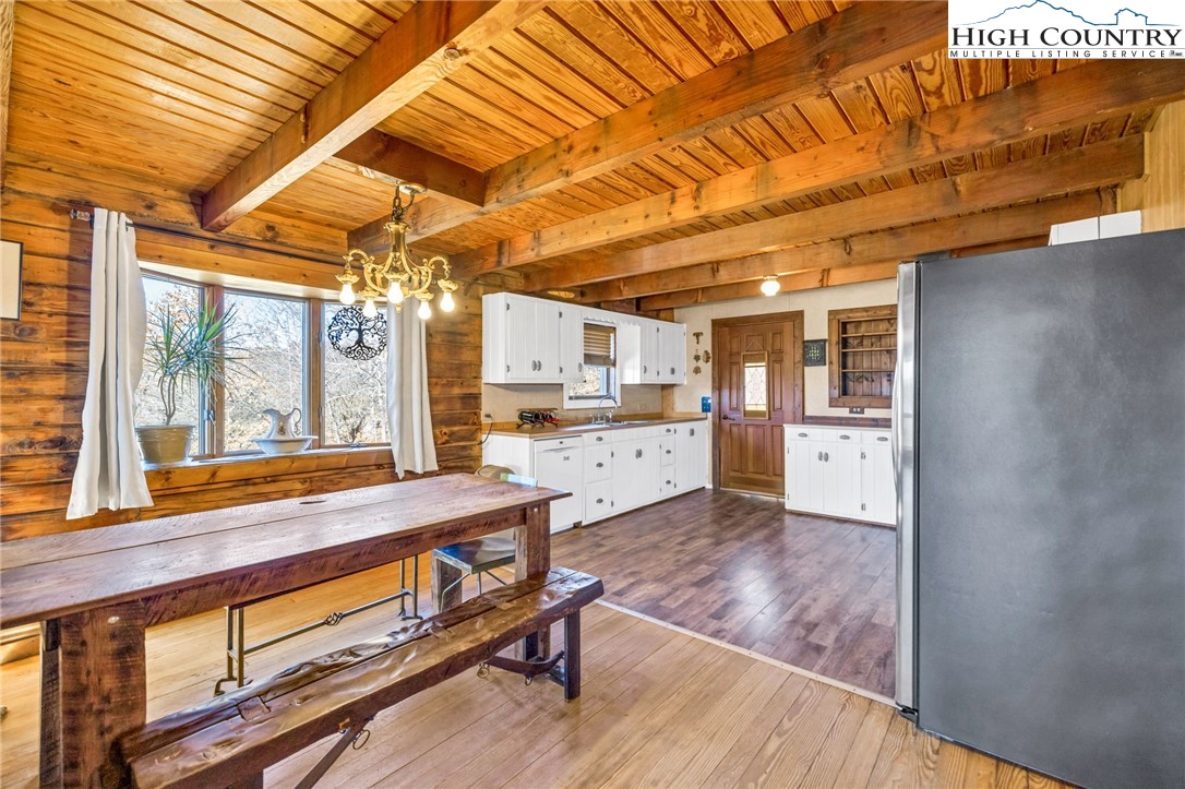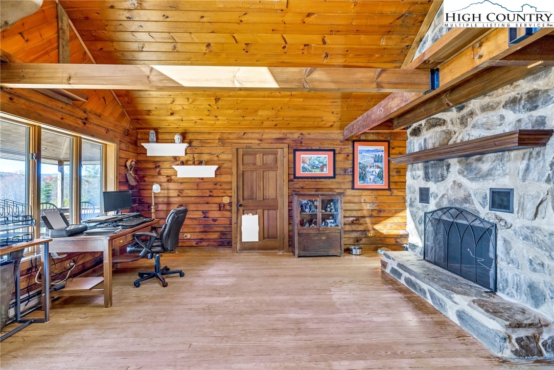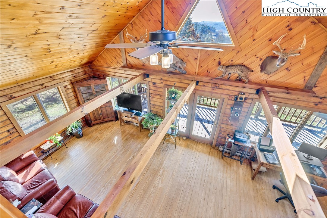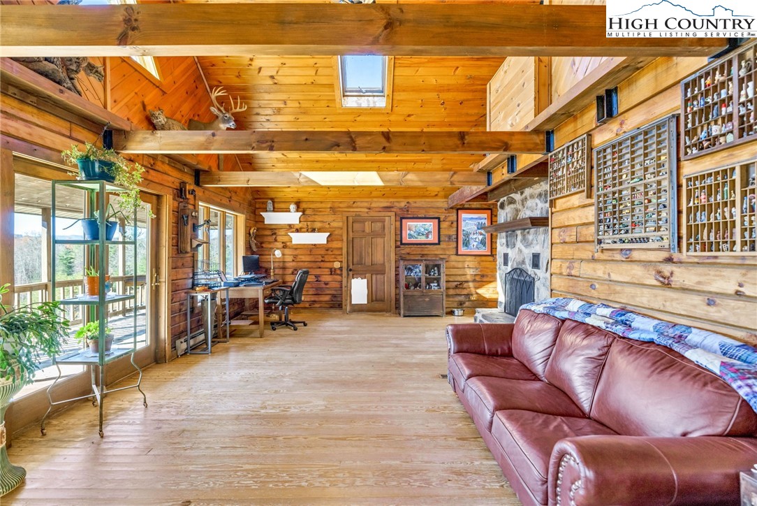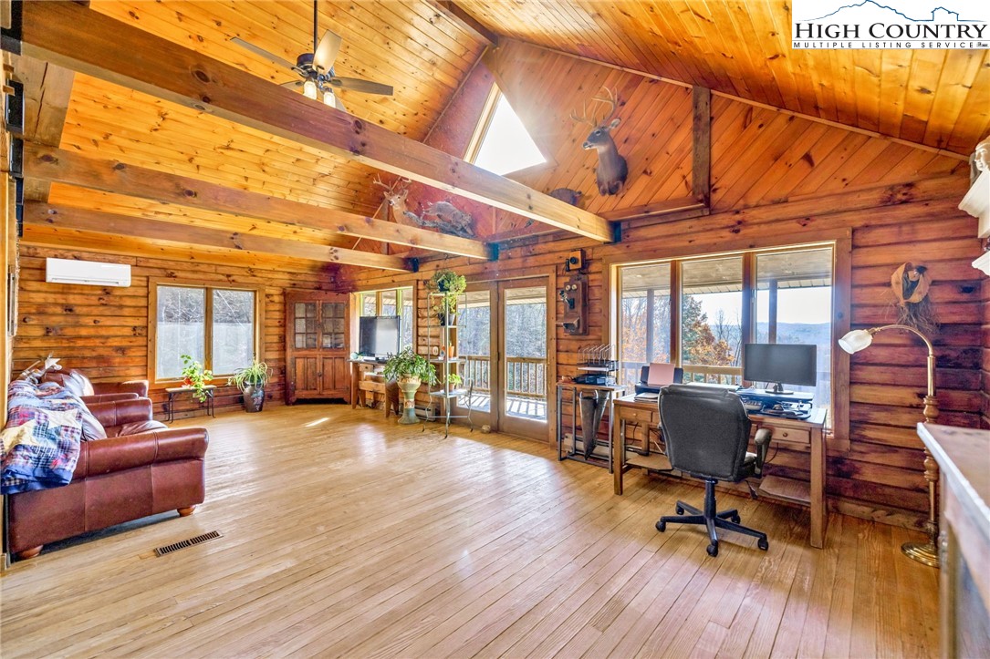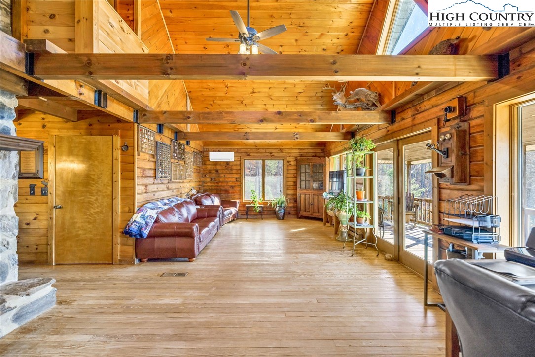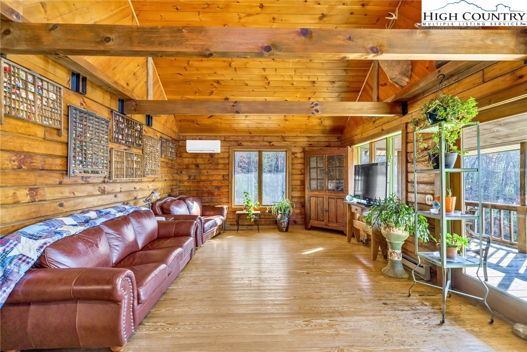 Discover authentic mountain living in this handcrafted log cabin set on 3.10 serene acres with sweeping long-range mountain views. Offering 3 bedrooms, 3 full baths, and 2,209 square feet of warm, inviting space, this home captures the true essence of rustic comfort. The great room showcases soaring ceilings, rich log walls, and a stunning stone fireplace that serves as the centerpiece of the cabin. The main-level primary suite provides a cozy retreat, while additional bedrooms and full baths ensure ample space for family and guests. Enjoy the outdoors year-round from the expansive covered porch, perfectly positioned to take in the breathtaking mountain vistas and peaceful natural surroundings. A nice-sized barn adds exceptional functionality—ideal for storage, workshop use, or hobby farming—making this property as practical as it is beautiful. With its classic log construction, tranquil acreage, and remarkable views, this property is the mountain getaway you’ve been dreaming of. The primary bedroom consisting of 331.24 SF and the finished area of the basement consisting of 367 SF is unpermitted space; however, is included in the total heated square footage. This unpermitted space was completed with the assistance of a licensed contractor.