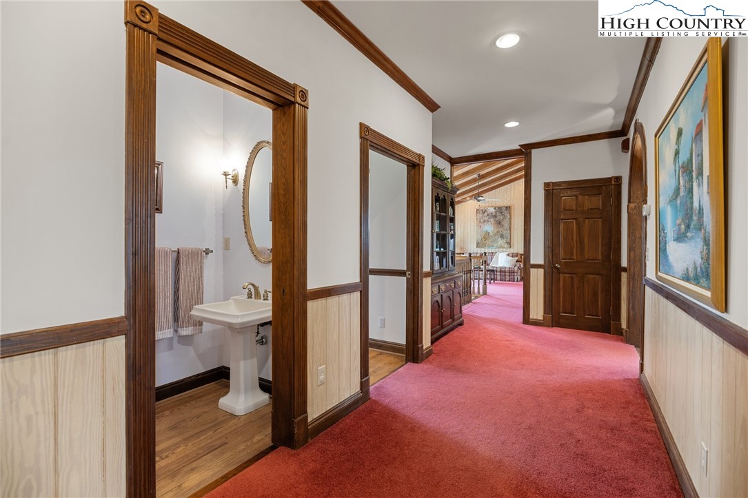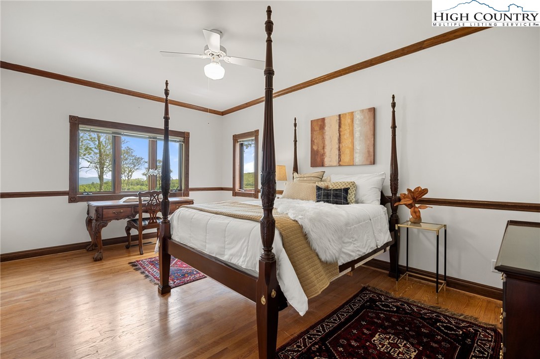 Nestled near the entrance of the Blue Ridge Mountain Club and just moments from the scenic Blue Ridge Parkway on a state maintained road, 577 Oak Ridge Road offers a rare combination of breathtaking views, convenience, and tranquility. This 4-bedroom ranch style mountain retreat sits on a large, gently sloping cleared lot, offering wide-open spaces for enjoying the High Country’s natural beauty. Inside, you’ll find a warm and inviting layout designed for both full-time living or weekend mountain getaways. Expansive windows frame panoramic, long-range breathtaking views from nearly every direction: 60+ miles to the north, 30–80 miles to the south and southeast, and 40-mile views into Virginia and Tennessee from the backyard. A large trey ceiling great room anchors the living space, creating a cozy atmosphere year-round. The home offers generous room for gathering and entertaining, with flexible space for a game room, home office, or additional living areas. The generous attention to detail from the crown moldings, solid yew cabinets in the laundry room, the fluted door frames, or the chair rail throughout the main level showcase the exceptional quality of this home. There are hardwoods under the red carpet. Outside, the cleared lot provides a rare sense of openness in a mountain setting—whether for outdoor living, gardening, or simply taking in the peaceful surroundings. The property’s location offers privacy without seclusion, with easy year-round access and proximity to both Boone (8 miles), Blowing Rock (4 miles) and the Blue Ridge Parkway (.4 miles). The mechanicals are all up to date with 16 SEER HVAC units installed in the last 5-6 years. The roof was replaced in 2024 with Timberline UHDZ top of the line shingle. 1000 gallon owner owned propane tank, and excellent water pressure from a shared 3 home well. Whether you're sipping coffee on the deck as the morning fog lifts or hosting friends against a backdrop of layered mountain peaks, this home delivers an exceptional lifestyle in the heart of the High Country. Combining unmatched views, convenience to major attractions, and a serene setting for elevated mountain living.