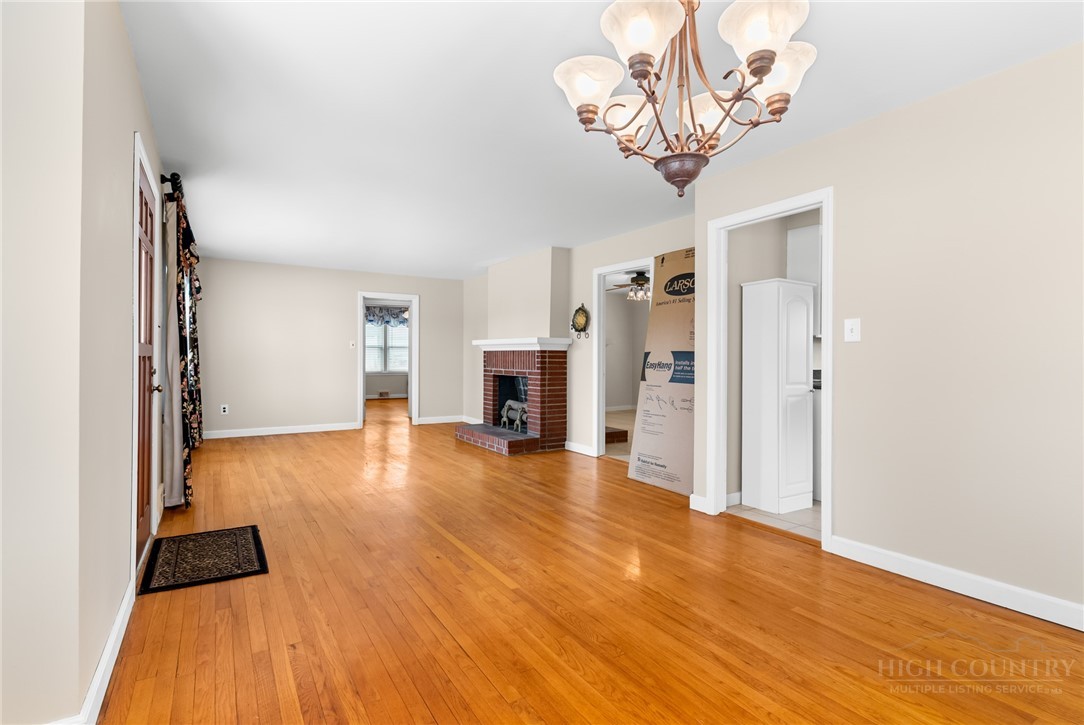 Super convenient in town location for this move in ready 3Br/2 BA classic brick ranch home! Sitting on right at 2 acres in the town of Sparta, this home offers easy access to shopping, dining and town events. Charming curb appeal with a newer driveway leading to the attached carport. As you enter, notice the large living/dining area just waiting for your furniture! There are 3 fireplaces in this home, but they need to be checked to determine usability. Just behind the living area, with it's own fireplace, sits a den or flex space. The kitchen is large with loads of cabinets and is access directly from the covered carport. Down the hall 3 BRs await with 2 updated full bathrooms. There is a full walk out/inside entry basement with ample space for storage and a laundry area. Plumbing has been recently updated. Roof installed in 2023! Nearby attractions include: The scenic Blue Ridge Parkway, The New River, Stone Mtn State Park and more!