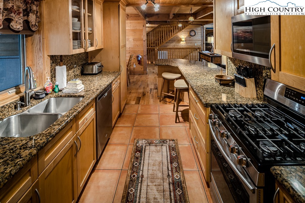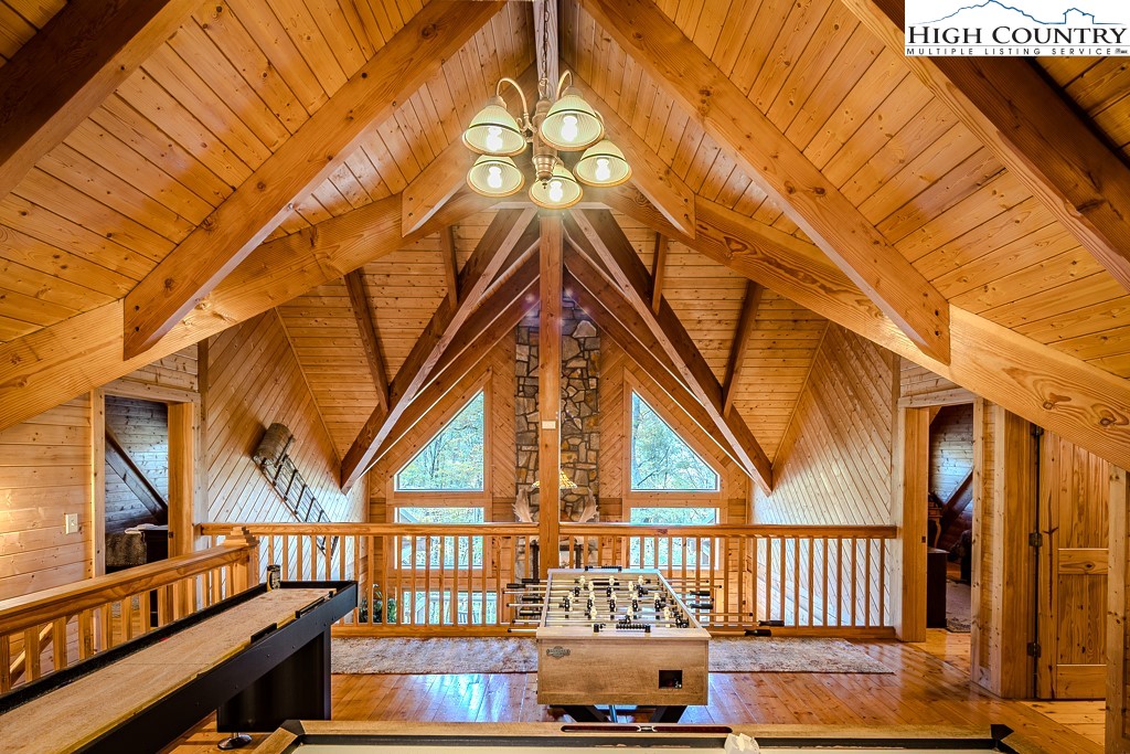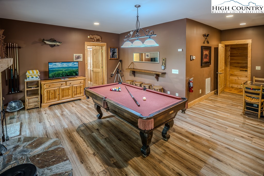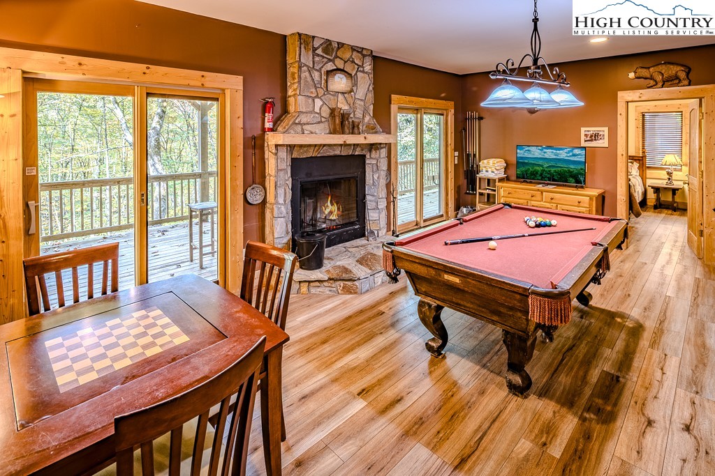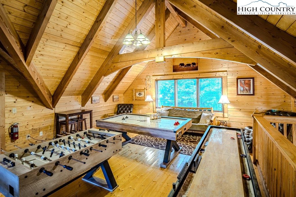 Mountain Lodge Fire and Ice Retreat in Blowing Rock, NC offered fully furnished – Blue Ridge Beauty next to Appalachian Ski Mountain Resort. Welcome to your dream mountain getaway! Nestled in the heart of the Blue Ridge Mountains, this log cabin offers rustic charm, modern comfort, and an unbeatable location just minutes from downtown Blowing Rock and the Appalachian Ski Area. Step inside to a warm, log interior featuring soaring ceilings, exposed beams, and two grand stone fireplaces (woodburning and gas). The main floor primary suite provides comfort and privacy, while the open loft overlooks the great room and with game tables including air hockey, foosball and shuffleboard bowling table for endless fun. The convenient kitchen boasts granite counters, stainless appliances, and plenty of space for gathering and entertaining. The lower-level game room (features billiards, game table and Pac-man video table) is perfect for guests, with room to relax or play after a day of mountain adventures. Step outside on the lower level deck to enjoy a hot tub under the stars or cozy up to the fire table with a cup of hot cocoa surrounded by peaceful forest views. The main level wrap-around porch provides numerous cozy spots for everyone. Whether you’re looking for a personal mountain retreat or a proven vacation rental investment (with overflow sleeping area) this cabin offers it all—rustic elegance, modern amenities, and prime location just minutes from skiing, hiking, and the charming shops and restaurants of Blowing Rock, Boone, Banner Elk and easy, quick access to the Blowing Rock Blue Ridge Parkway entrance.