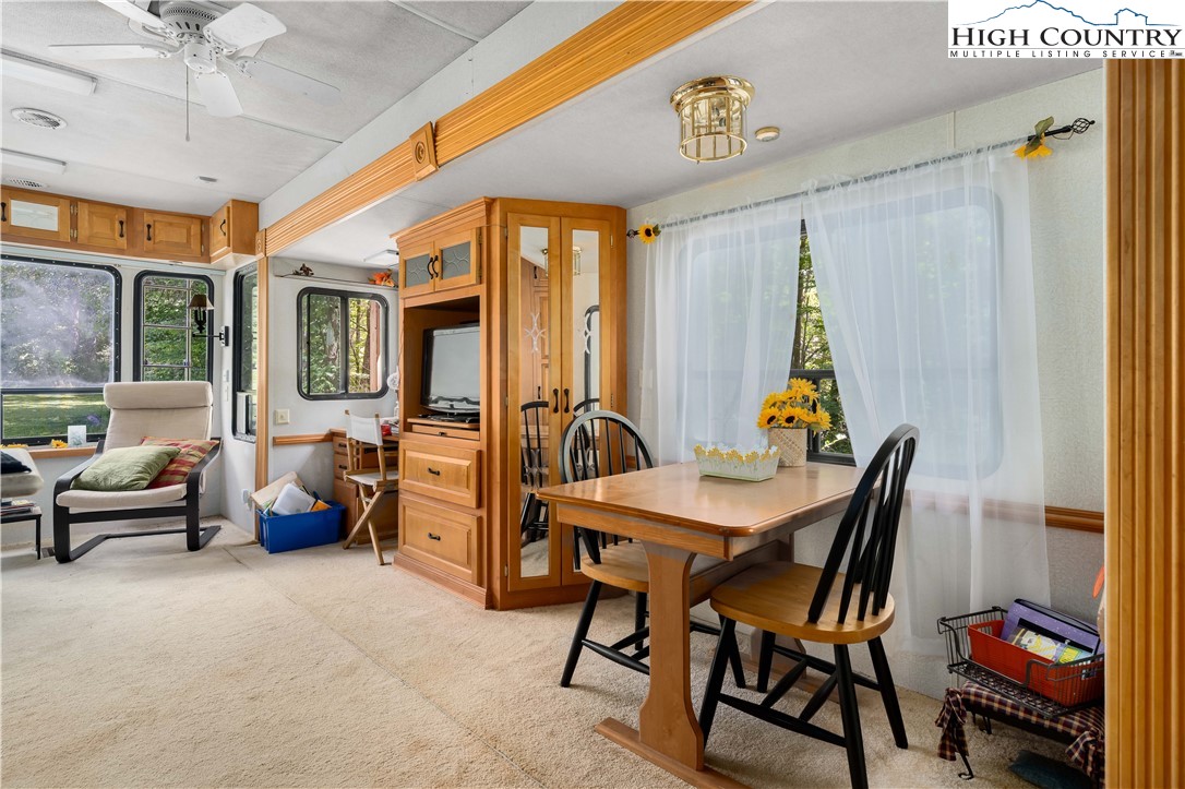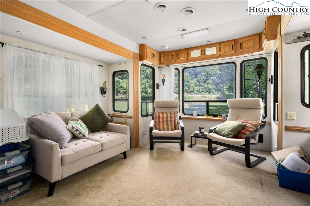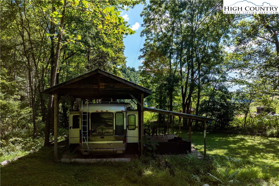 Gorgeous tract with enormous level yard, 5th wheel travel trailer with cover and covered deck, and the Big Dry Run creek in the back! Wonderful setting just minutes from the pristine waters of Watauga Lake or an easy drive back into Mountain City for any necessities. Property has a 2 bedroom septic per the Seller and currently utilizes a rainwater collection system for the RV, with fiber optic internet available at the road. RV is offered furnished with very few exceptions so that you can close and begin enjoying the cool fall mornings and be nestled amongst the leaves as they change. Yard did not flood during the hurricane giving a peace of mind moving forward. Come and explore one of the most beautiful areas of the High Country region and enjoy the property as it is or build your dream home in the gorgeous setting! Come and see today!