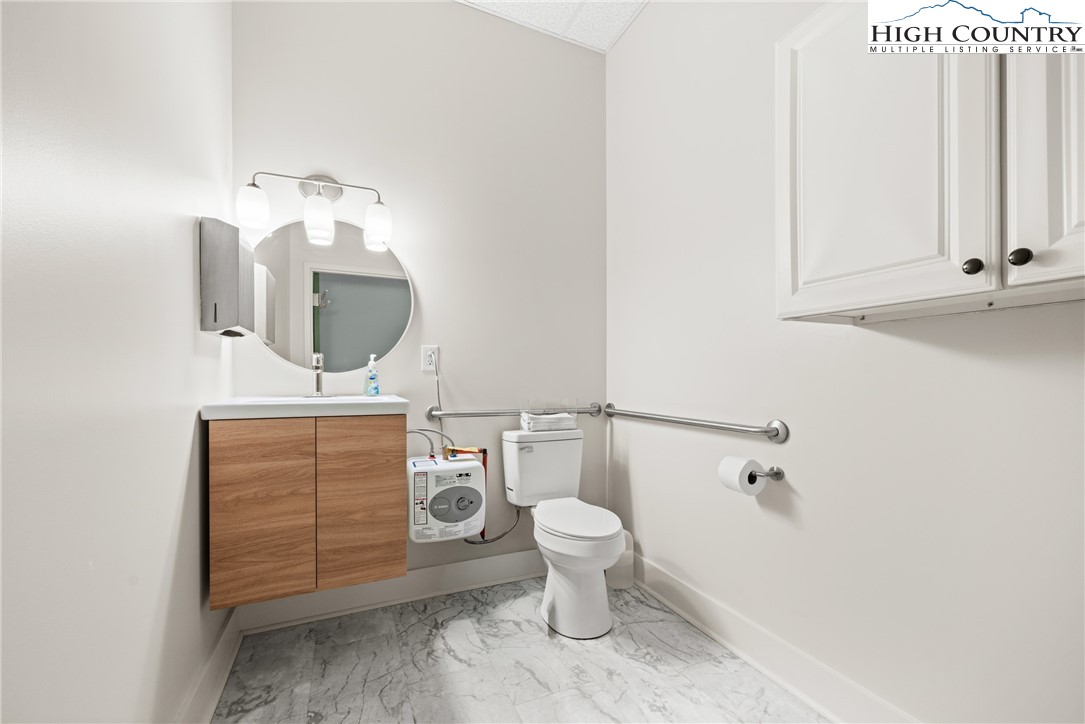 Conveniently located within one mile of Watauga Medical Center, offering strong visibility and accessibility in a desirable professional area. Beautifully updated office condominium with excellent layout and flexibility for a variety of medical or professional uses. The space includes eleven separate exam rooms or offices, four of which are currently plumbed. Features include a large waiting area, reception space, comfortable break room, kitchen, three bathrooms and ample parking to accommodate staff and clients. Covered entry with no steps, multiple storage areas and a lead-lined radiation room for additional versatility. This property is also offered for lease. See MLS #258840 for full details.