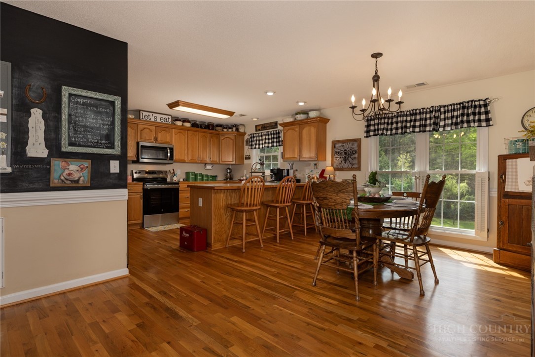 If you’ve been looking for a place that feels like home the moment you pull in, this is it. Tucked on 2.36+/- acres with multiple creeks, this inviting ranch home offers a peaceful setting where you can slow down & enjoy the simple things like morning coffee on the back deck, evenings by the fire, & space to spread out inside & out. Step inside to vaulted ceilings, gorgeous hardwood floors, & arched doorways that add character. The living room centers around a beautiful gas log fireplace, great for gathering w/ family & friends. The kitchen comes ready with stainless steel appliances that convey. Downstairs, the finished basement offers a cozy family/rec room w/ gas logs & two additional rooms that could be used as a 4th & 5th bedroom, office, or flex space. Outside, there’s room to roam, play, & relax w/ a playset & tree swing in place. Located in a well-established neighborhood where homes rarely come available, this is the kind of place you’ll want to stay.