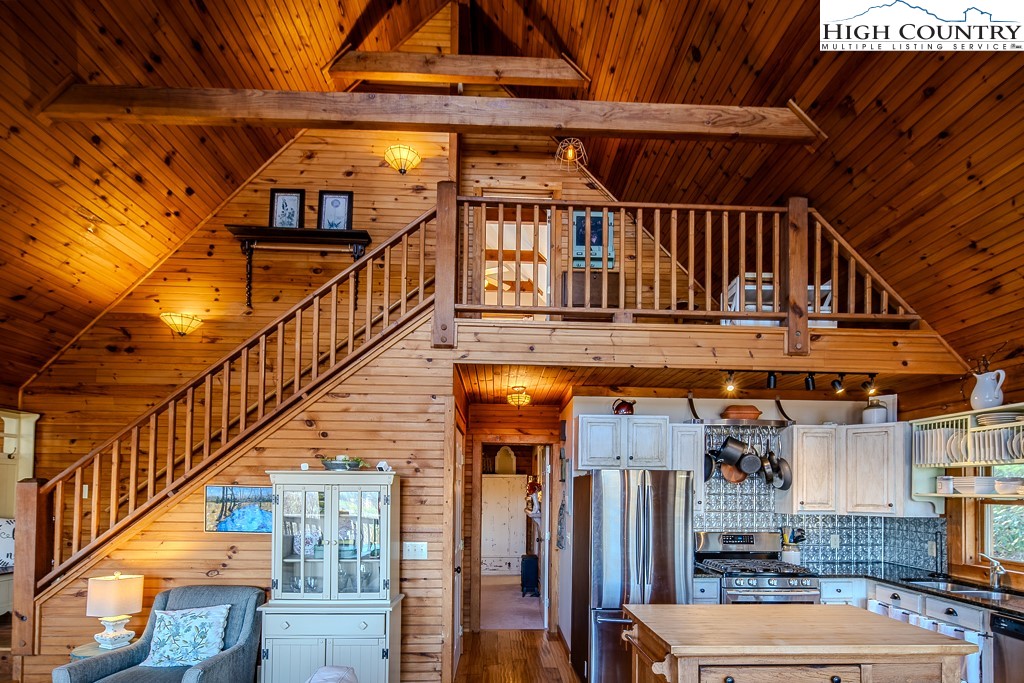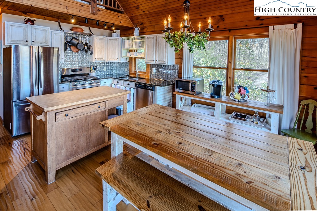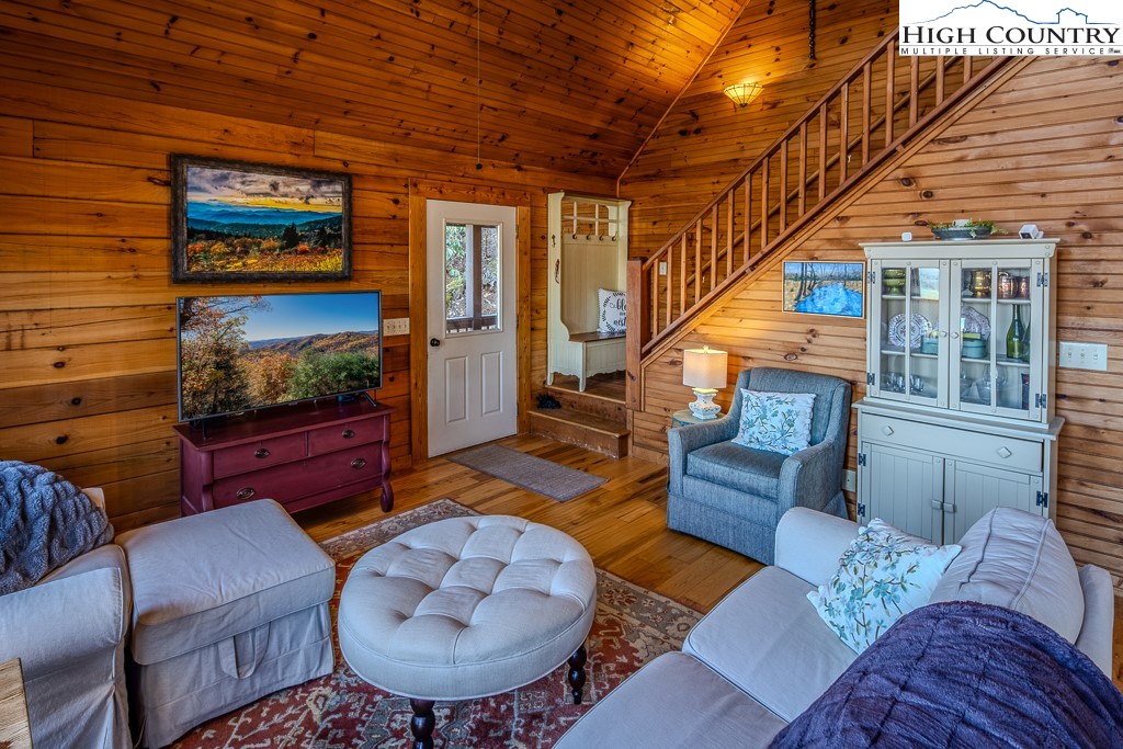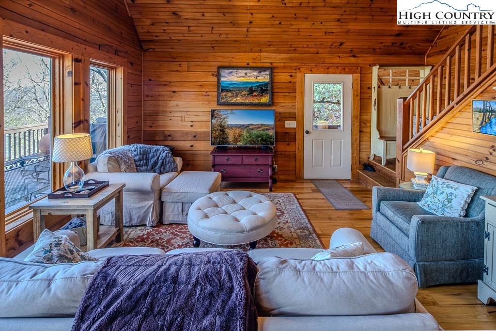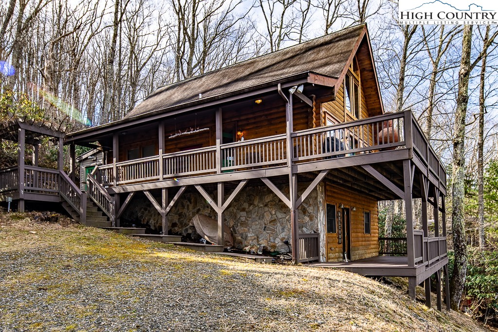 This log home offers stunning layered mountain views of Howard’s Knob, Elk Knob, and Rich Mountain. Conveniently located only five minutes or less to Boone Golf Course, Blue Ridge Parkway, the Greenway, Samaritan’s Purse, and the hospital. The great room features hickory wood floors and a dramatic wall of floor-to-ceiling windows showcasing long-range mountain views, with access to covered and uncovered decks. The home has 2 bedrooms, 3 baths, an additional room that is currently used as a bedroom, and a lower-level family/media room. An outbuilding with electricity provides added flexibility for storage or workspace. Offered fully furnished with both short- and long-term rentals allowed, this property is ideal as a primary home, mountain getaway, or investment opportunity. Road maintenance agreement is $500 annually.