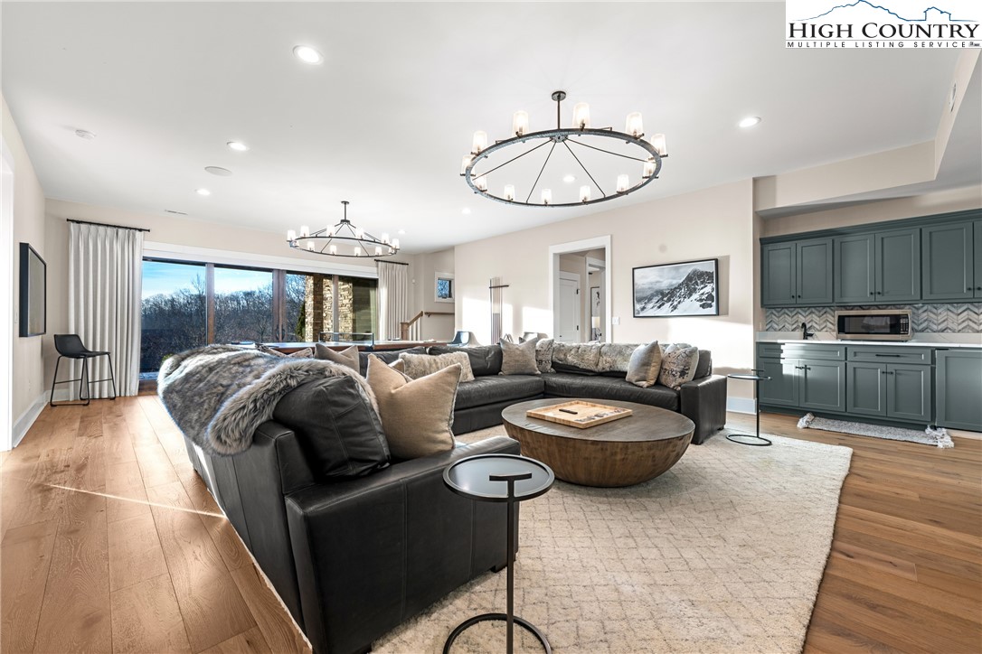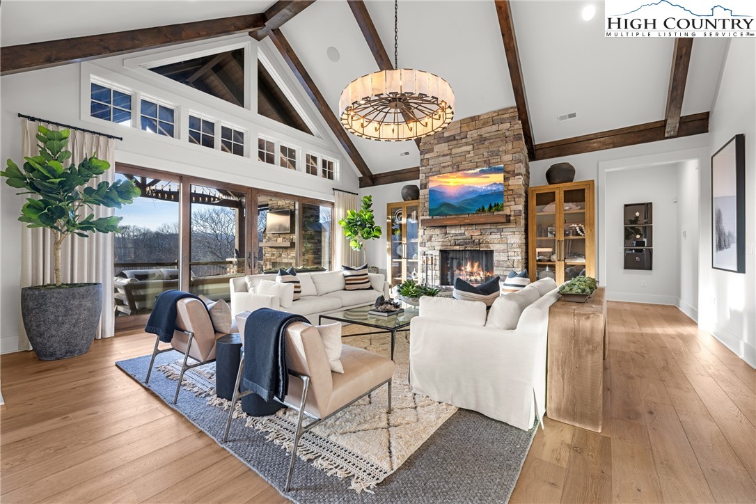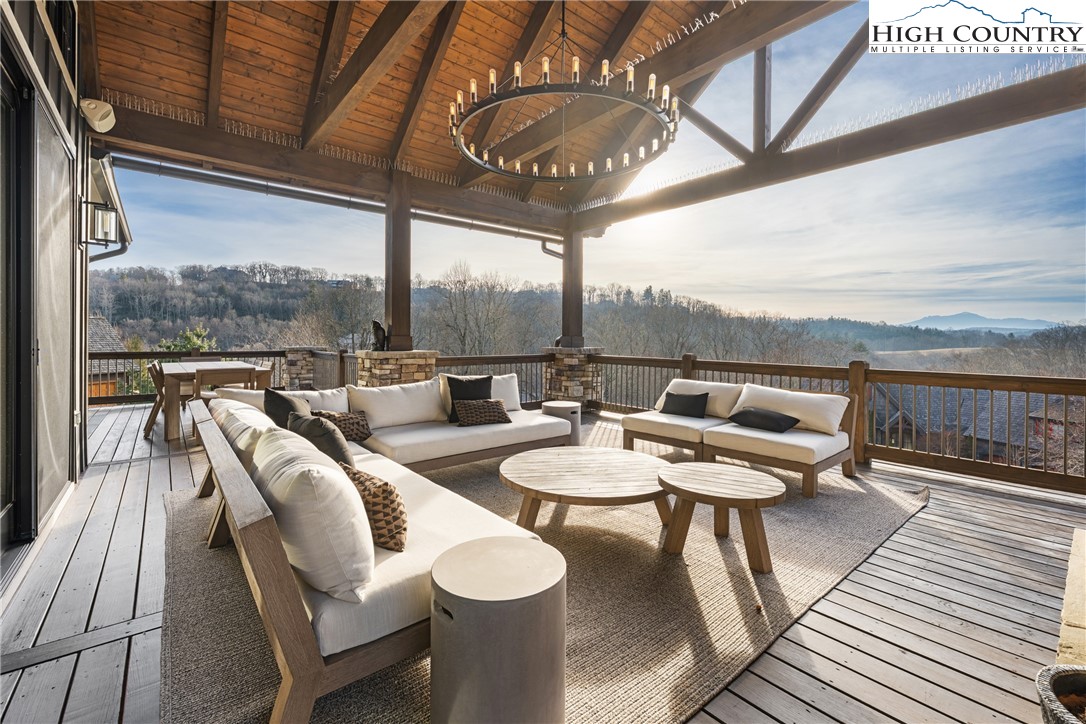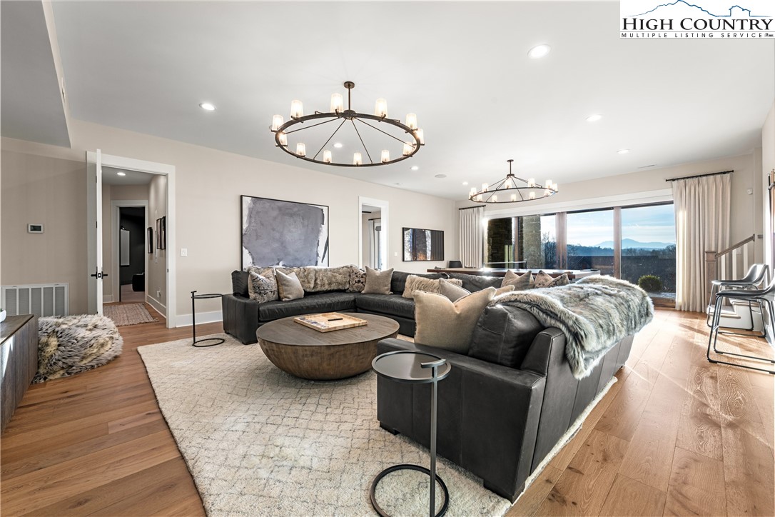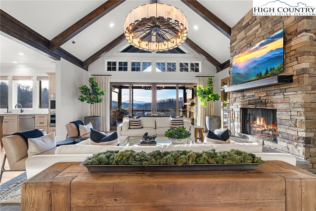 This exceptional mountain estate is a masterful blend of exquisite craftsmanship, thoughtful design, and breathtaking natural beauty. Offering sweeping, long-range layered views of iconic Grandfather Mountain, the home is set within a prestigious gated community and provides a rare opportunity to experience refined mountain living in a private, serene setting. From the moment you arrive, the quality and attention to detail are unmistakable. Custom finishes and architectural touches are showcased throughout the residence, creating a timeless yet inviting atmosphere. Comfort is paramount, with a three-zoned HVAC system allowing for individualized climate control throughout the home, heated bathroom floors enhancing everyday luxury, and a security system providing peace of mind whether the home is enjoyed full-time or as a mountain retreat. At the heart of the home, the chef’s kitchen is both stunning and highly functional, featuring top-of-the-line Wolf and Sub-Zero appliances, a beautifully appointed wine bar, and an oversized pantry designed to accommodate entertaining on any scale. The adjoining great room is flooded with natural light and anchored by an impressive stone fireplace, serving as a dramatic focal point and a welcoming gathering space for family and guests. The primary suite is a true sanctuary, thoughtfully designed to maximize comfort and privacy. It features a spa-like bathroom with premium finishes, radiant heated floors, and an impressive walk-in closet reminiscent of a luxury resort. Additional living spaces include a private office ideal for working from home, an oversized family room complete with a wet bar for relaxed entertaining, and a custom-designed 10 person bunk room for perfect for hosting multiple guests. Entertainment takes center stage in the spectacular private home theater, designed to comfortably seat 10 or more viewers. This immersive space offers a cinematic experience ideal for movie nights, sporting events, or gatherings with friends and family, bringing a true luxury theater experience into the home. Seamless indoor-outdoor living is achieved through expansive decks offering both covered and open-air spaces, thoughtfully designed to capture the stunning mountain vistas. The outdoor living areas feature a fireplace and television, creating an inviting setting for year-round enjoyment—from crisp mountain mornings to cozy evenings under the stars. For pet lovers, the property also includes a gated dog run, providing a secure and convenient space for pets to enjoy the outdoors. Completing the property is an oversized heated two-car garage and furnishings by Restoration Hardware, carefully selected to complement the home’s elevated aesthetic. Every element of this remarkable residence has been curated to deliver an uncompromising mountain lifestyle defined by luxury, comfort, and unforgettable views.