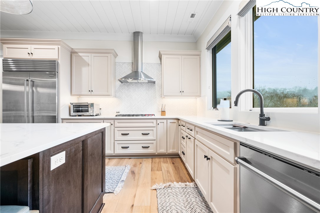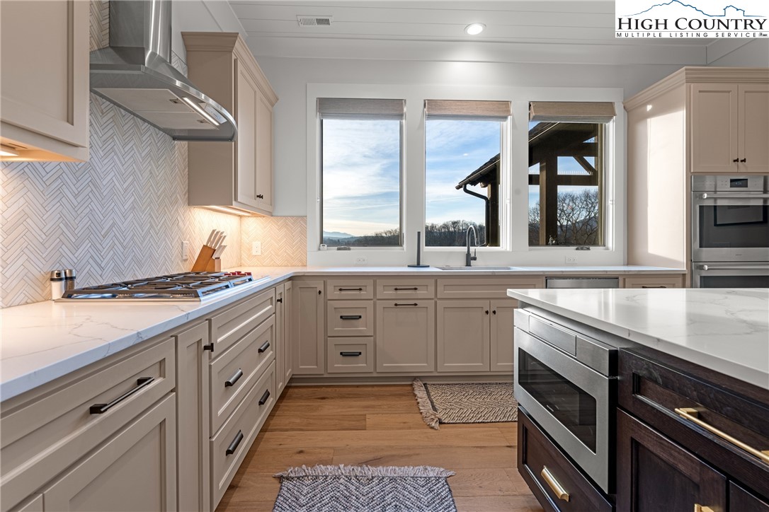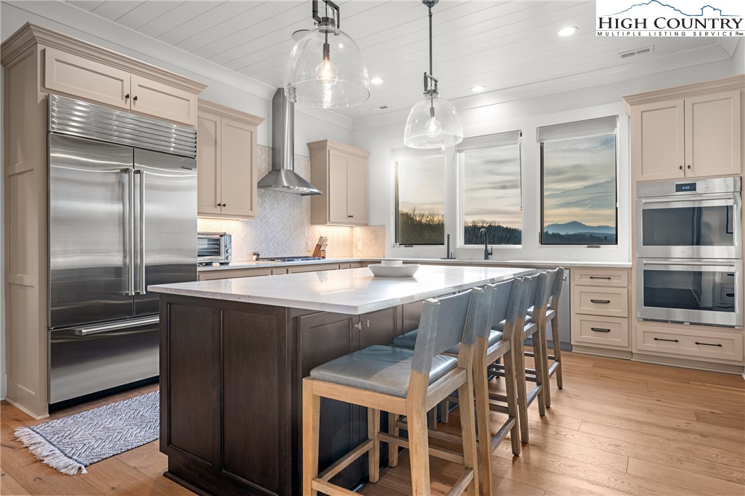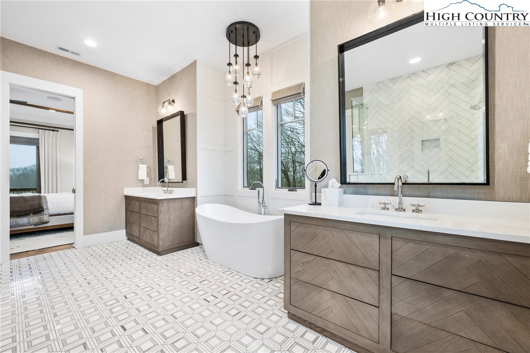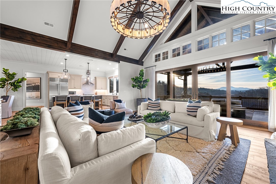 This exceptional mountain estate is a masterful blend of exquisite craftsmanship, thoughtful design, and breathtaking natural beauty. Offering sweeping, long-range layered views of iconic Grandfather Mountain, the home is set within a prestigious gated community and provides a rare opportunity to experience refined mountain living in a private, serene setting. From the moment you arrive, the quality and attention to detail are unmistakable. Custom finishes and architectural touches are showcased throughout the residence, creating a timeless yet inviting atmosphere. Comfort is paramount, with a three-zoned HVAC system allowing for individualized climate control throughout the home, heated bathroom floors enhancing everyday luxury, and a security system providing peace of mind whether the home is enjoyed full-time or as a mountain retreat. At the heart of the home, the chef’s kitchen is both stunning and highly functional, featuring top-of-the-line Wolf and Sub-Zero appliances, a beautifully appointed wine bar, and an oversized pantry designed to accommodate entertaining on any scale. The adjoining great room is flooded with natural light and anchored by an impressive stone fireplace, serving as a dramatic focal point and a welcoming gathering space for family and guests. The primary suite is a true sanctuary, thoughtfully designed to maximize comfort and privacy. It features a spa-like bathroom with premium finishes, radiant heated floors, and an impressive walk-in closet reminiscent of a luxury resort. Additional living spaces include a private office ideal for working from home, an oversized family room complete with a wet bar for relaxed entertaining, and a custom-designed 10 person bunk room for perfect for hosting multiple guests. Entertainment takes center stage in the spectacular private home theater, designed to comfortably seat 10 or more viewers. This immersive space offers a cinematic experience ideal for movie nights, sporting events, or gatherings with friends and family, bringing a true luxury theater experience into the home. Seamless indoor-outdoor living is achieved through expansive decks offering both covered and open-air spaces, thoughtfully designed to capture the stunning mountain vistas. The outdoor living areas feature a fireplace and television, creating an inviting setting for year-round enjoyment—from crisp mountain mornings to cozy evenings under the stars. For pet lovers, the property also includes a gated dog run, providing a secure and convenient space for pets to enjoy the outdoors. Completing the property is an oversized heated two-car garage and furnishings by Restoration Hardware, carefully selected to complement the home’s elevated aesthetic. Every element of this remarkable residence has been curated to deliver an uncompromising mountain lifestyle defined by luxury, comfort, and unforgettable views.