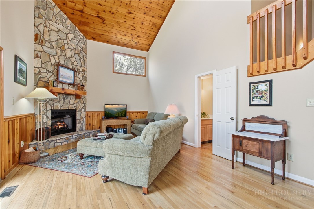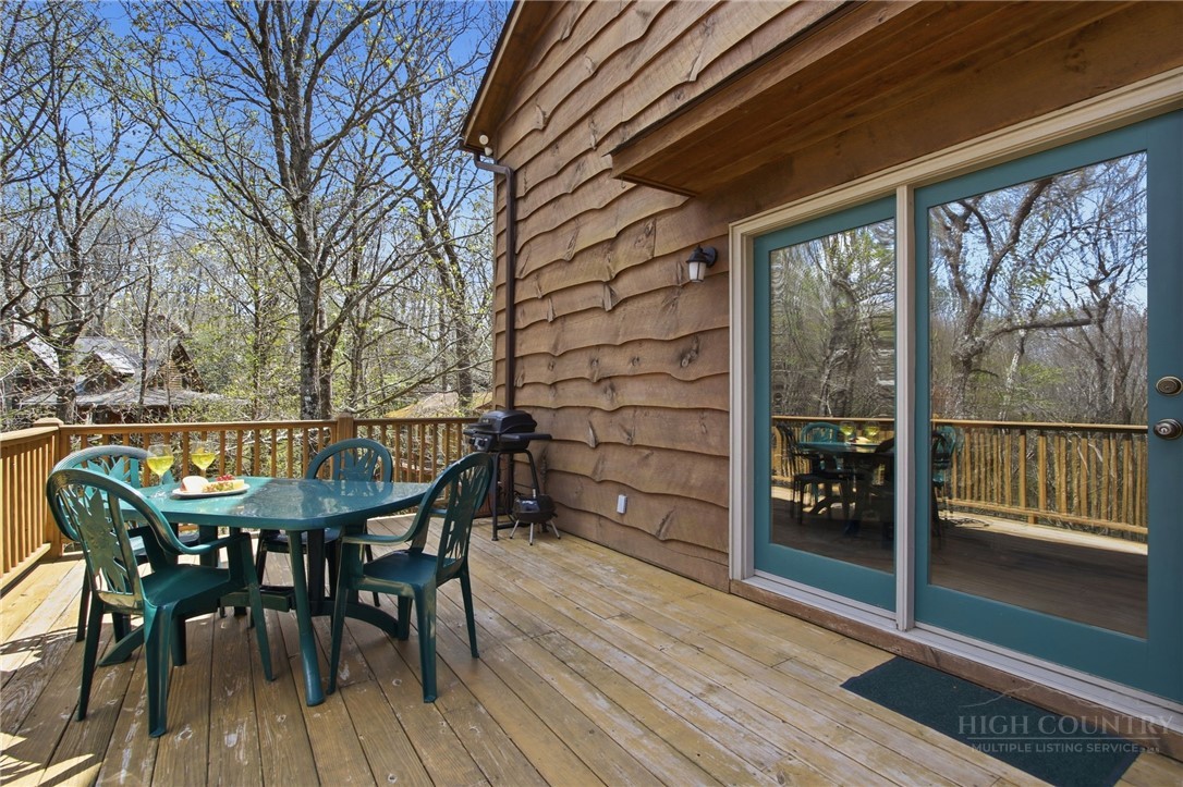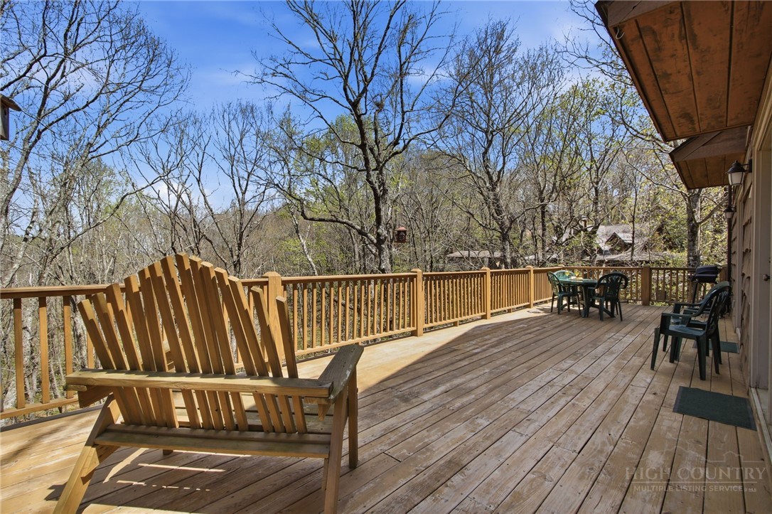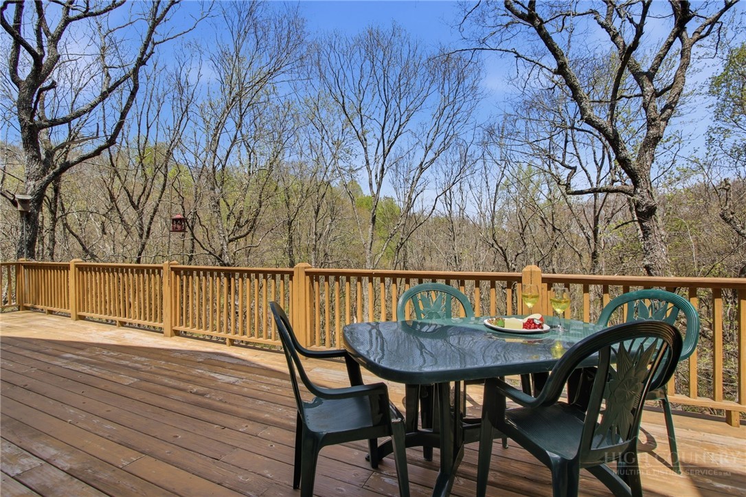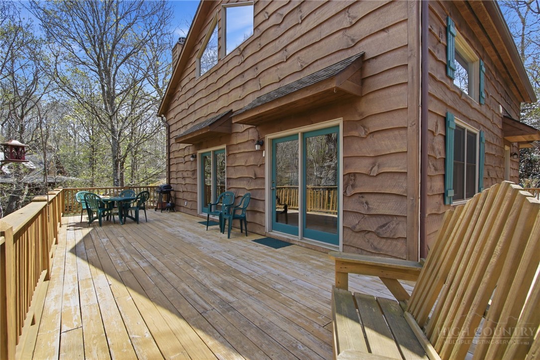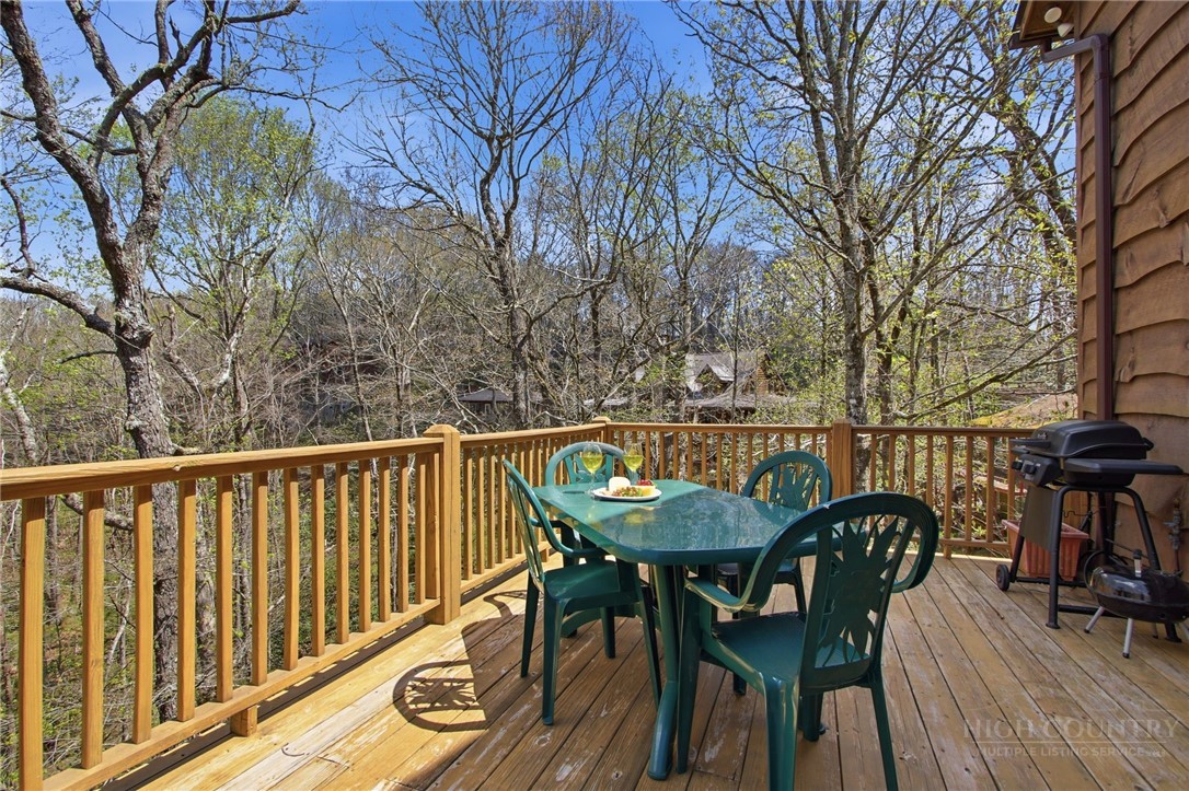 Tucked into a peaceful wooded setting, 626 Galax Circle in Blowing Rock offers the perfect blend of mountain charm and convenience. This inviting 2-bedroom, 2.5-bath home features a warm and welcoming living room with vaulted ceilings, rich wood floors, and a beautiful stone fireplace with gas logs—ideal for cozy evenings year-round. The spacious deck extends your living area outdoors, perfect for relaxing or entertaining among the trees. A partially finished basement adds valuable flexibility, offering space for storage, a workshop, or a game room—whatever suits your mountain lifestyle. With short-term rentals permitted, this property also presents an excellent investment opportunity. Located just around the corner from Appalachian Ski Resort, this home is perfectly suited as a full-time residence, weekend escape, or income-producing getaway. Offered furnished as shown and ready to enjoy! Home is been sold as is with no consessions being made by the seller. Do you hear the mountains calling?