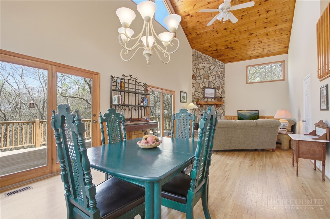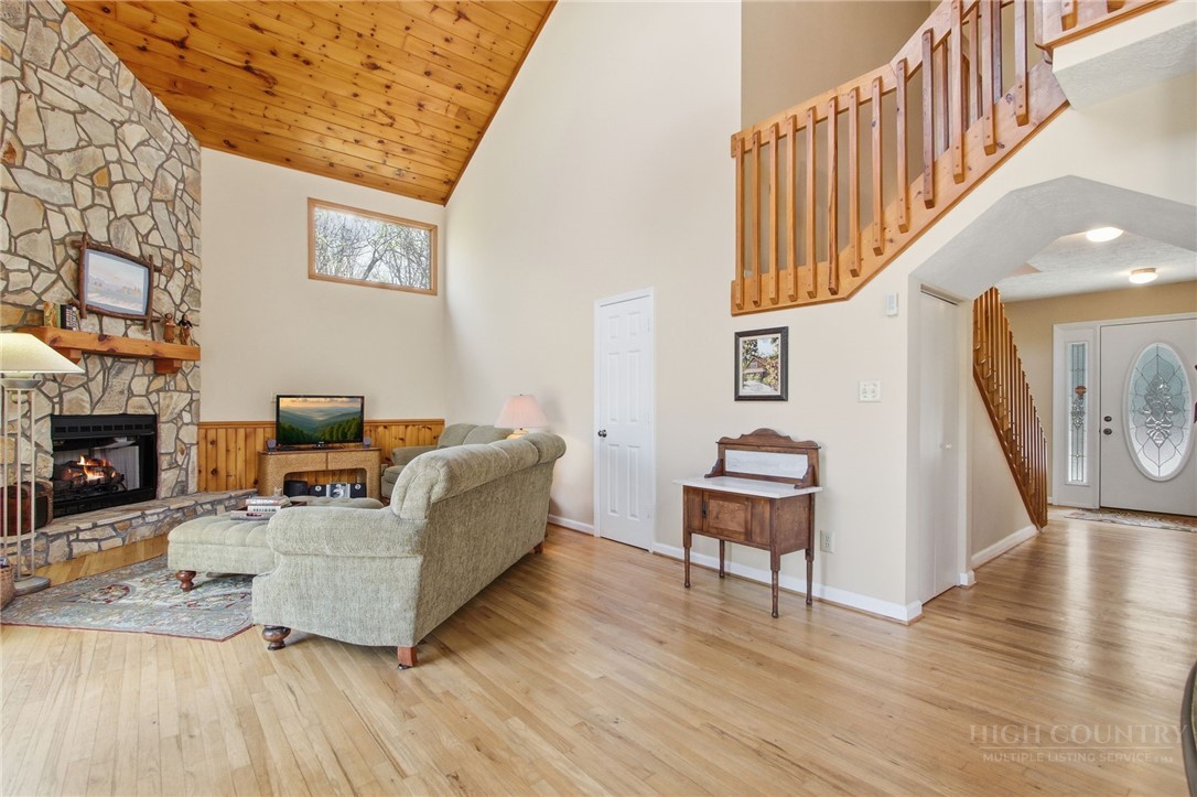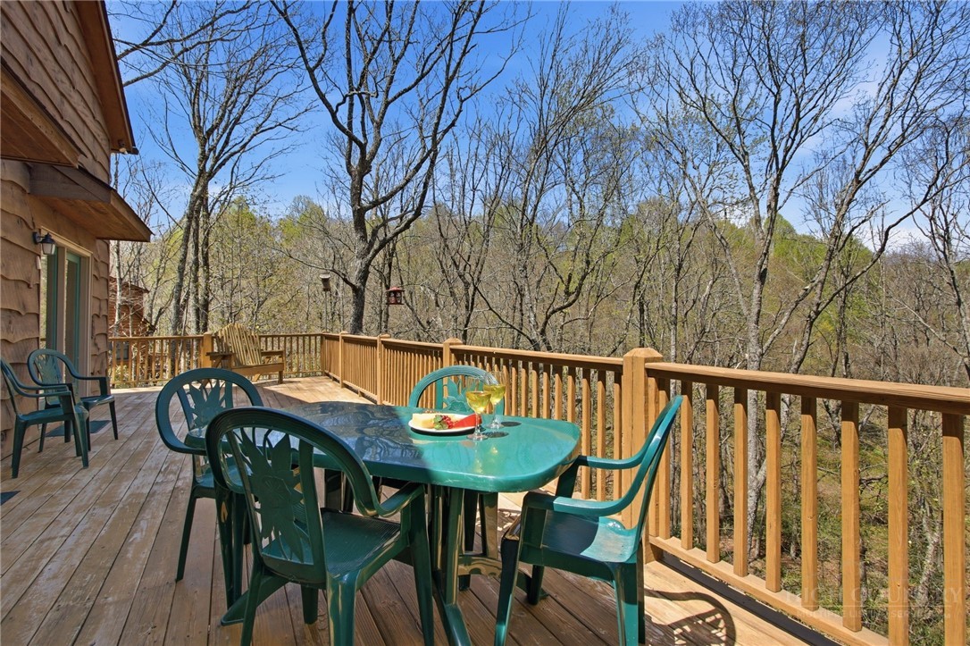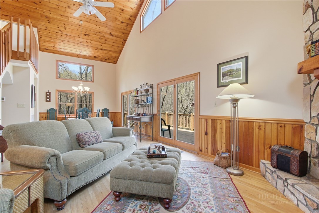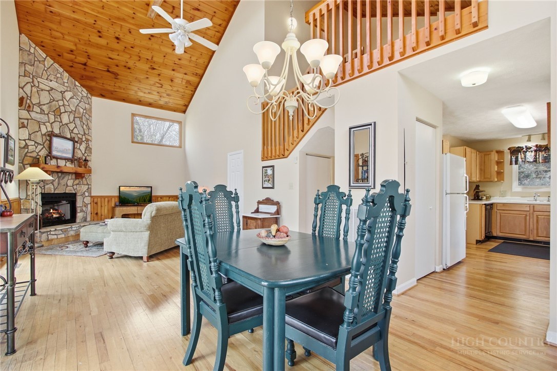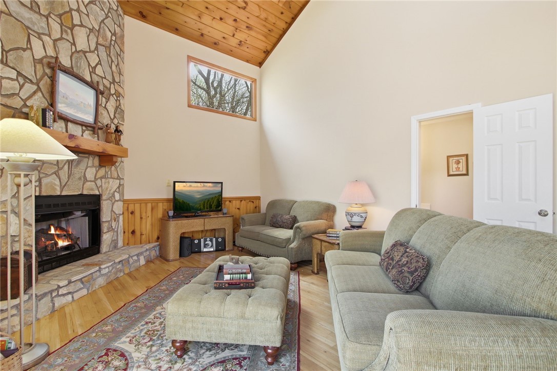 Tucked into a peaceful wooded setting, 626 Galax Circle in Blowing Rock offers the perfect blend of mountain charm and convenience. This inviting 2-bedroom, 2.5-bath home features a warm and welcoming living room with vaulted ceilings, rich wood floors, and a beautiful stone fireplace with gas logs—ideal for cozy evenings year-round. The spacious deck extends your living area outdoors, perfect for relaxing or entertaining among the trees. A partially finished basement adds valuable flexibility, offering space for storage, a workshop, or a game room—whatever suits your mountain lifestyle. With short-term rentals permitted, this property also presents an excellent investment opportunity. Located just around the corner from Appalachian Ski Resort, this home is perfectly suited as a full-time residence, weekend escape, or income-producing getaway. Offered furnished as shown and ready to enjoy! Home is been sold as is with no consessions being made by the seller. Do you hear the mountains calling?