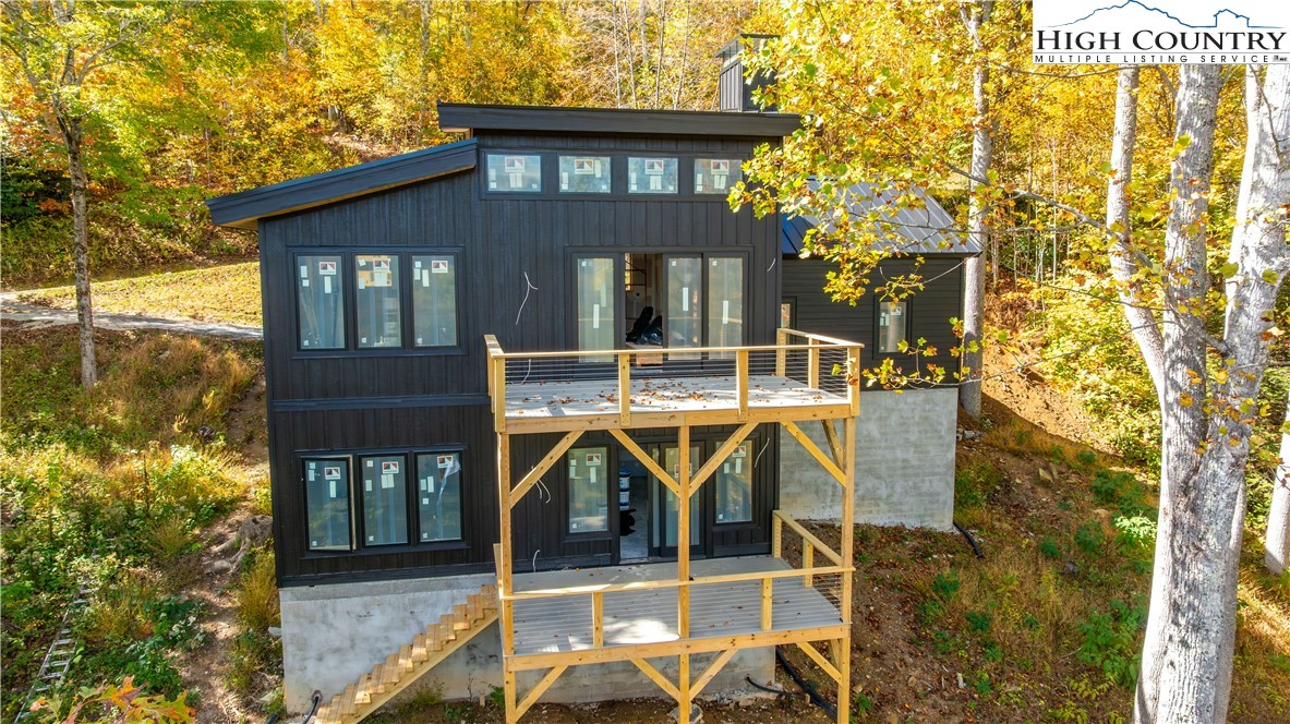 Brand new mountain modern home with stunning views. Welcome to Linville Oaks, a gated community where luxury meets the natural beauty of the Blue Ridge Mountains. This brand new construction home-Moss Creek Opus floorplan-boasts breathtaking long range views of Grandfather Mountain and surrounding peaks, offering a true mountain escape with all the comforts of modern living. Designed in mountain modern style, this home features grand main floor entry that opens into a spacious great room with vaulted ceilings and expansive windows to showcase the views. Designer kitchen is outfitted with premier Zline appliances, custom cabinetry, and high-end finishes, great for entertaining or enjoying a quiet evening in. The main level also includes a luxurious primary suite with en suite bath and laundry, expansive porch to enjoy the moderate temperatures, and two car garage. Downstairs enjoy a second living area, two additional bedrooms, a full bath, a dedicated home office, and a secondary porch to enjoy the views from every room. Floor plan layout would work wonderfully for larger family or guests. Set within the boutique community of Linville Oaks, just 12 homesites, this community offers peace, privacy, and proximity. Just a short walk from the charming old Hampton store, known for live music and local events, and only 10 minutes from downtown Banner Elk, and 5 minutes from Lowe’s Foods. Whether you’re looking for a serene full-time residence or the perfect mountain getaway, this home offers an unbeatable combination of location, luxury, and lifestyle. Final inspection to be obtained.