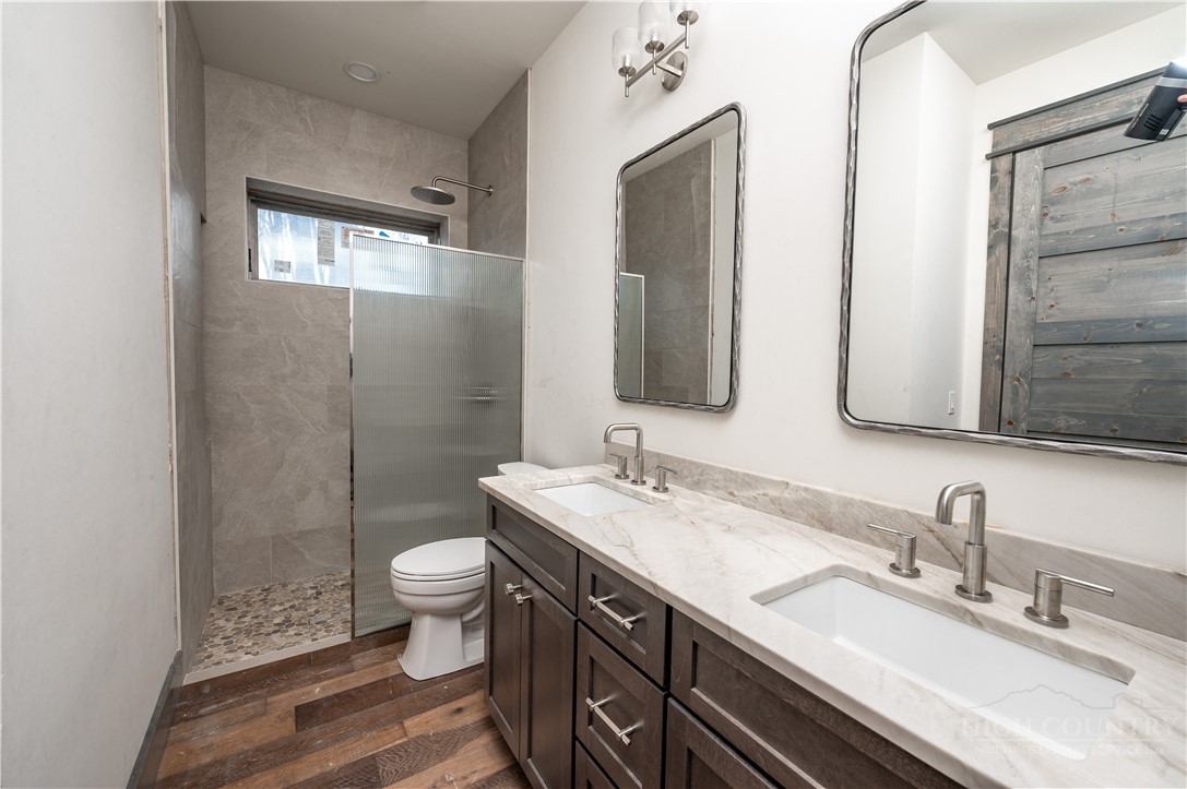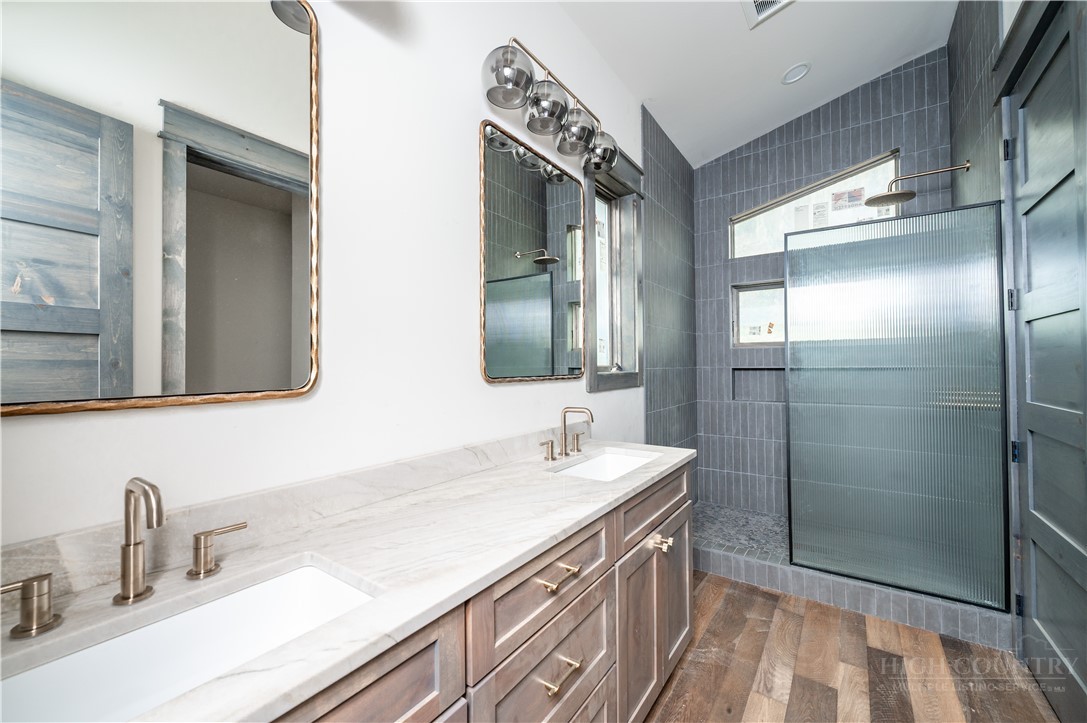 Welcome to Linville Oaks, a gated community where luxury meets the natural beauty of the Blue Ridge Mountains. This brand new construction home-Moss Creek Opus floorplan-boasts breathtaking long range views of Grandfather Mountain and surrounding peaks, offering a true mountain escape with all the comforts of modern living. Designed in mountain modern style, this home features grand main floor entry that opens into a spacious great room with vaulted ceilings and expansive windows to showcase the views. Designer kitchen is outfitted with premier Zline appliances, custom cabinetry, and high-end finishes, great for entertaining or enjoying a quiet evening in. The main level also includes a luxurious primary suite with en suite bath and laundry, expansive porch to enjoy the moderate temperatures, and two car garage. Downstairs enjoy a second living area, two additional bedrooms, a full bath, a dedicated home office, and a secondary porch to enjoy the views from every room. Floor plan layout would work wonderfully for larger family or guests. Set within the boutique community of Linville Oaks, just 12 homesites, this community offers peace, privacy, and proximity. Just a short walk from the charming old Hampton store, known for live music and local events, and only 10 minutes from downtown Banner Elk, and 5 minutes from Lowe’s Foods. Whether you’re looking for a serene full-time residence or the perfect mountain getaway, this home offers an unbeatable combination of location, luxury, and lifestyle. Final inspection to be obtained.