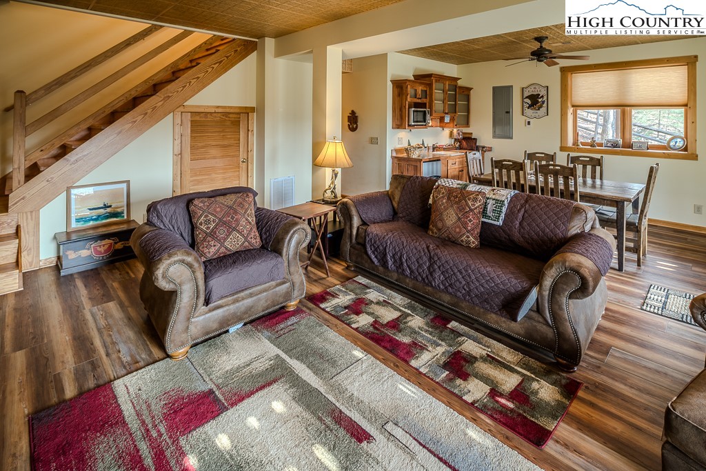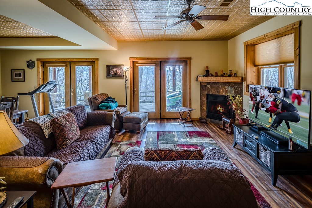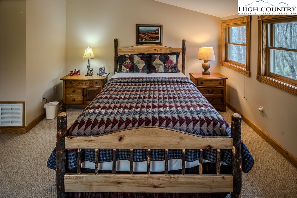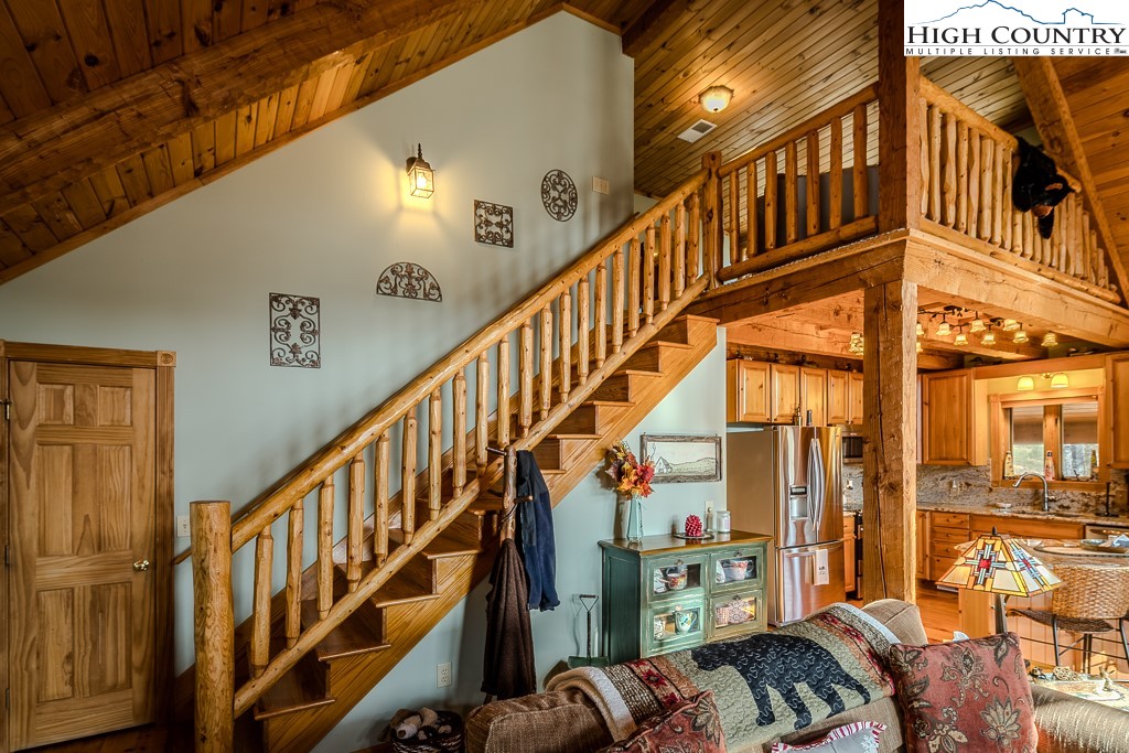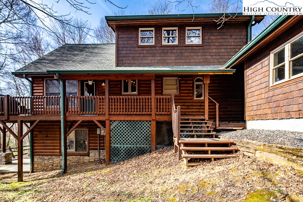 Discover a stunning and well-maintained log cabin located near the Blue Ridge Parkway, set on 2.66 acres in the beautiful mountains of West Jefferson. This remarkable home features three bedrooms and three full bathrooms. Inside, you’ll find wide plank wood floors, a tongue and groove vaulted ceiling with exposed beams, a stacked stone fireplace, and ample natural light. The open kitchen seamlessly connects to the living room and dining area, allowing you to enjoy stunning mountain views from indoors. Alternatively, you can step outside to one of the multiple deck spaces for outdoor relaxation. The main level offers a primary bedroom with an en-suite full bath, as well as a convenient laundry area. Upstairs, there is an open loft overlooking the living room, along with a second bedroom and another full bathroom. The fully finished basement includes radiant heated floors, a spacious sitting area, a wet bar, a third bedroom, a full bath, and a second fireplace. Additional features include an oversized two-car garage with a full loft for extra storage and a partially fenced yard. Don’t miss the chance to see it today!