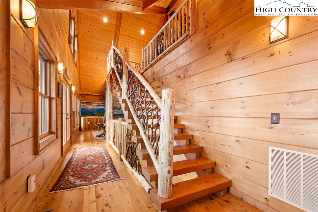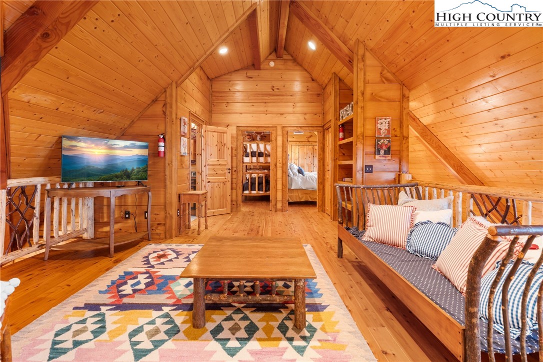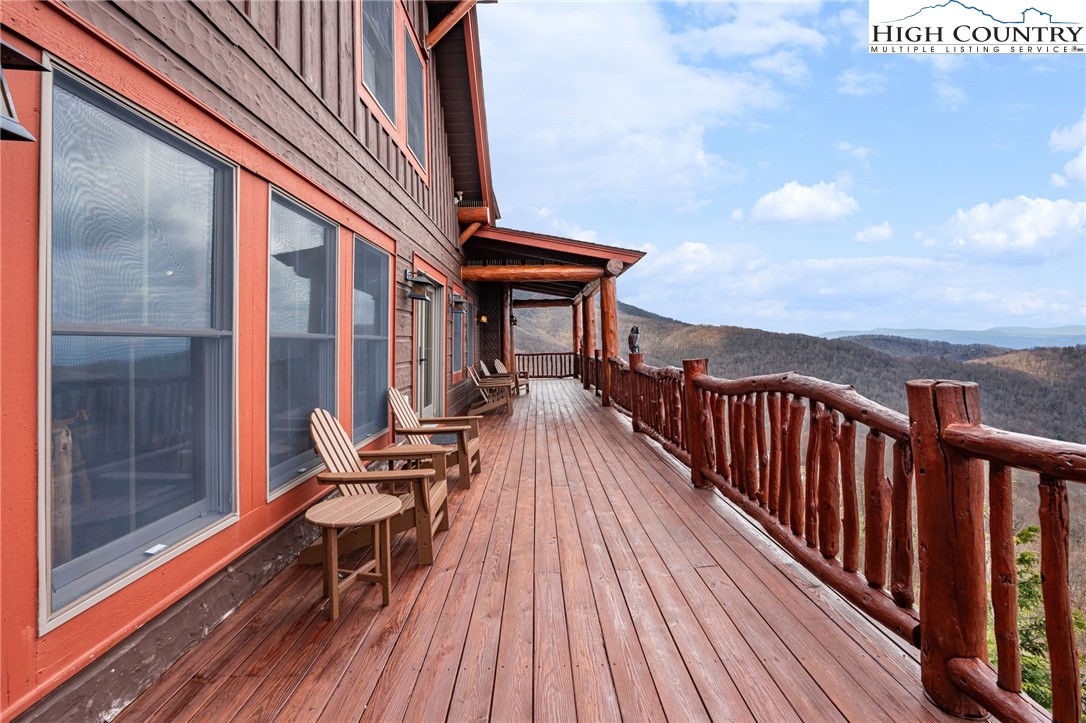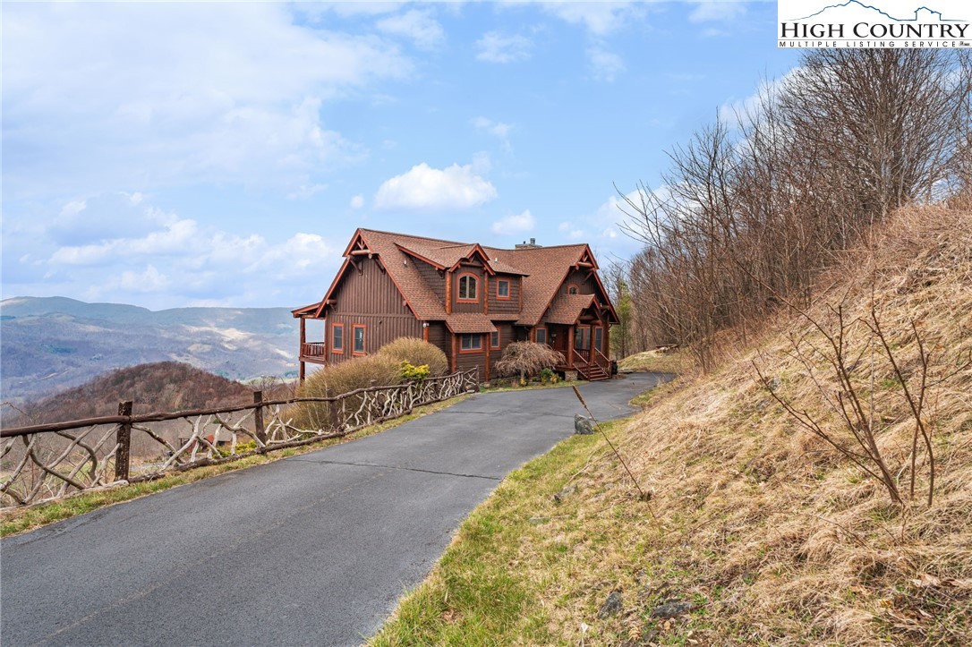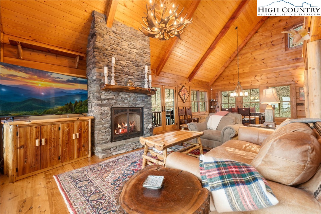 Tucked high above the Blue Ridge, where the mornings feel a little quieter and the views stretch on forever, this luxury log cabin in Sunalei Preserve offers a rare kind of mountain living. Set on over 3 private acres, the home is designed to take full advantage of its breathtaking 180-degree long-range layered views. From the moment you step into the vaulted great room with its floor-to-ceiling stone fireplace, your eyes are drawn straight to the horizon. Just beyond, a covered porch with its own wood-burning fireplace becomes the perfect place to unwind—whether it’s coffee at sunrise or a glass of wine as the mountains fade into dusk. The main level offers effortless living with a spacious kitchen, primary suite with sweeping views, and a spa-like bath featuring a soaking tub and walk-in tile shower. Upstairs, a loft and two guest bedrooms create a welcoming space for guests, while the lower level is built for gathering.. complete with a second stone fireplace, game room, additional bedroom and bath, and flexible spaces for fitness or hobbies. Follow the private path down the mountain to a tucked-away outbuilding, once used as an observatory, now ready to become your studio, retreat, or quiet escape under the stars. Life in Sunalei Preserve is about more than just a home... it’s about space, elevation, and connection to nature. With nearly 1,000 acres of protected land, elevations reaching over 5,500 feet, and direct access to Elk Knob State Park, this gated community offers unmatched privacy just 20 minutes from Boone. Residents gather at High Mountain Camp (one of the highest elevation clubhouses in the eastern US) to take in unforgettable sunsets, share time with friends, and enjoy the kind of mountain lifestyle that simply can’t be replicated. With no short-term rentals permitted, Sunalei remains a true retreat. Quiet, preserved, and intentionally different.