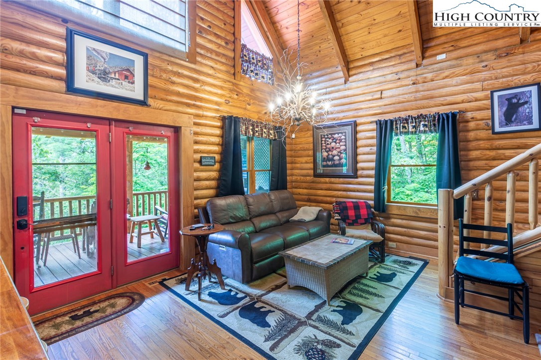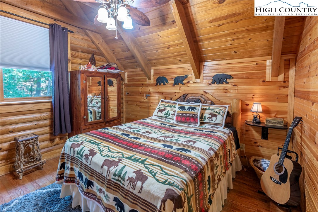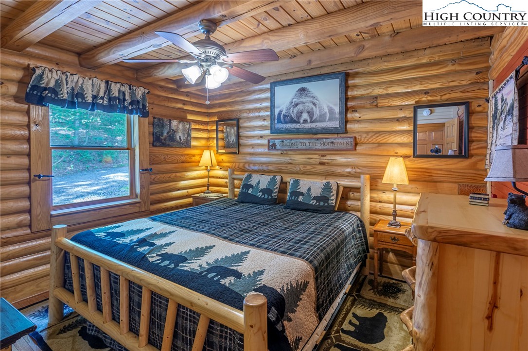 Back on market with more acreage, over 600' of creek frontage & Ashe Lake commons access!!! Privacy and seclusion overlooking South Beaver Creek which creates a wonderful ambiance around this log cabin located in the Ashe Lake community. This is a well built 3 bedrooms 3 full bath home with over 5+ acres of enjoyment, relaxation and solitude. Fish or play in the stream below or take a stroll on the lake with the included peddle boat. Fish, kayak, canoe on the lake or on the nearby New River. Located just minutes from West Jefferson and all of the downtown charm, breweries, and restaurants. Or take a short drive to Boone and Wilkesboro with countless other amenities and eating establishments. Don't forget the endless miles of hiking Grayson Highlands and Mount Rogers that is offered to our North. Hang out by the firepit after a great day in the high country. Come enjoy the sounds of nature and live in a peaceful mountain escape, or tap into investment opportunities with this well-built and maintained home that has been on the vacation rental market for several years and is a proven venture whether short term or long term. Smart controls, gas fireplace, entertainment area, hot tub, creek access, privacy, and nature abound. Call today for more info or rental history.
