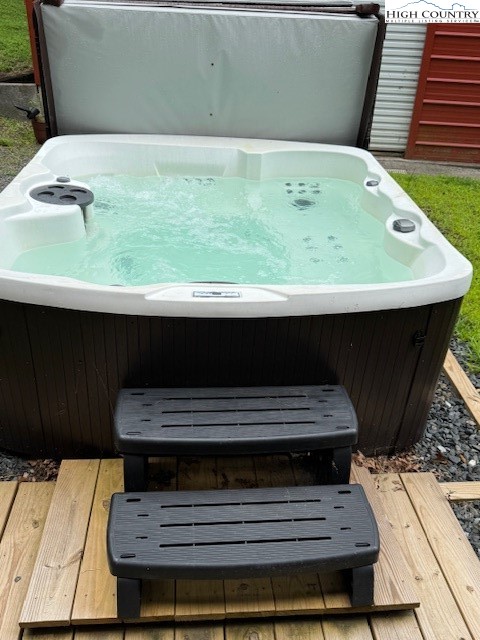 Exterior: Fence, Fire Pit, Hot Tub Spa, Out Buildings, Gravel Driveway