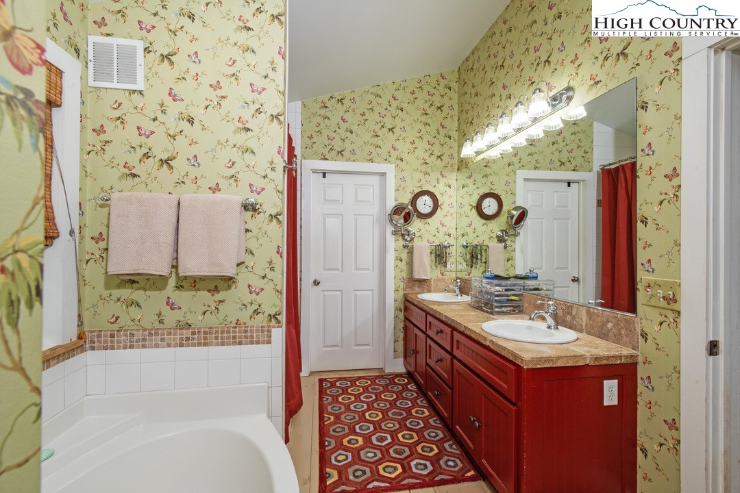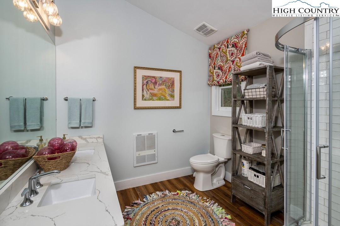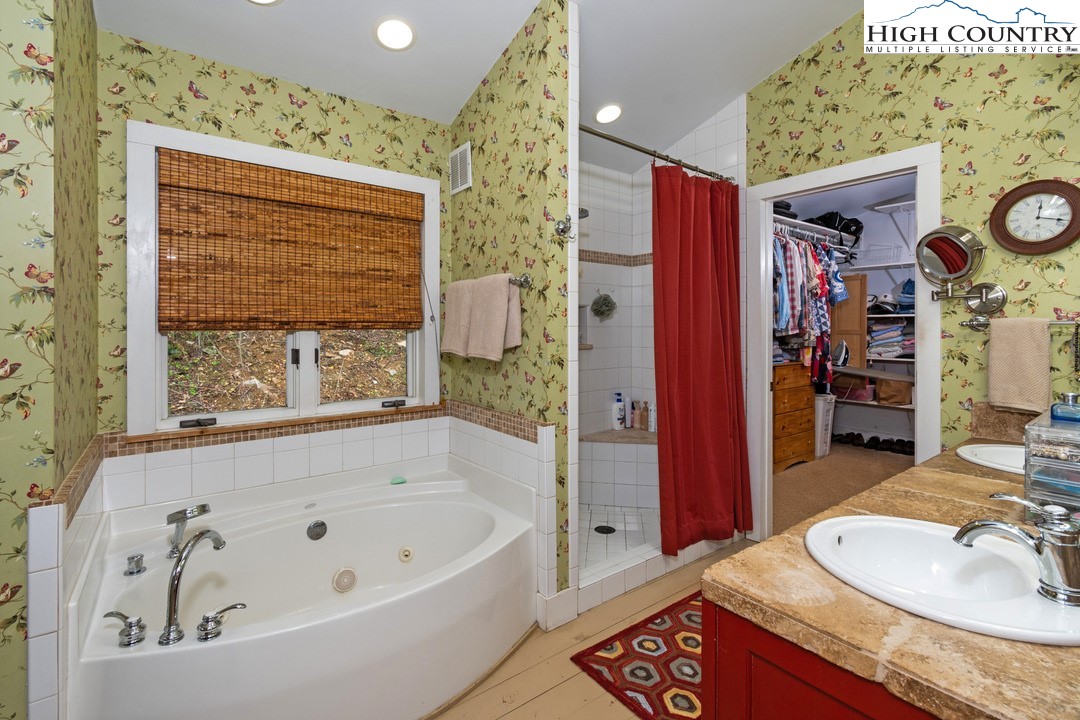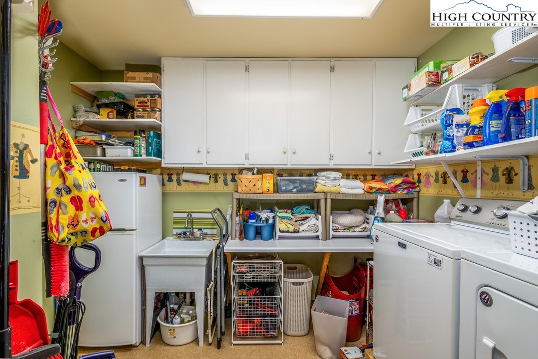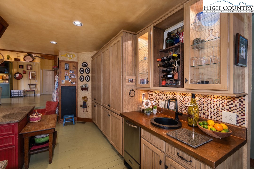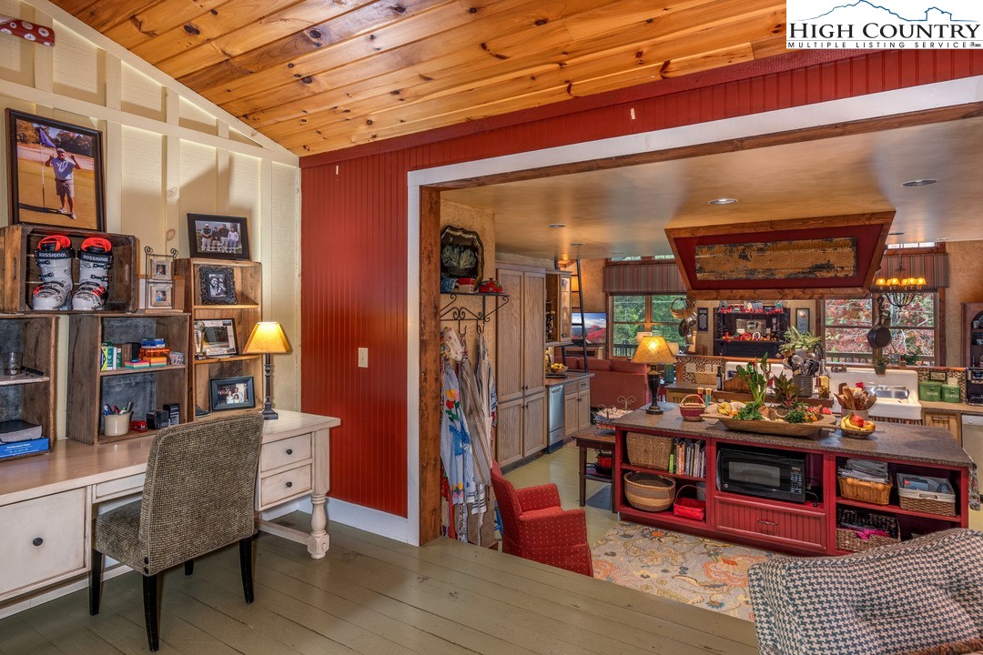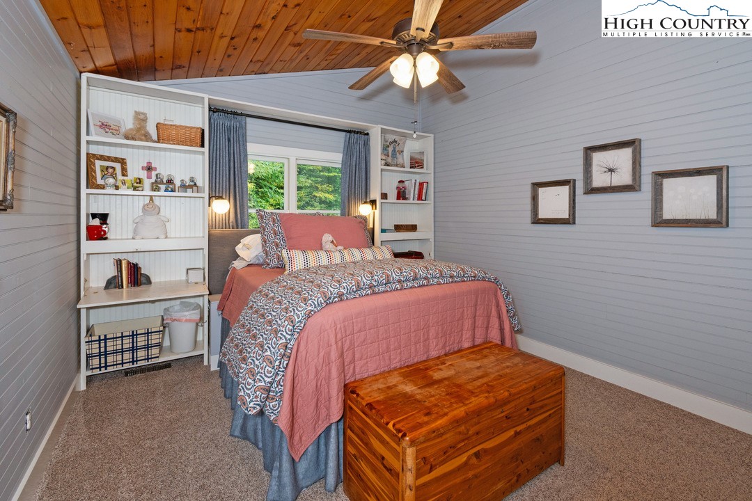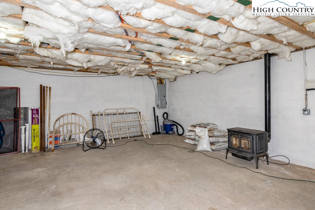 Mountain charm abounds from this stunning retreat! This home exudes rustic elegance with modern conveniences. Step inside to soaring cathedral tongue-and-groove ceilings and stunning painted hardwood floors, that frame the open-concept living area, with a touch of alpine charm. A cozy wood-burning fireplace with a stove insert invites relaxing evenings or gathering with friends and family. Oversized windows flood the room with natural light and offer serene views, enhancing the open, airy feel. Overlooking the main living area is a versatile loft that could be used as a children's retreat, office or additional storage. The heart of the home is the spacious gourmet kitchen, designed to impress even the most discerning chef. Featuring an antique farm sink, a 5-burner gas range with a commercial-grade vented hood crowned with antique molding, and granite counters, this kitchen seamlessly blends function and beauty. You'll love the large center island and the abundance of custom cabinetry offering generous storage. Double ovens make hosting a breeze, while high-end finishes throughout complete the picture. The home includes three spacious bedrooms and 2.5 baths with vaulted ceilings throughout. The primary suite includes jetted tub, step in shower, and spacious walk-in closet with dressers, shelving and built in ironing board. Also features French doors leading to an extensive wrap around deck. All bedrooms have walk in closets. The family room features striking vaulted wood ceilings with double fans and painted wood floors. An unfinished basement provides excellent storage or expansion potential and includes an oversized one-car garage. You'll enjoy beautiful Beech Mountain views from the expansive deck, complete with a relaxing hot tub for unwinding after a long day. This outdoor setting offers ample space for dining, lounging, and soaking in the serene surroundings year-round. Features not to overlook-new heat pump in August 2025, 2022 hot tub, exterior caulked and painted in 2022, underground fence installed keeping pets safe!