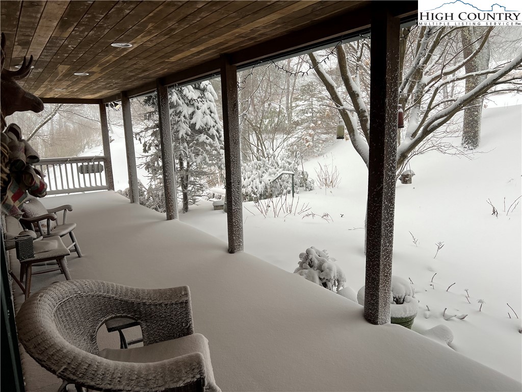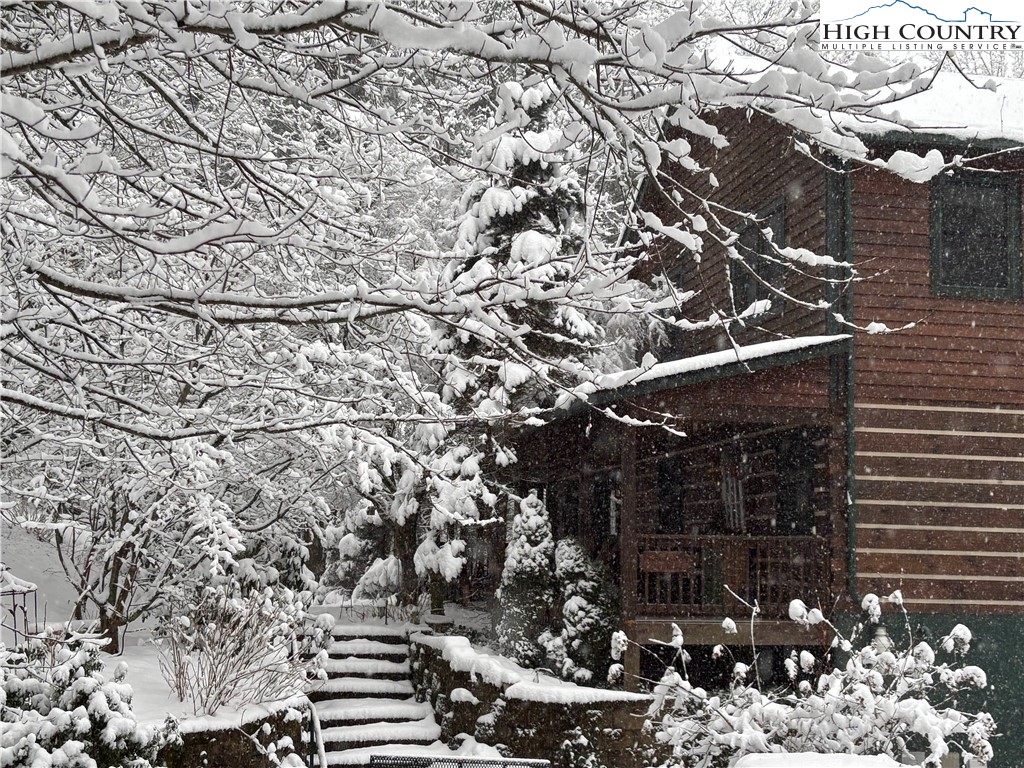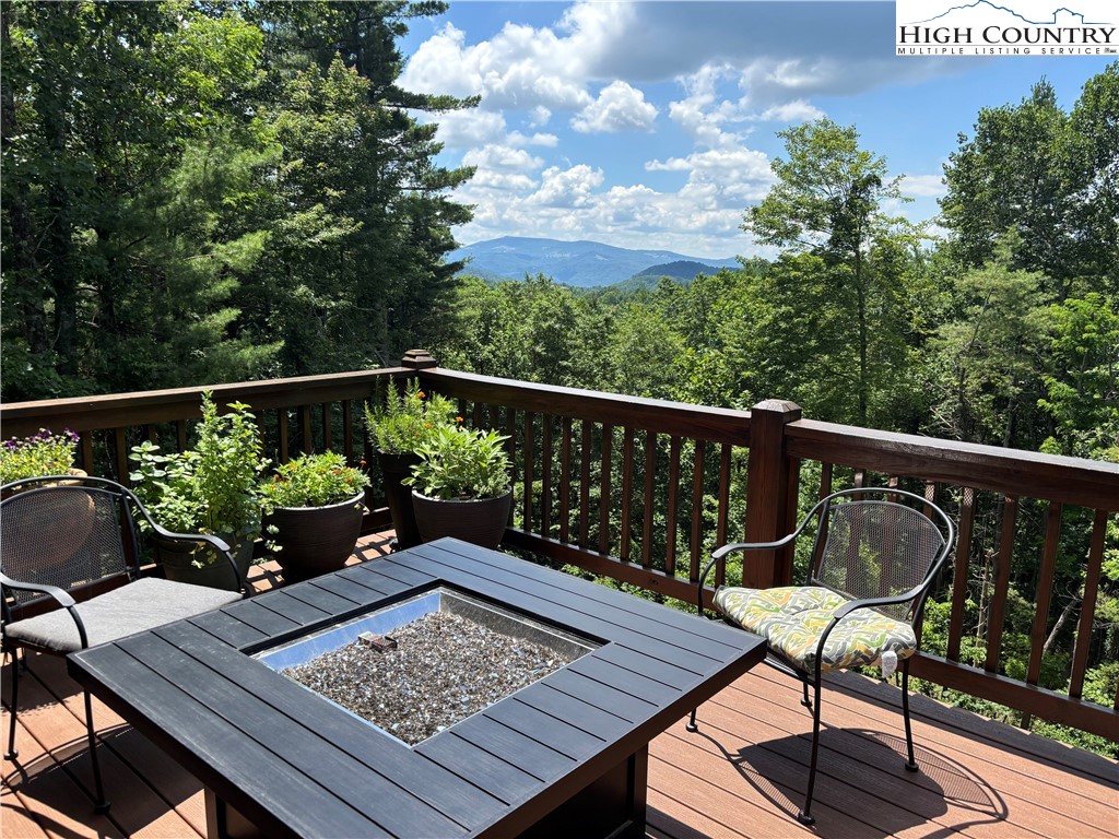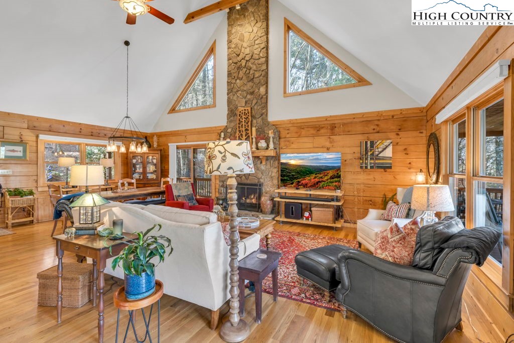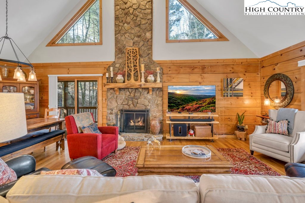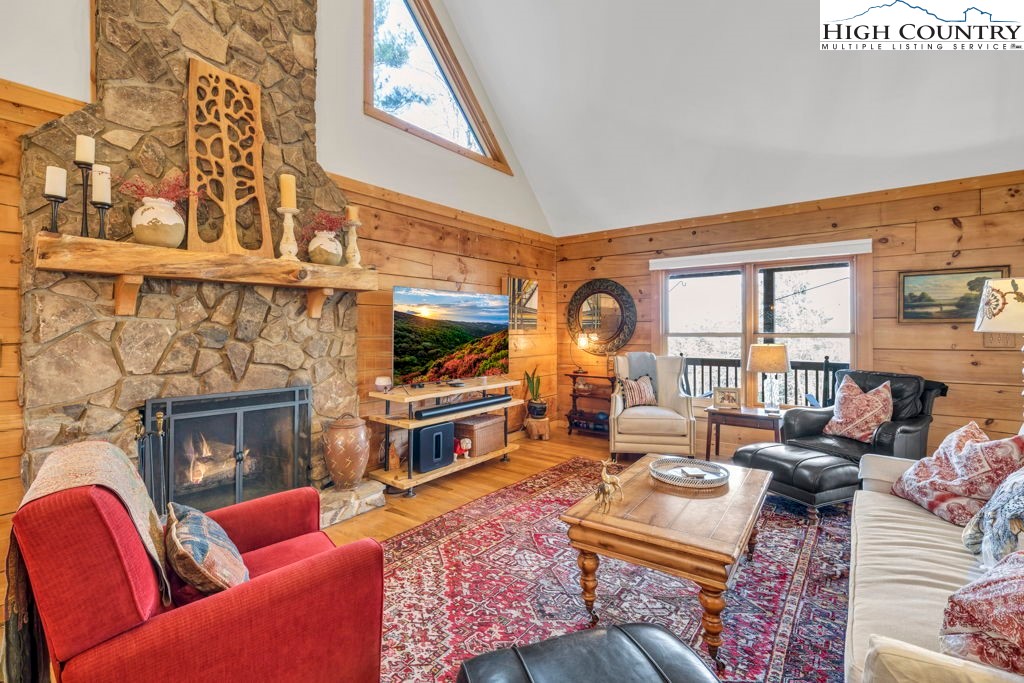 What a find is this three-bedroom, 3.5 bath log home that expertly marries rustic and modern elements creating a warm, elevated, and dynamic home. Though located in close proximity to Appalachian State University and within Kalmia Acres, this home enjoys a private mountain setting with Beech Mountain views, coupled with easy access to all things Boone. How great is that? At the entrance to the home, soaring exposed beams, a floor-to-ceiling stone wood-burning fireplace, and rich hardwood flooring welcome you. The great room is striking yet warm, filled with natural light. The kitchen was thoughtfully updated in 2017 with concrete countertops, a new sink, lighting, and GE appliances. The comfortable and spacious main-level primary suite offers private access to the covered deck and is roomy enough for a reading nook and large furniture. Also on the main level is a convenient half bath and laundry closet. Upstairs, you’ll appreciate a loft that functions perfectly as a second living space, office, and game area, along with two additional bedrooms and a full bath. The lowest level provides over 800 square feet of highly functional, flexible space that the sellers have thoughtfully updated. A third full bath is on this floor, and the balance of space is currently used as extra sleeping space, a den, and a workout area. The possibilities are many. You’ll love the expansive wrap-around TREX deck with over 1,200 square feet of covered and open space accessed right from the main level. It’s the perfect spot to enjoy the mountain views, watch the clouds roll in, or relax with a good book, with plenty of room for family and friends to spread out. The oversized two-car garage provides excellent additional utility space with a built-in mud sink for convenience and storage. The sellers have kept this home in excellent shape with thoughtful recent updates including freshly resealed logs and fresh interior paint. If you’re looking for that perfect blend of mountain character and modern comfort in a location that can’t be beat, you've found it.