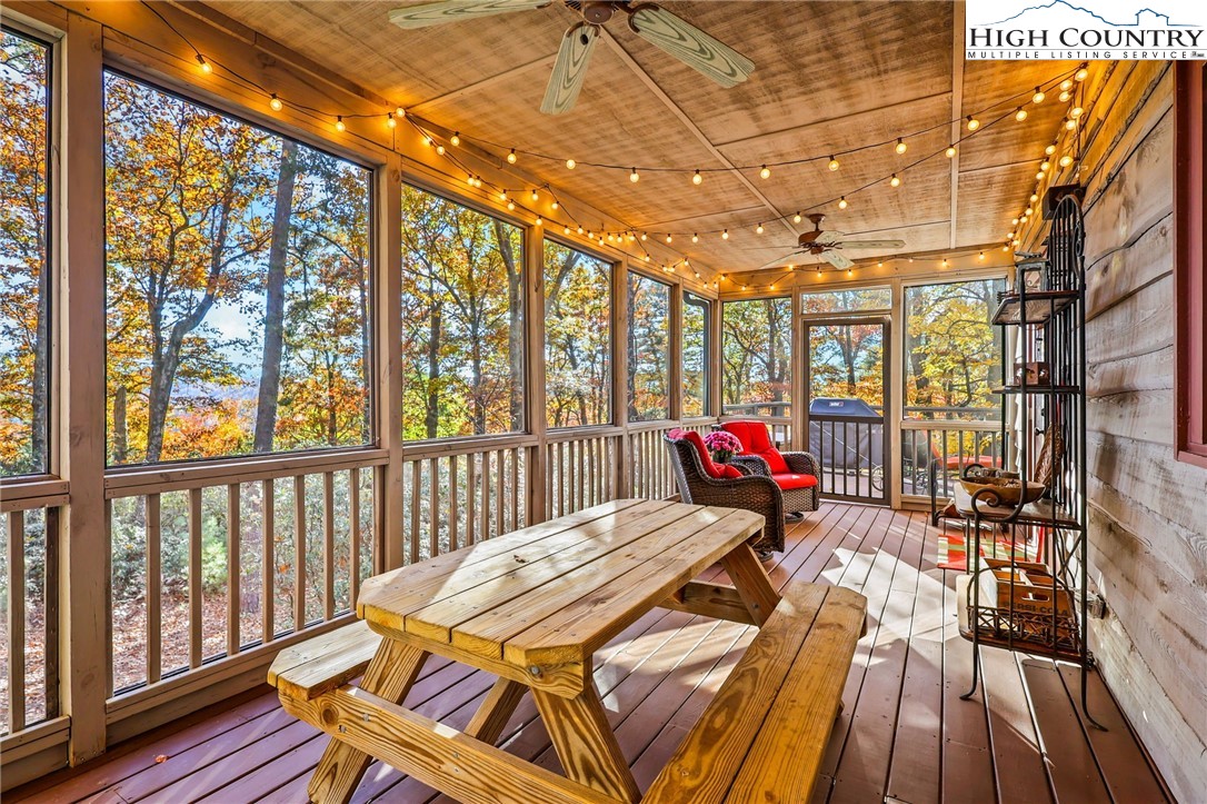 This beautiful 2BR 2BA mountain ridge-top cabin on 10+ acres offers a serene escape defined by nature and tranquility. The setting is ideal for those seeking a haven to unwind, connect with nature, and soak in the beauty of the mountain environment and views. Features include a sunlit open floor plan with a soaring ceiling, a dramatic wood-burning stone fireplace, hickory floors, and pine paneling. The kitchen has GE Profile appliances and a high-top bar. The loft works as a game area, office, or additional sleeping space. The primary suite offers woodland views and its own balcony. A wonderful bonus is the large deck and screened-in porch to enjoy and entertain all year round! The walkout basement/2-car garage has a laundry hookup, is plumbed for 3rd toilet, and can be finished for added living space; it includes a 30-amp RV outlet. This Property has sunrise/sunset views, a flat driveway/yard, and room for a small pasture. Located in the pristine gated community of Leatherwood, amenities include hiking and horseback riding trails, a swimming pool, tennis, pickleball, and trout fishing nearby. Commercial venues outside the entrance include a restaurant, equestrian center, zipline, and campgrounds. Convenient to Boone, Blowing Rock, West Jefferson & Wilkesboro. The furnishings are negotiable, and the seller would consider selling the additional 10-acre contiguous parcel as well. A true gem awaits you. Come see today!