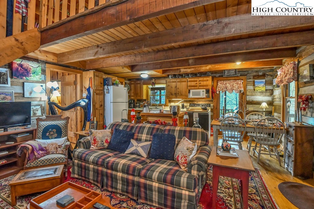 Step into a storybook mountain retreat where rustic elegance meets modern comfort. Nestled in the highly desirable Stonebridge community, this antique-style log home captures the timeless charm of a classic cabin while offering the conveniences today’s buyers crave. From the moment you arrive, the wraparound covered front porch invites you to slow down and savor the peaceful, wooded setting. Inside, the open-concept main level unfolds beautifully—anchored by a dramatic two-story stone fireplace that sets the tone for cozy evenings and unforgettable gatherings. The kitchen is designed for both function and entertaining, featuring a large island, abundant cabinetry, and seamless access to a full-length screened-in back porch, perfect for morning coffee or evening conversations surrounded by mountain air. The main level offers easy living with a spacious primary suite, full bath, and laundry. Upstairs, a generous sleeping loft with its own private bath provides flexible space for guests, family, or a private retreat. Outdoor living shines here, with expansive decking ideal for grilling and entertaining, plus seasonal mountain views that enhance the serene setting. Ideally located between West Jefferson, Boone, and Blowing Rock, Stonebridge delivers the perfect balance of peaceful mountain living and convenient access to dining, shopping, and recreation. Whether you’re searching for a weekend escape, a family getaway, or a forever mountain home, this cabin is a rare opportunity to own true mountain charm. Schedule your private showing today and fall in love with life in the Blue Ridge.