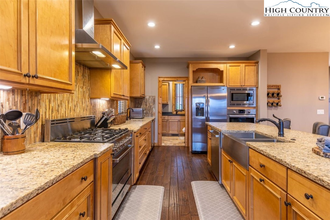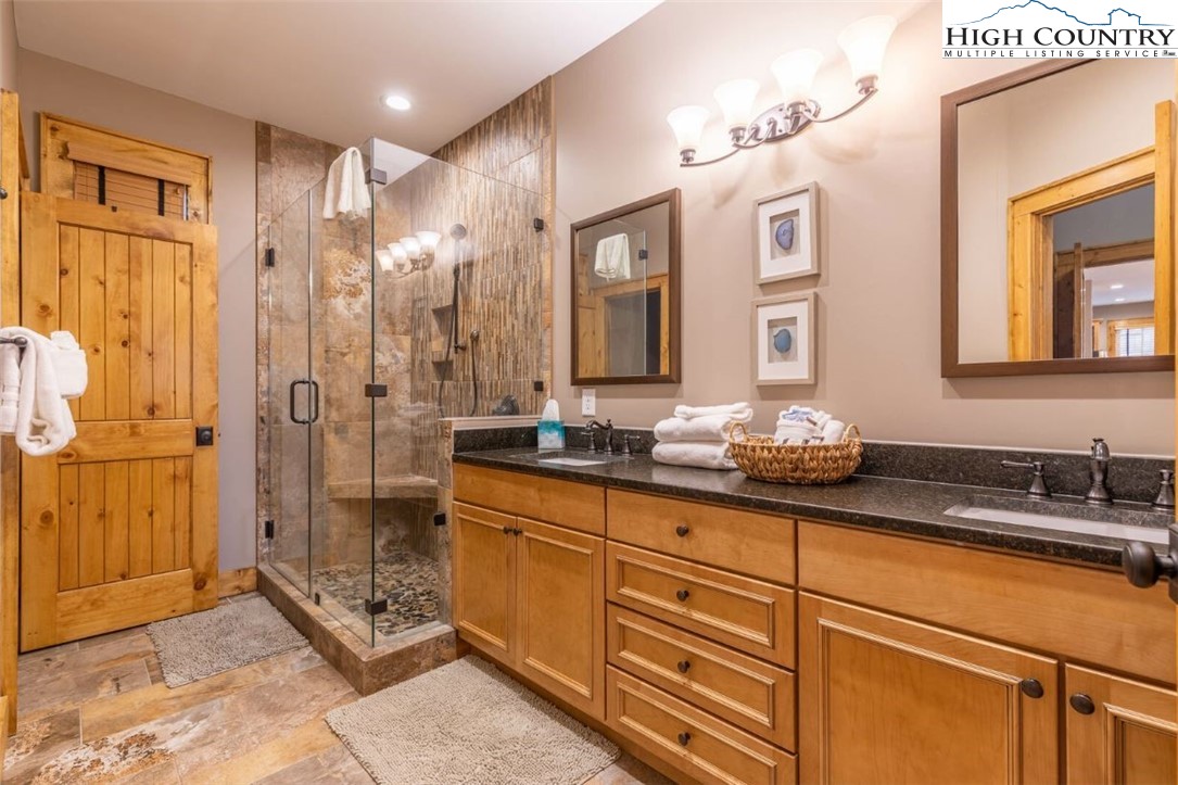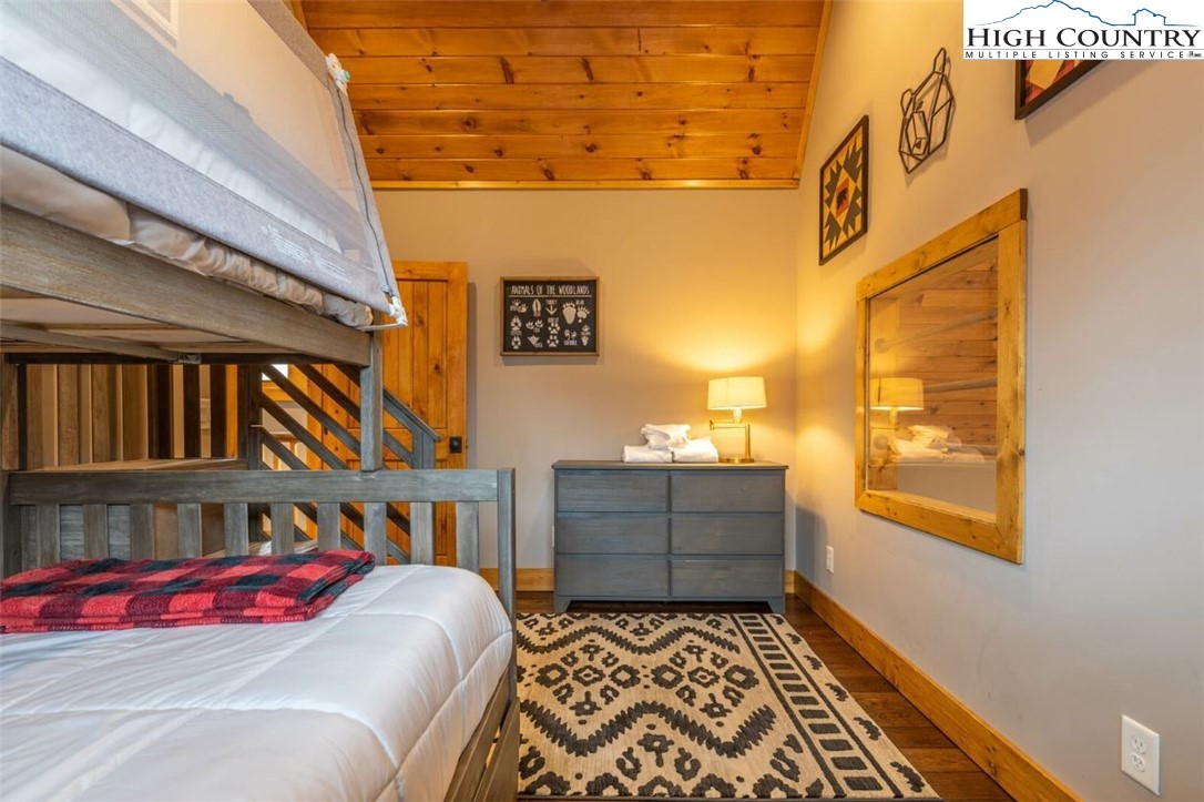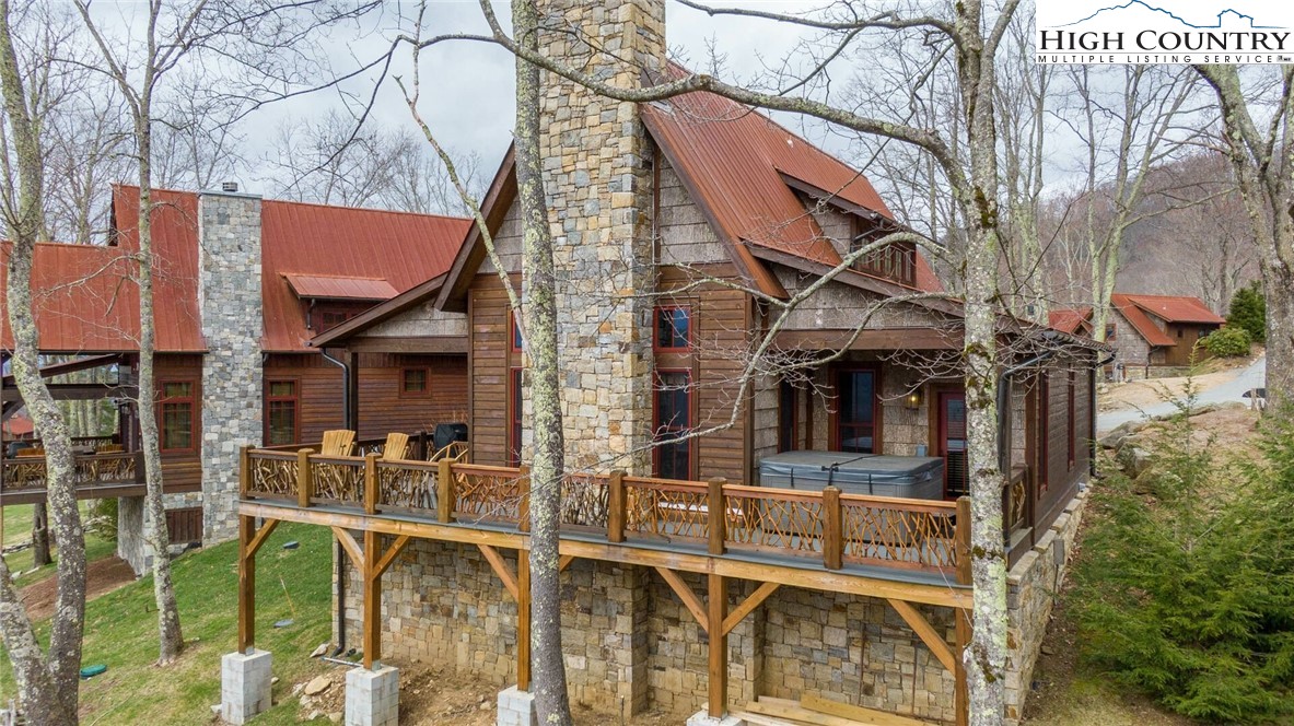 Custom home located in the maintenance free area of The Village in the highly desired Lodges at Eagles Nest. This two bedroom home also includes a third sleeping area upstairs with bunk beds in the fully enclosed loft. Just five minutes from the front gate and one mile to the great camp area. The main level opens to a large dining and kitchen area including spacious counters and a large granite island. The table seats six and four more at the bar. Off the entry and kitchen is a mud room area, pantry, and laundry center. This home is being offered fully furnished with comfortable leather seating around the wood burning fireplace. The king suite offers access to the recently expanded back deck with gorgeous Grandfather Mountain and sunset views. A proven rental performer this home comes with a new hot tub! Don't miss this opportunity to be part of the fastest growing development in the high country!