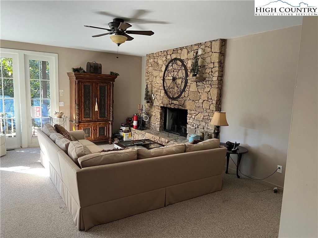 SO MUCH CHARACTER to see in this beautiful home in the desirable Linville Land Harbor Community! Known to be a showplace at one time, this house beckons for a restoration to its original glory. SOOOO much to love and enjoy. Gorgeous stone fireplace anchors the living room, flanked by sunlight from the French doors that lead out to a back porch. Floor to ceiling windows bring in seasonal views of the lake and surrounding foliage. Adorable storage cottage could be an artistic getaway or cozy office. With 2 bedrooms and 2 baths there's ample room to entertain guests whenever the need arises. Kitchen offers a butlers pantry for clean up out of the view of guests. Nothing about this cottage is ordinary, including the original cemented stone driveway and the spacious over-deck above the single garage. Additional single parking spaces around the loop at the back door and the garage. Priced to sell, this can easily be a showplace!