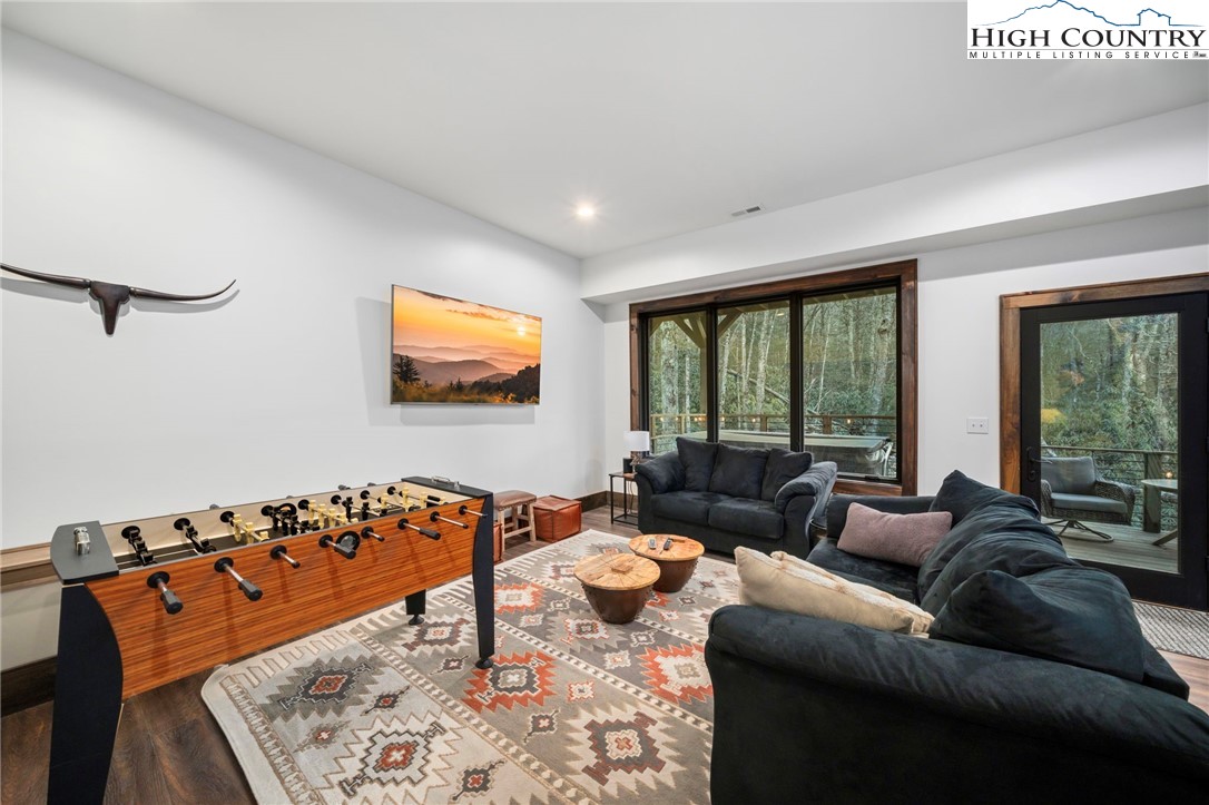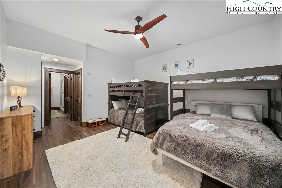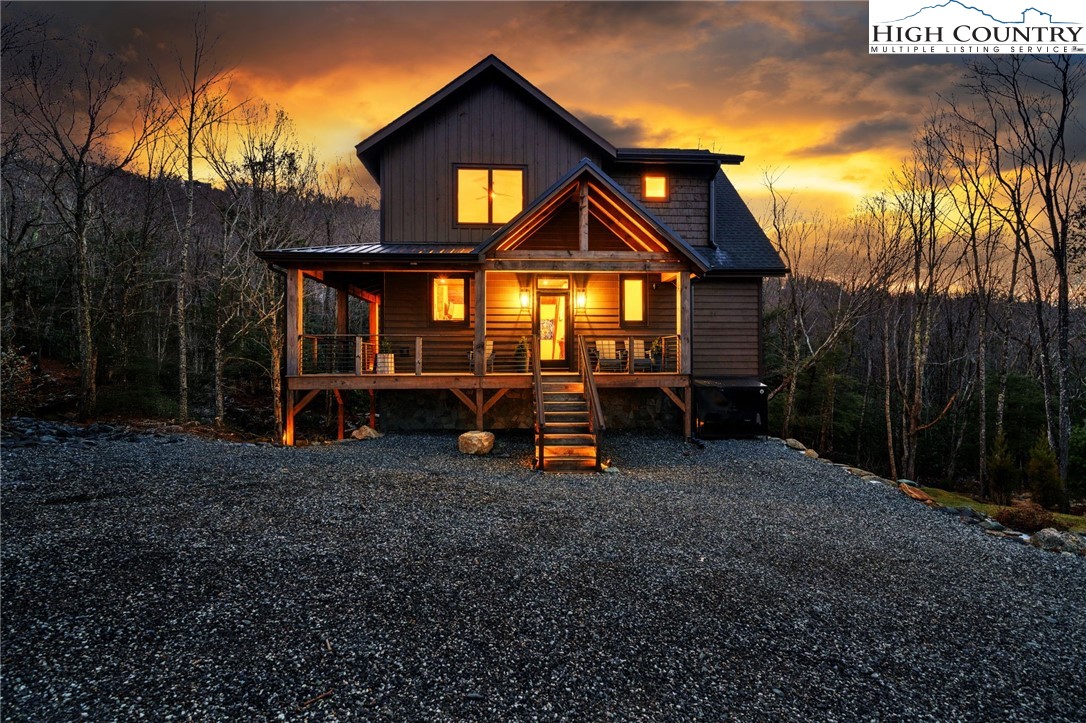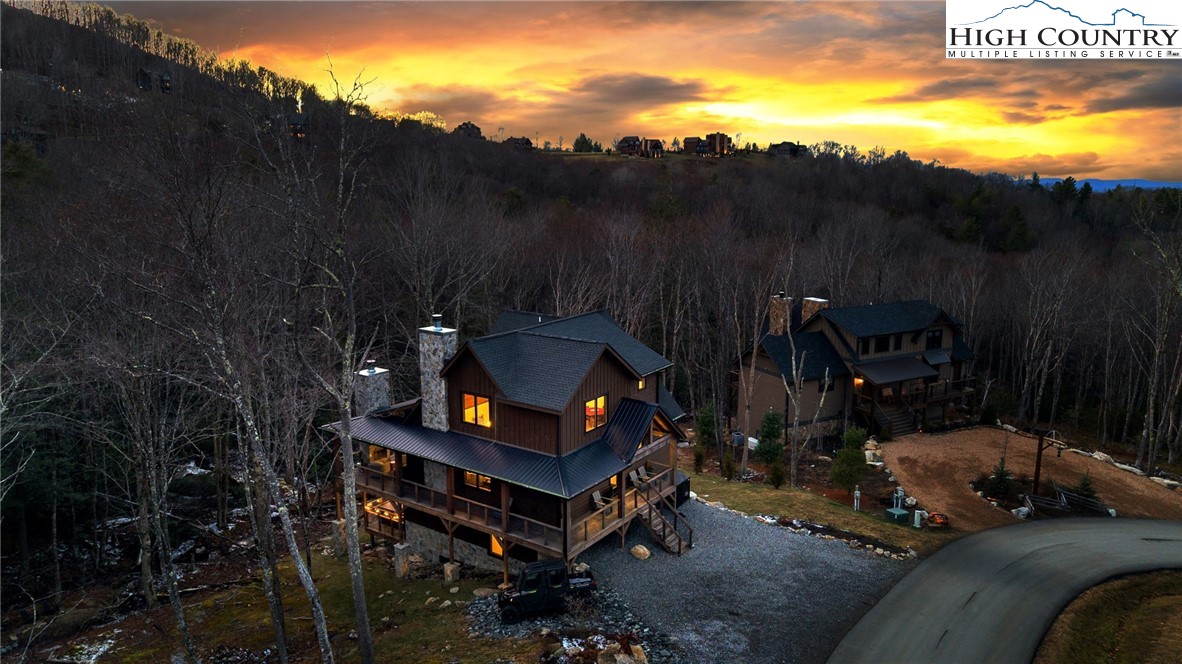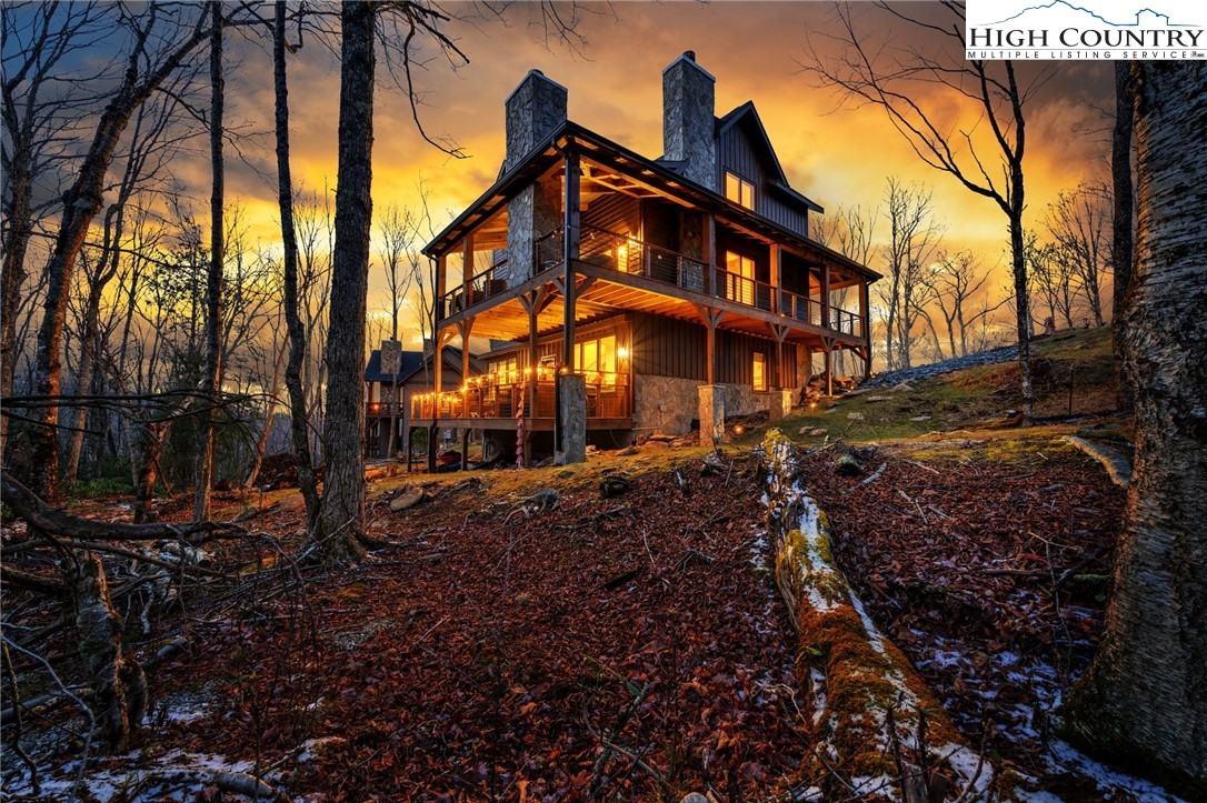 Welcome to Dark Horse Lodge, a beautifully crafted 2023-built home in the highly sought-after Lodges at Eagles Nest. Offering more than 2,800 square feet of luxury living space and sold fully furnished, this creekside retreat blends modern comfort with timeless mountain charm and stands out as one of the best values in the community at $424 per square foot. The main level features a stunning open-concept layout with a cathedral-ceiling great room anchored by a floor-to-ceiling stone fireplace, a chef’s kitchen with a striking rock backsplash and oversized island, a spacious dining area for larger gatherings, and a covered outdoor deck complete with its own fireplace and tranquil wooded views. The primary suite is also on this level and offers generous closet space and a beautifully finished en suite bath. Upstairs, a large loft provides an ideal space for lounging, gaming, or working, along with an additional sleeping area and full bathroom. The lower level is designed for relaxation and entertainment, featuring a family room that opens to a second expansive deck with a hot tub and seating area, along with a bedroom, a bunk room, and another full bath. Although listed as a two-bedroom home, there are 4 sleeping areas, allowing it to sleep up to twelve comfortably, which has contributed to its strong vacation-rental performance with Carolina Cabin Rentals. Owners also enjoy access to Eagles Nest’s exceptional amenities, including hiking and ATV trails, disc golf, tennis and pickleball courts, pavilions, and year-round activities. Whether relaxing by the fire, soaking in the hot tub, or enjoying the peaceful natural surroundings, Dark Horse Lodge delivers an unforgettable mountain experience in every season. Inquire today for details.